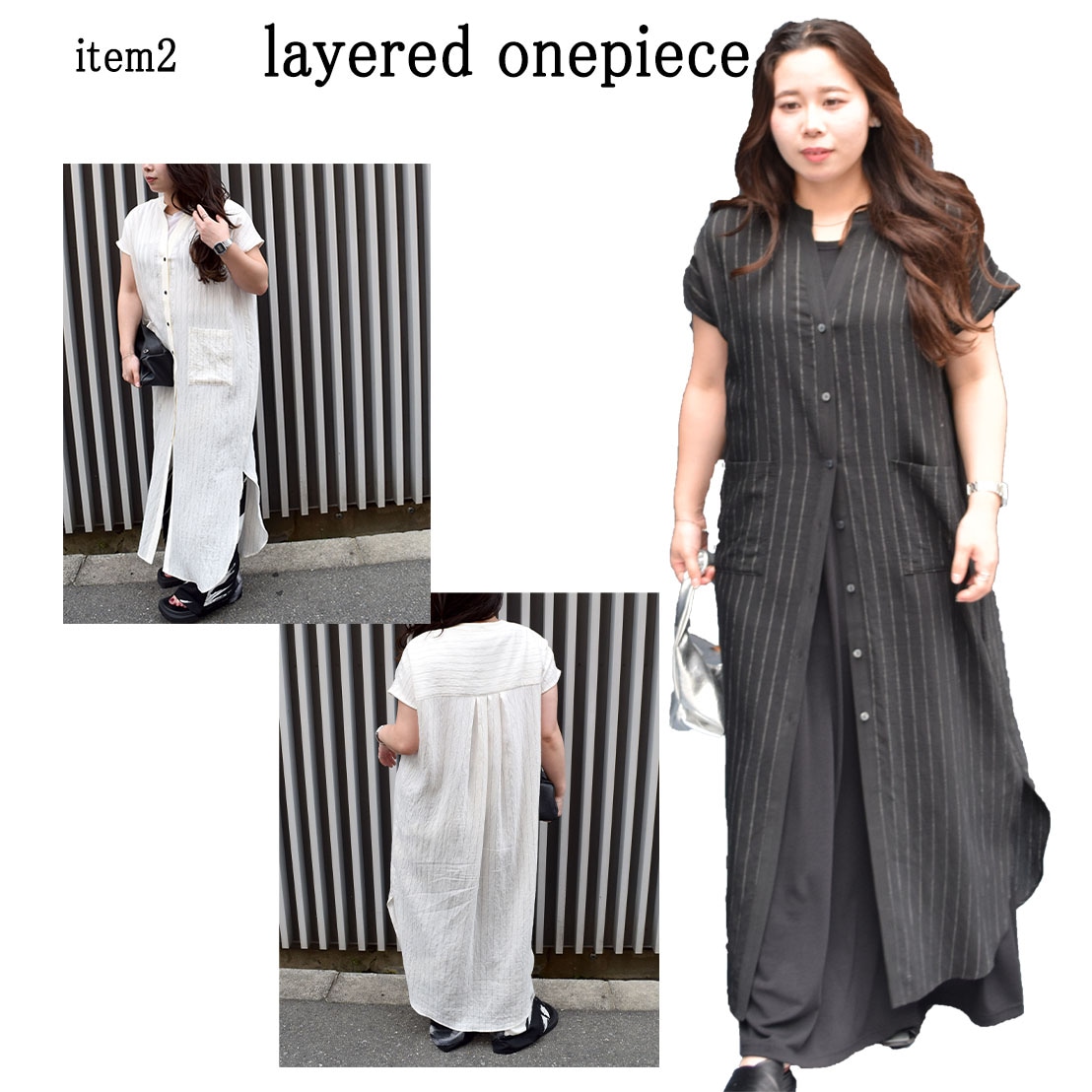リネン混で涼しいので快適にレイヤードを楽しめるワンピースです。