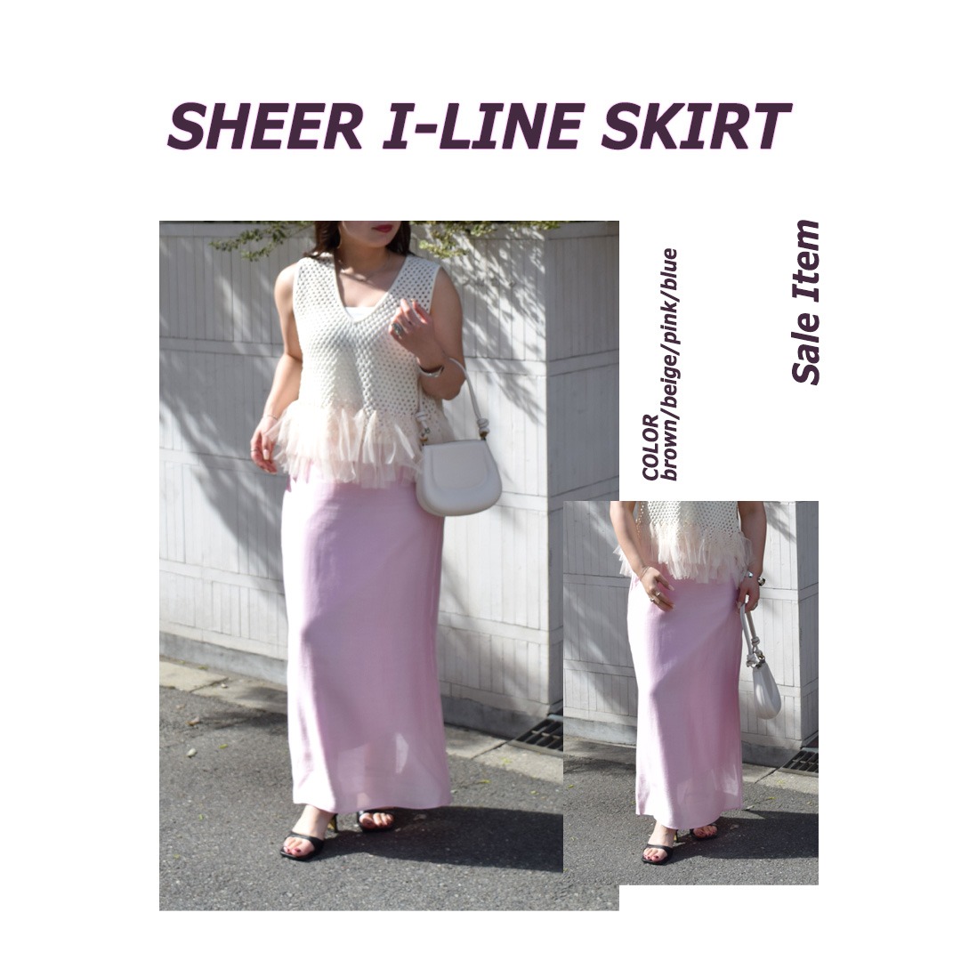 ほんのり透けるシアー感が女性らしさを引き立てるIラインスカート。