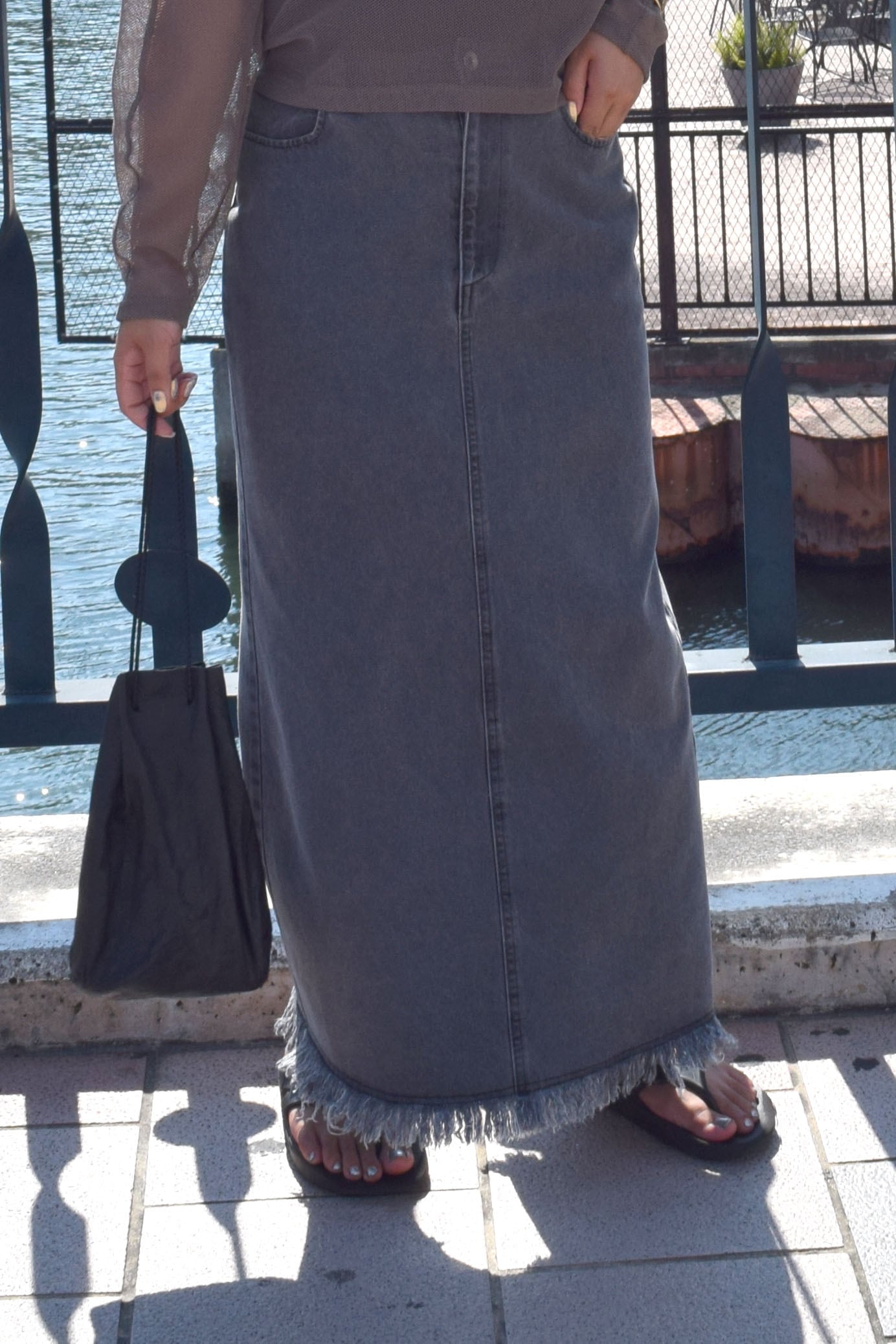 裾を切りっぱなしにしたラフな仕立てなのもポイントです。