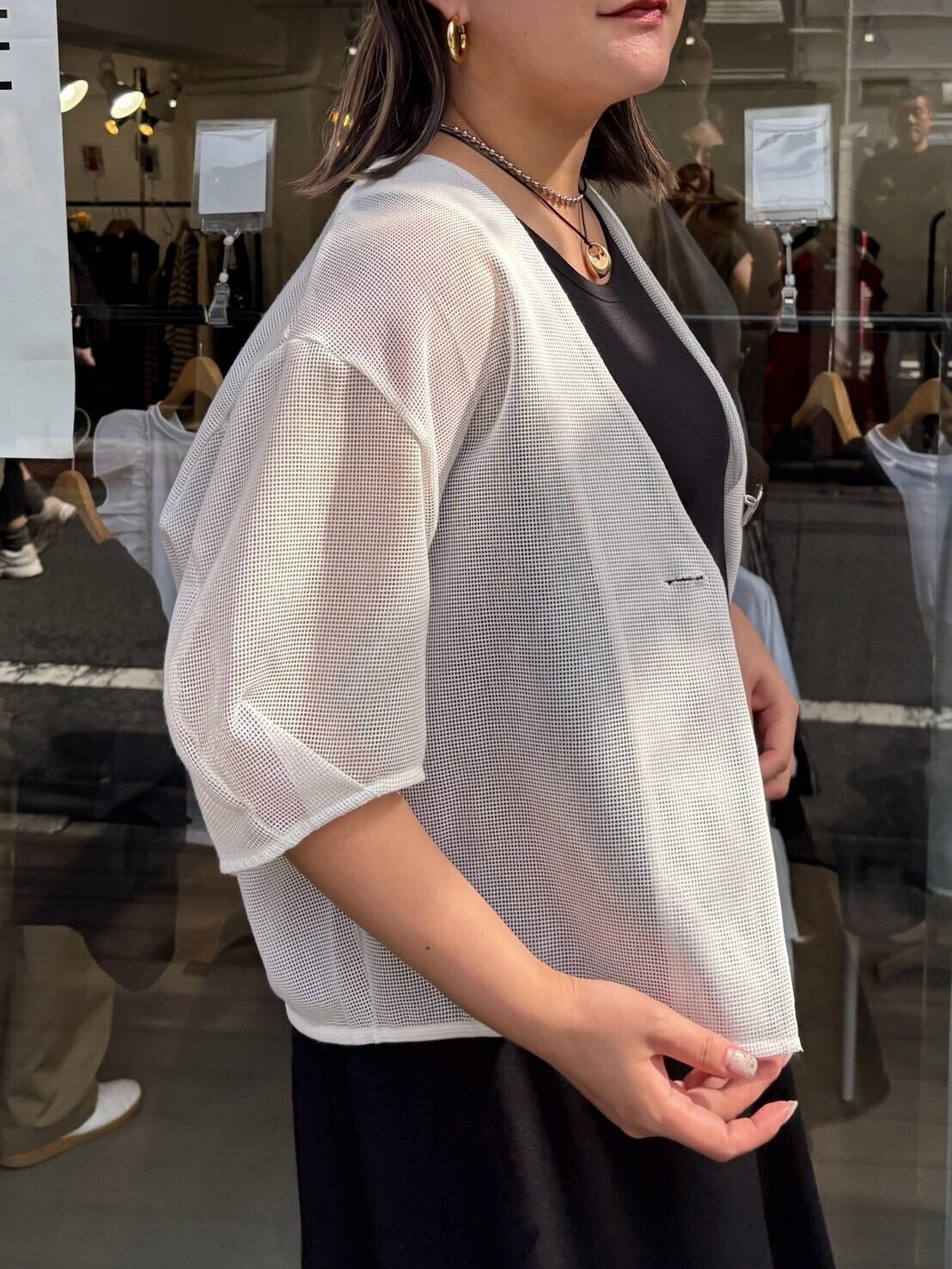 軽やかな羽織り感覚で着ていただける半袖メッシュのジャケット。