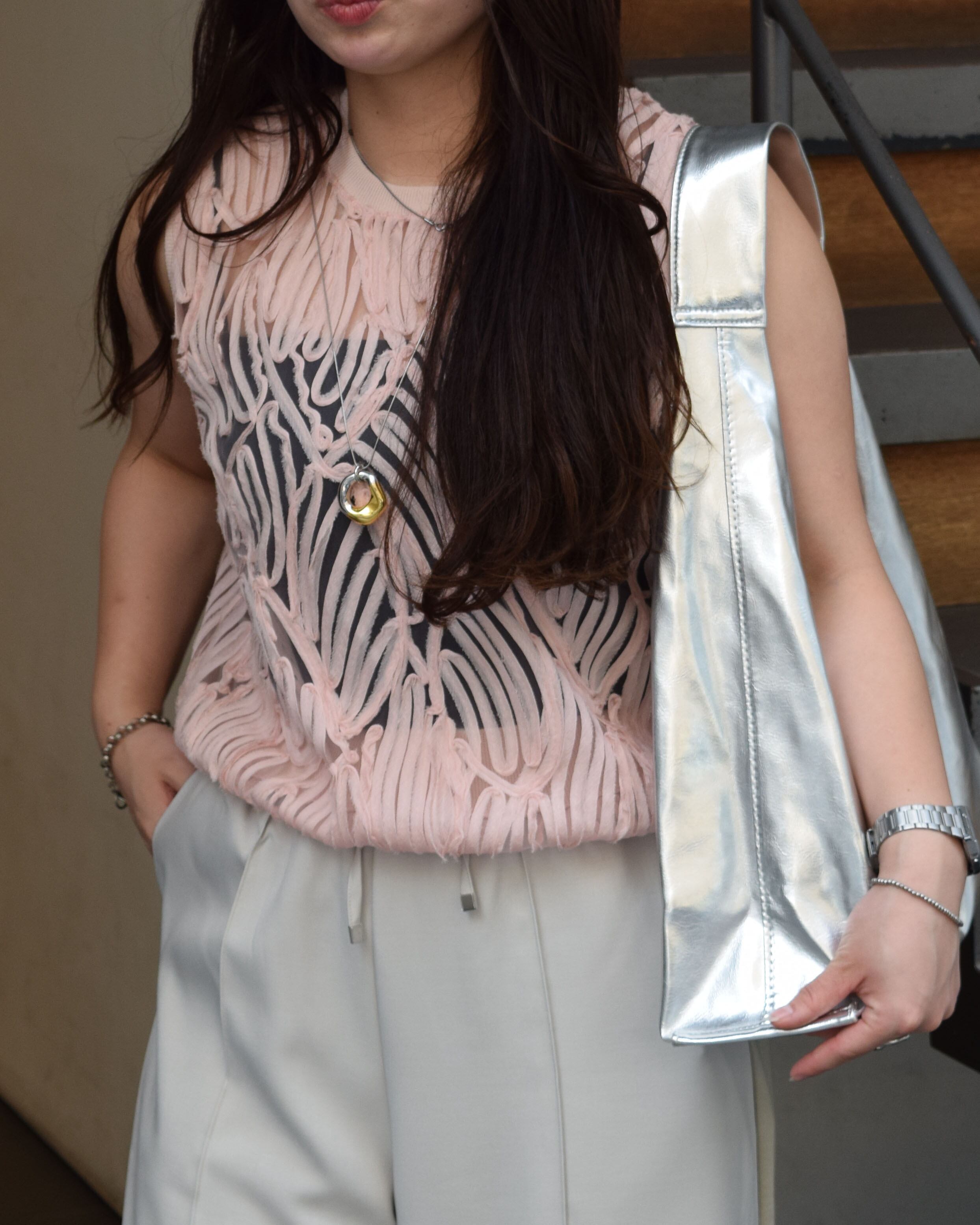 タンクトップと合わせても長そでのインナーと合わせてベストのようにして着てもコーディネートしていただけます。