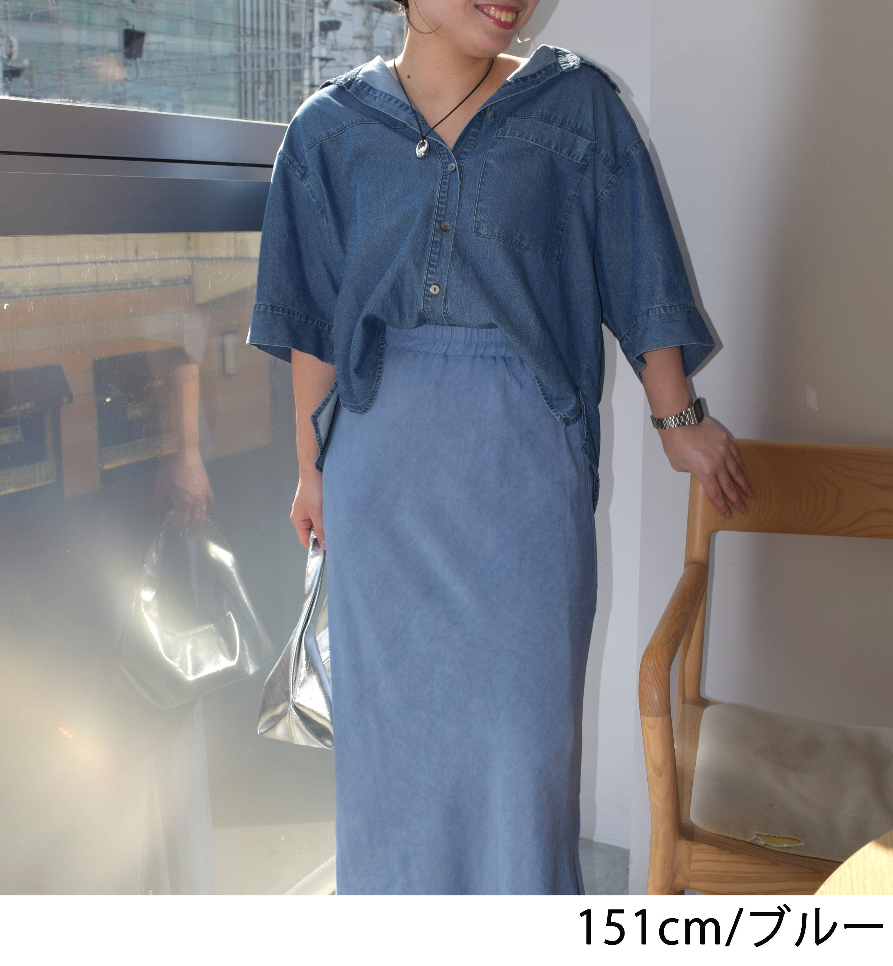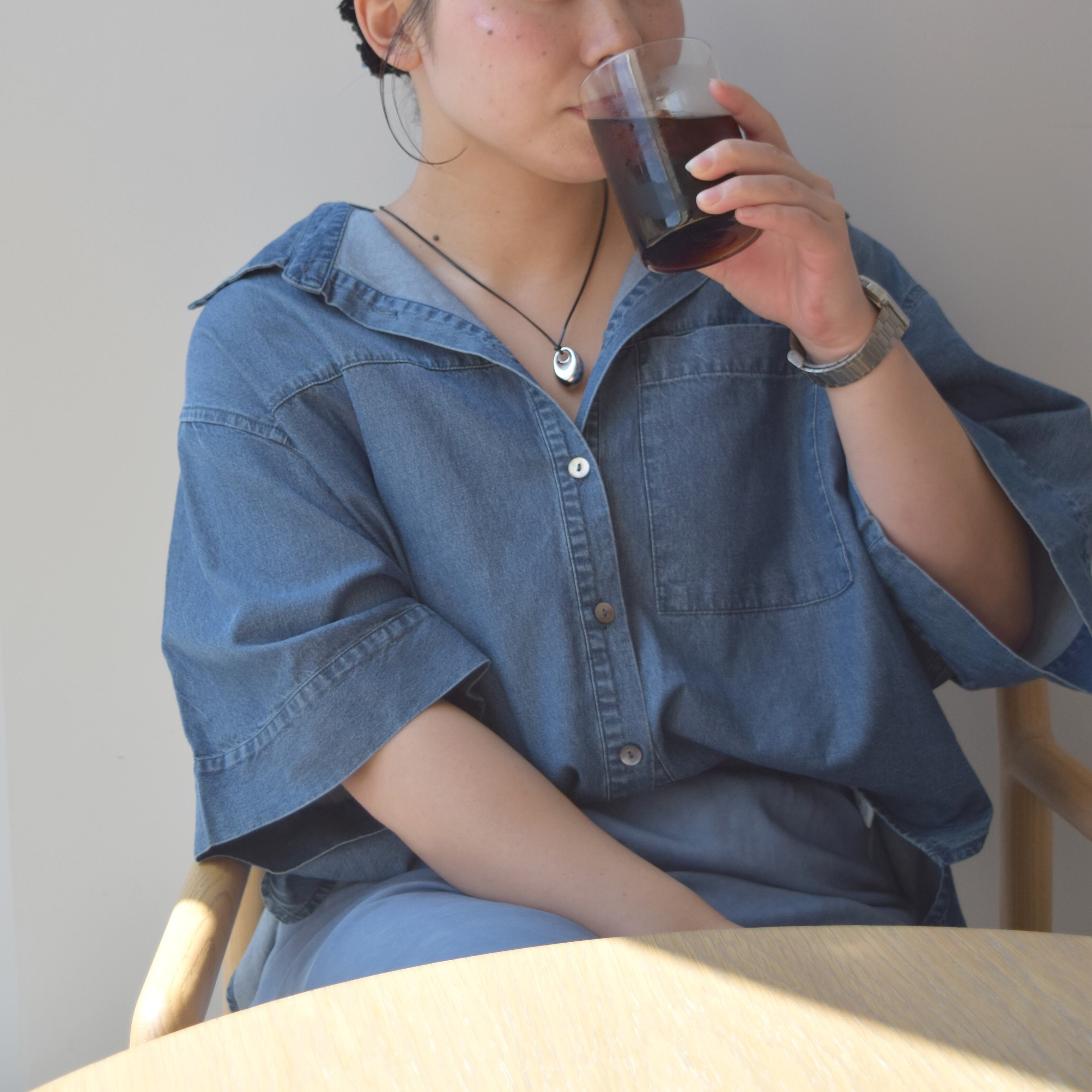 R733216 ショートテンセルデニムシャツ