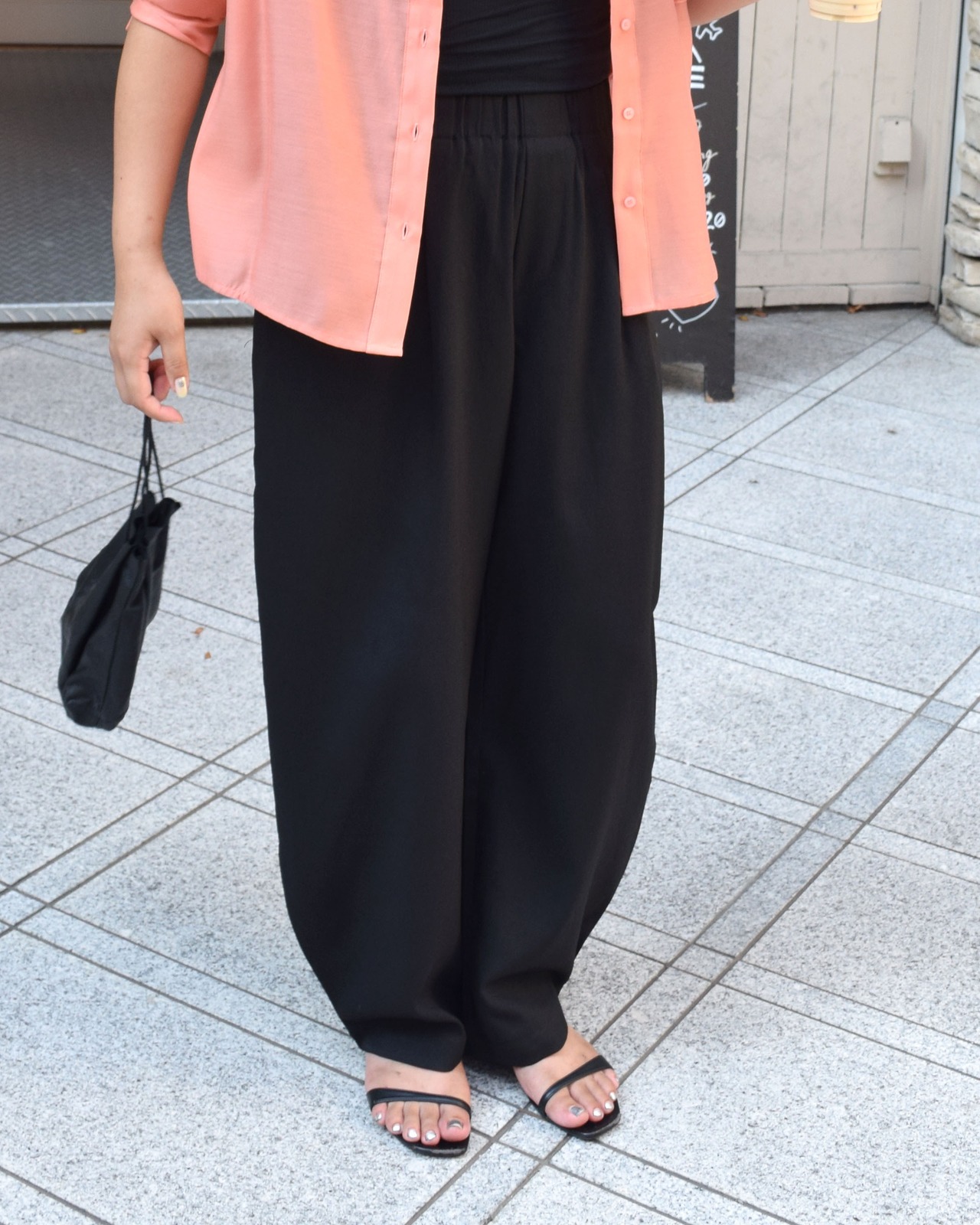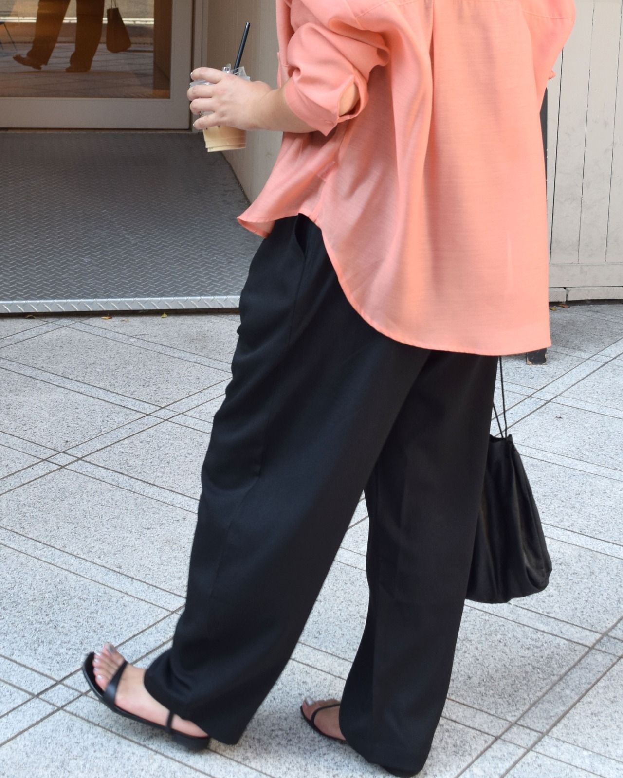 ウエストは細く、脚は長く見せてくれるシンプルな着こなしが増える時期にオススメのボトムスです。