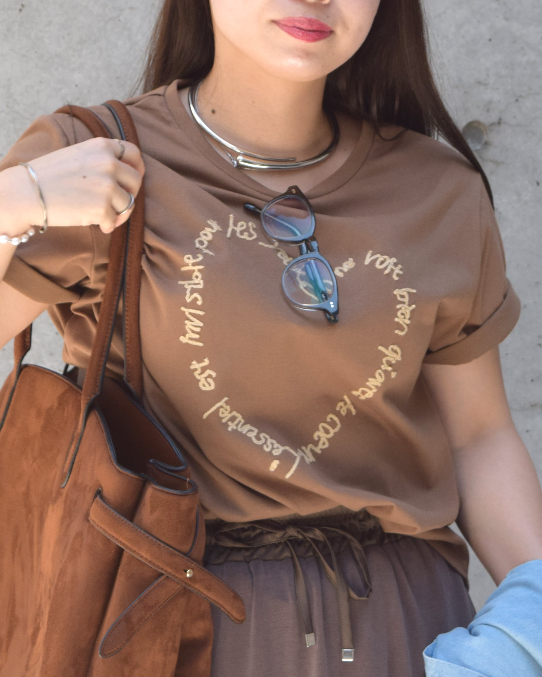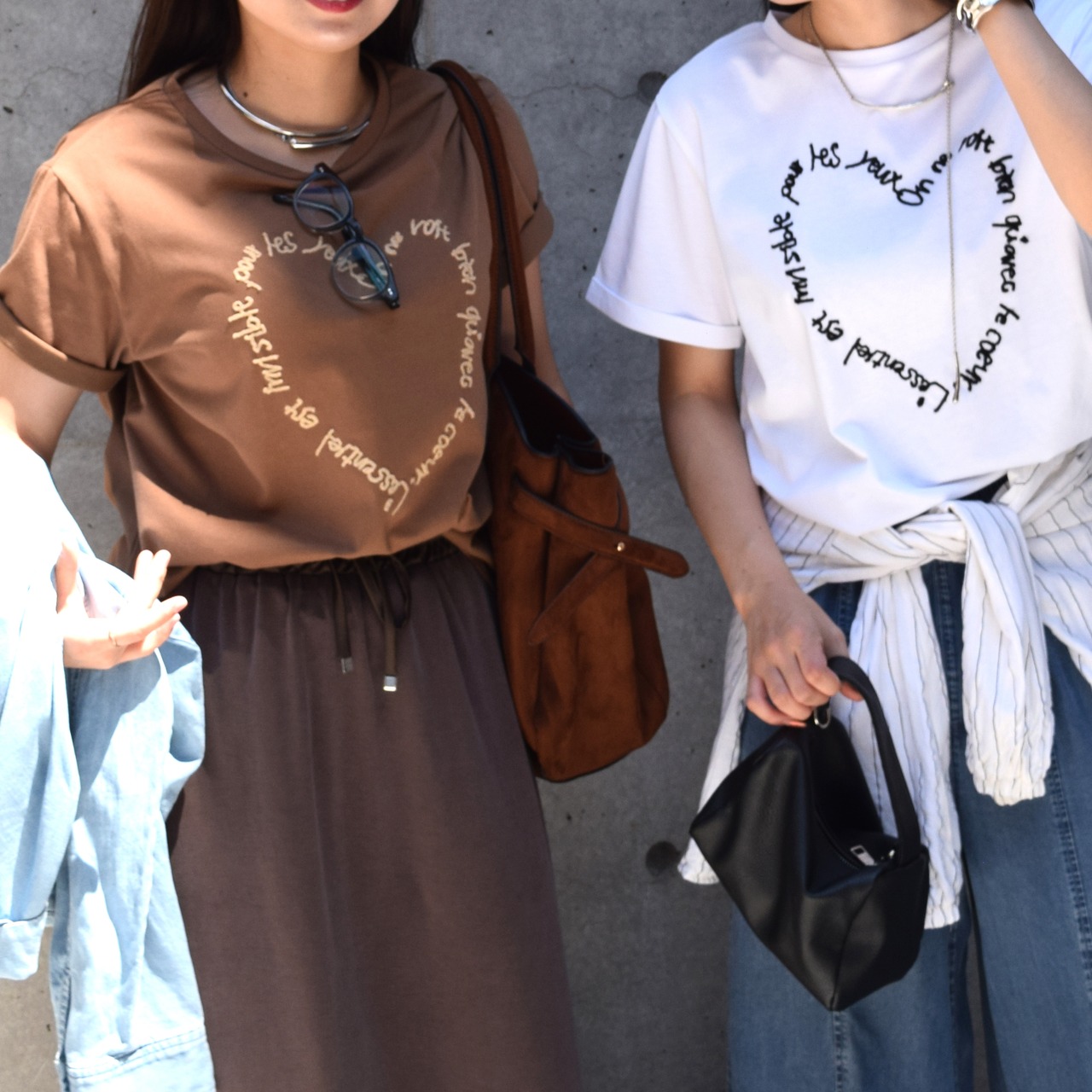 ロゴのカジュアルさとハートのフェミニンさがマッチします。