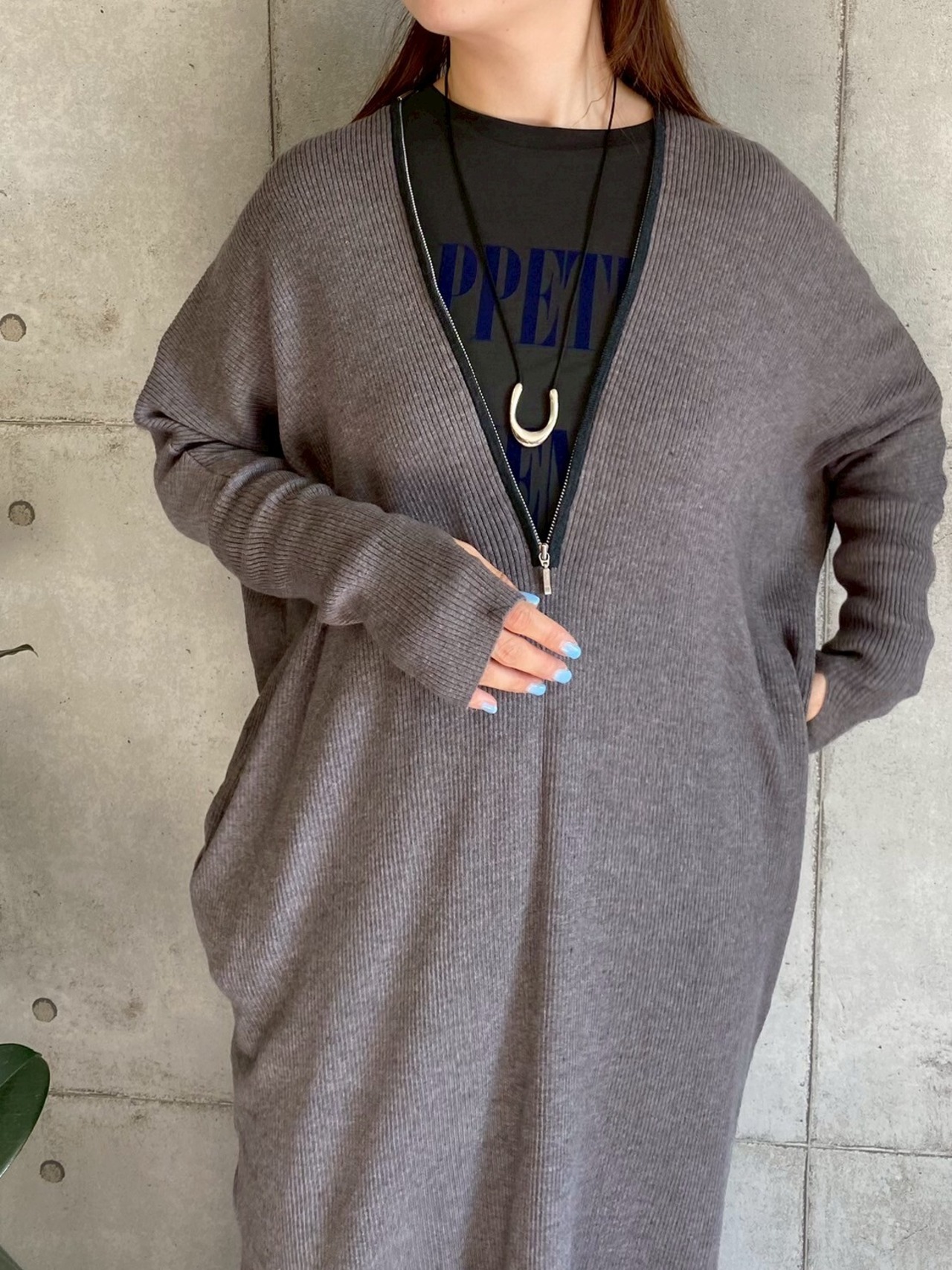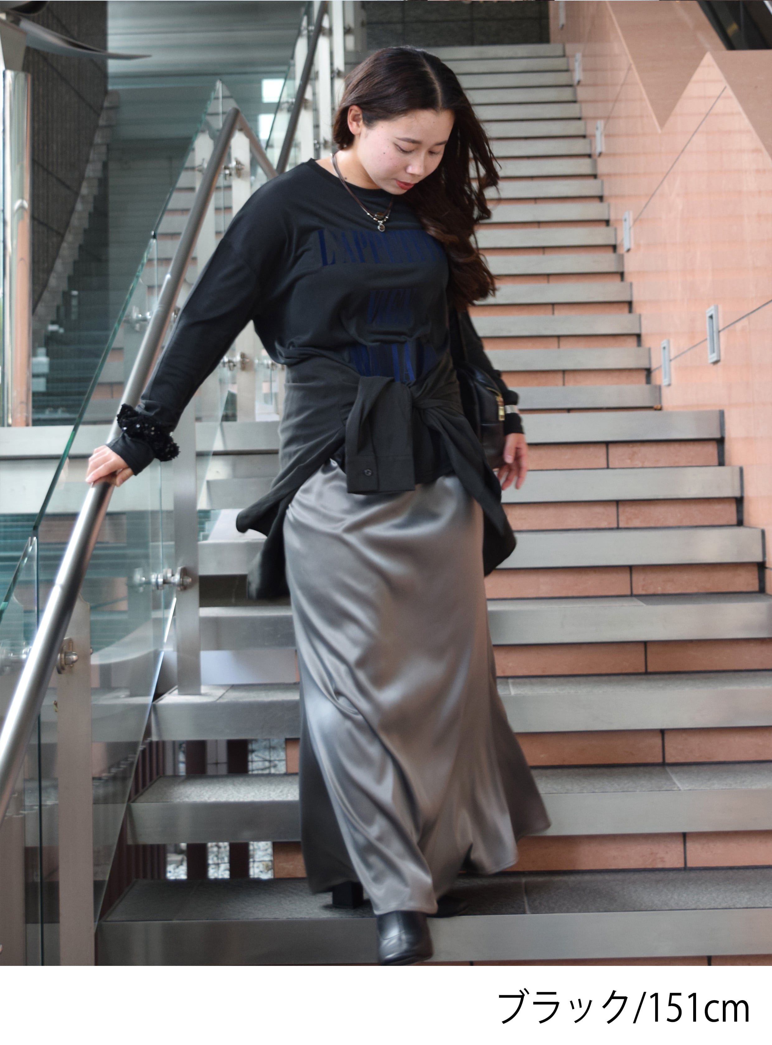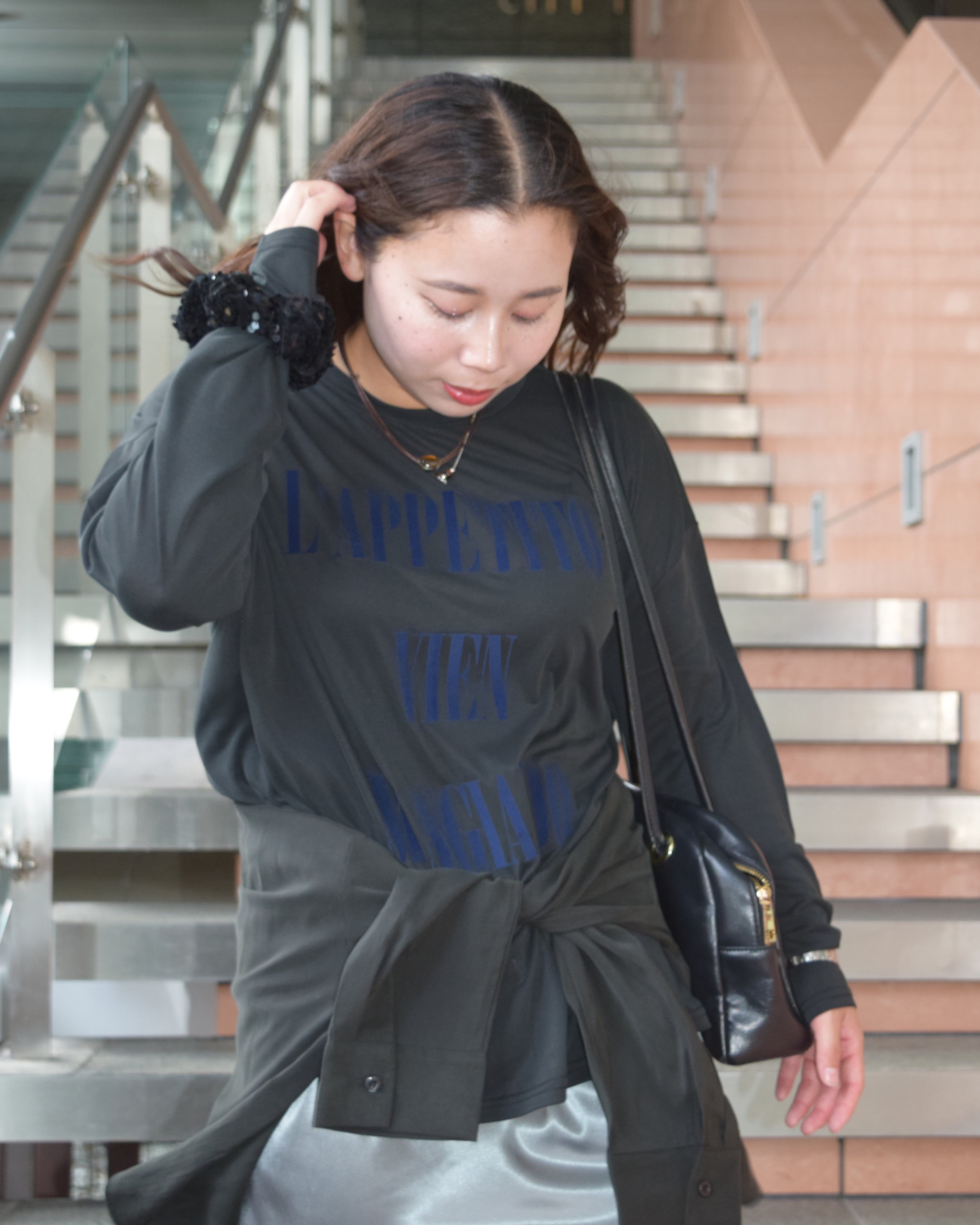裾は着丈ながめにしているのでショート丈のトップスと合わせて裾を見せるのも旬なスタイリングに。