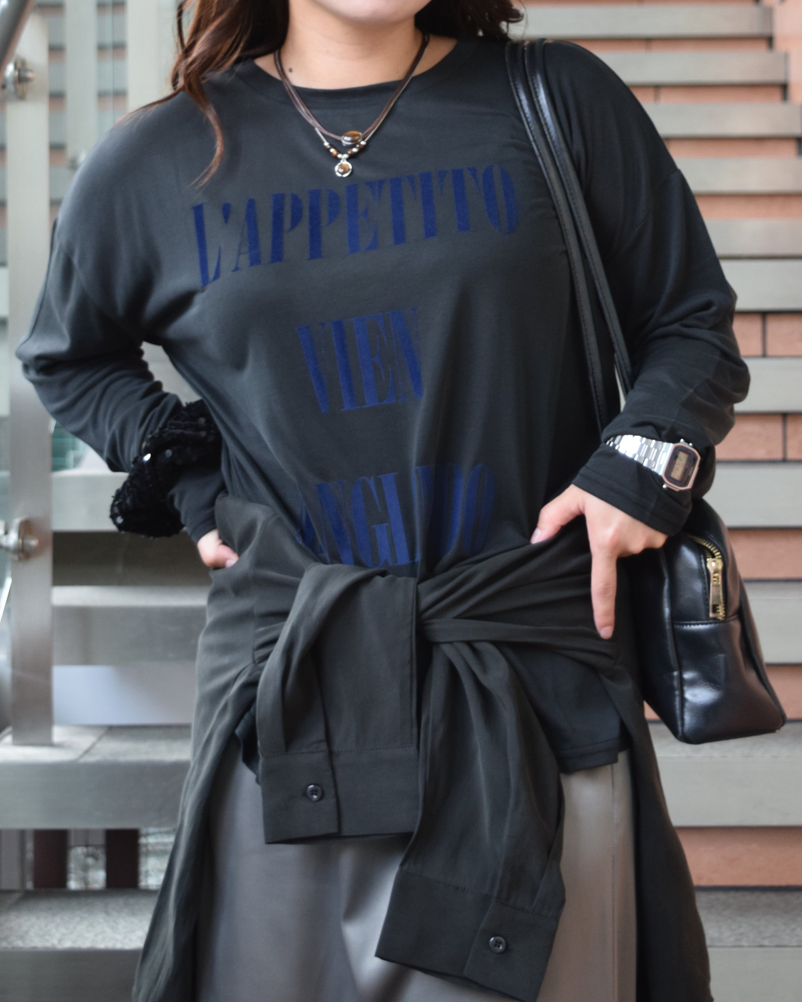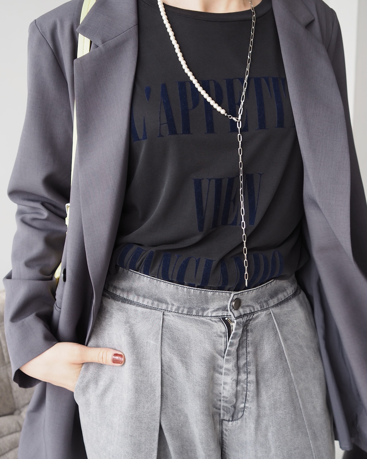 落ち感のある素材でボディをカバーしてくれるようなカットソーです。