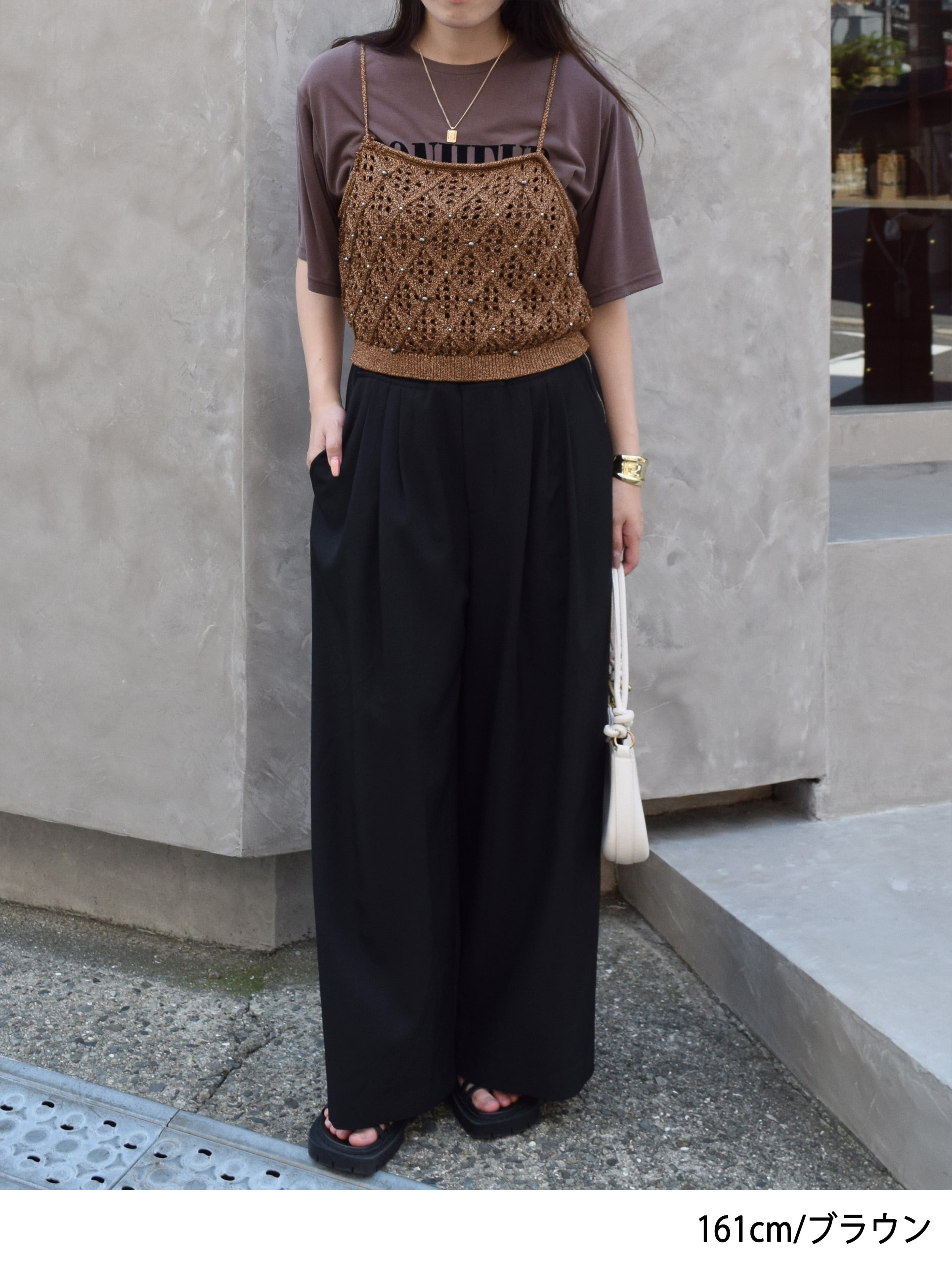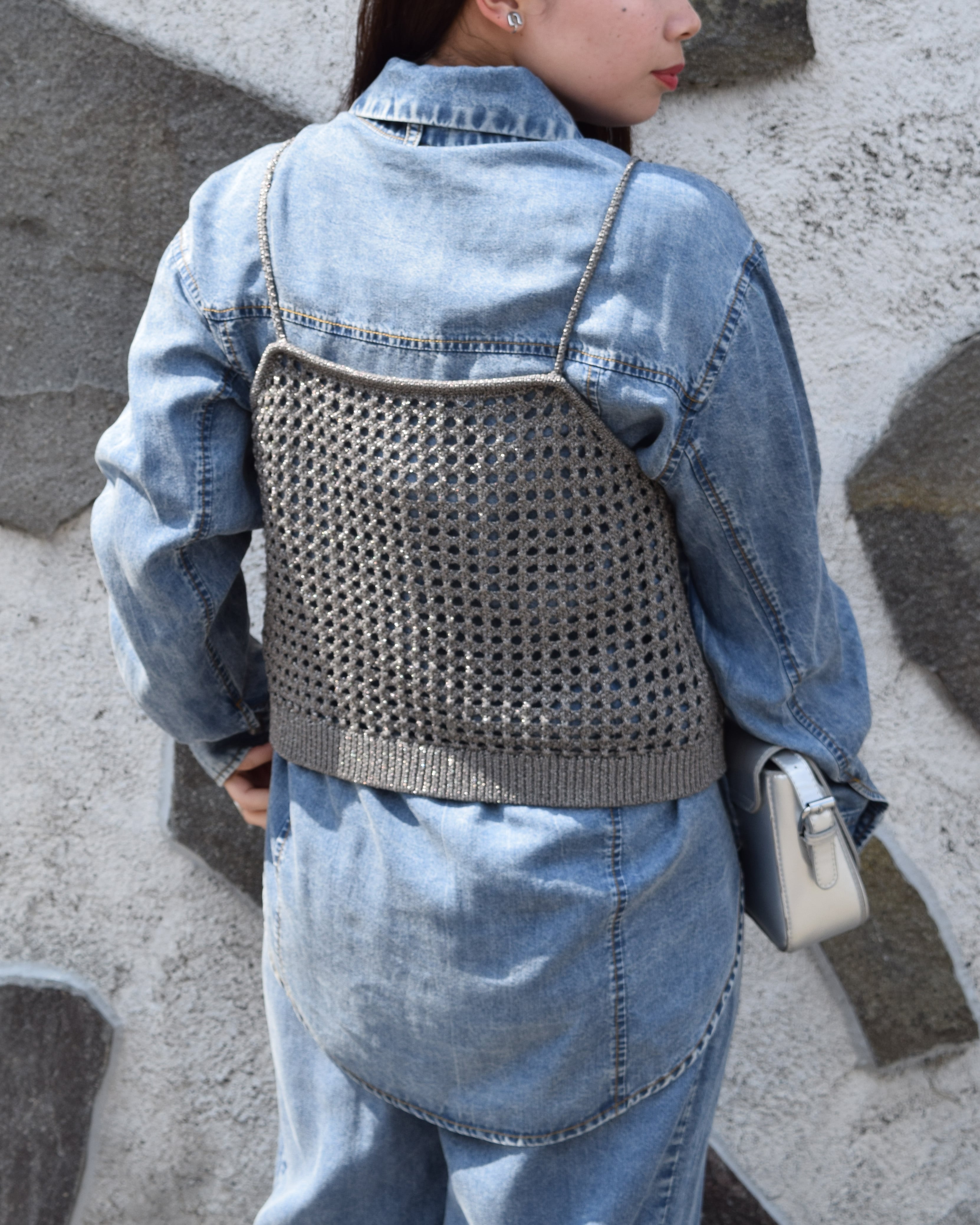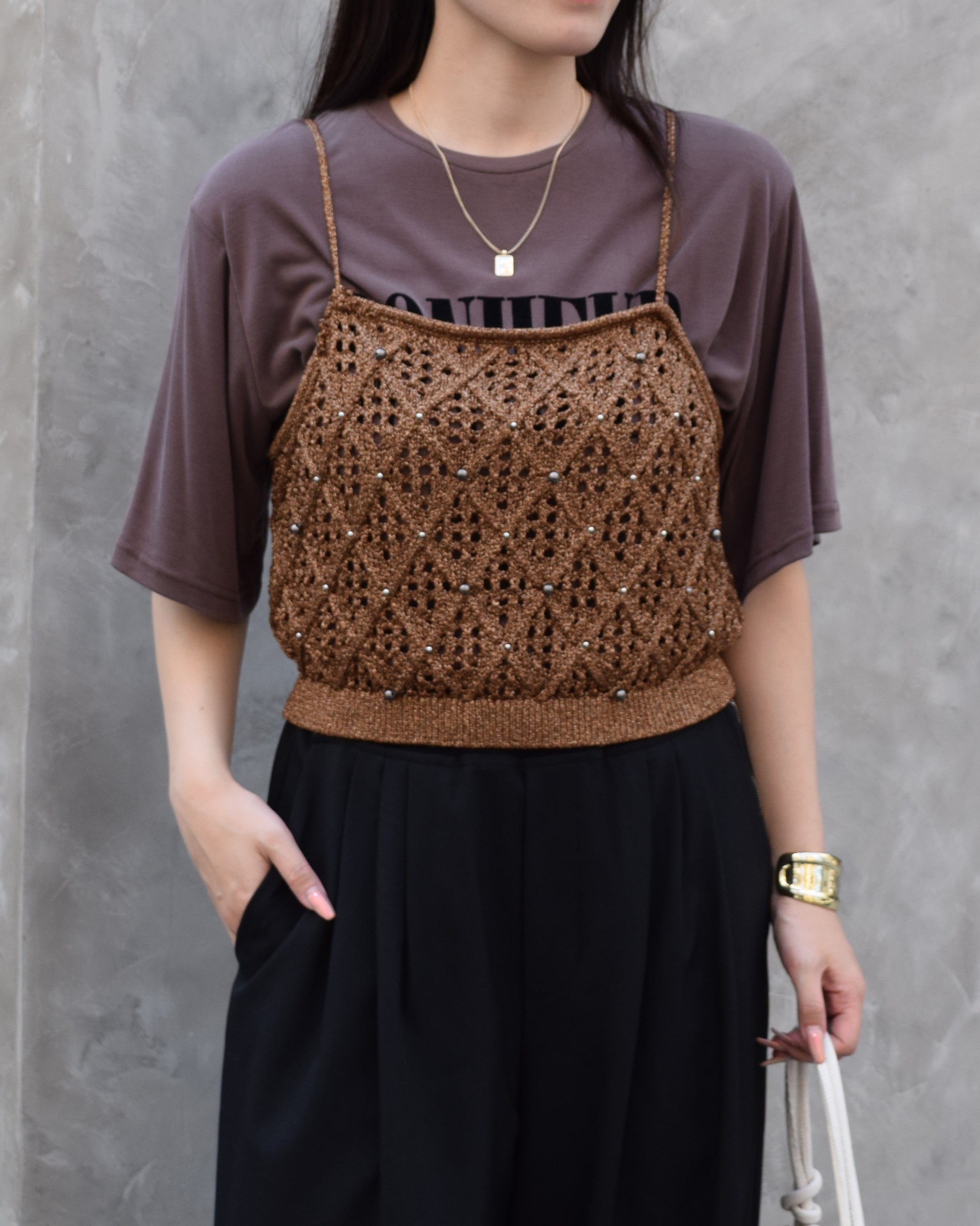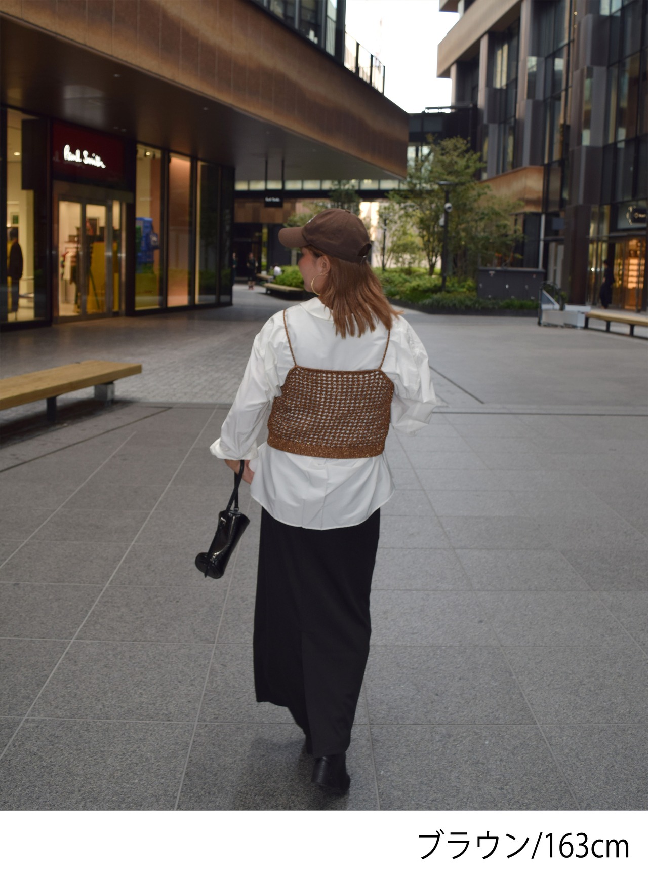 季節の変わり目にレイヤードを楽しめるニットビスチェ。