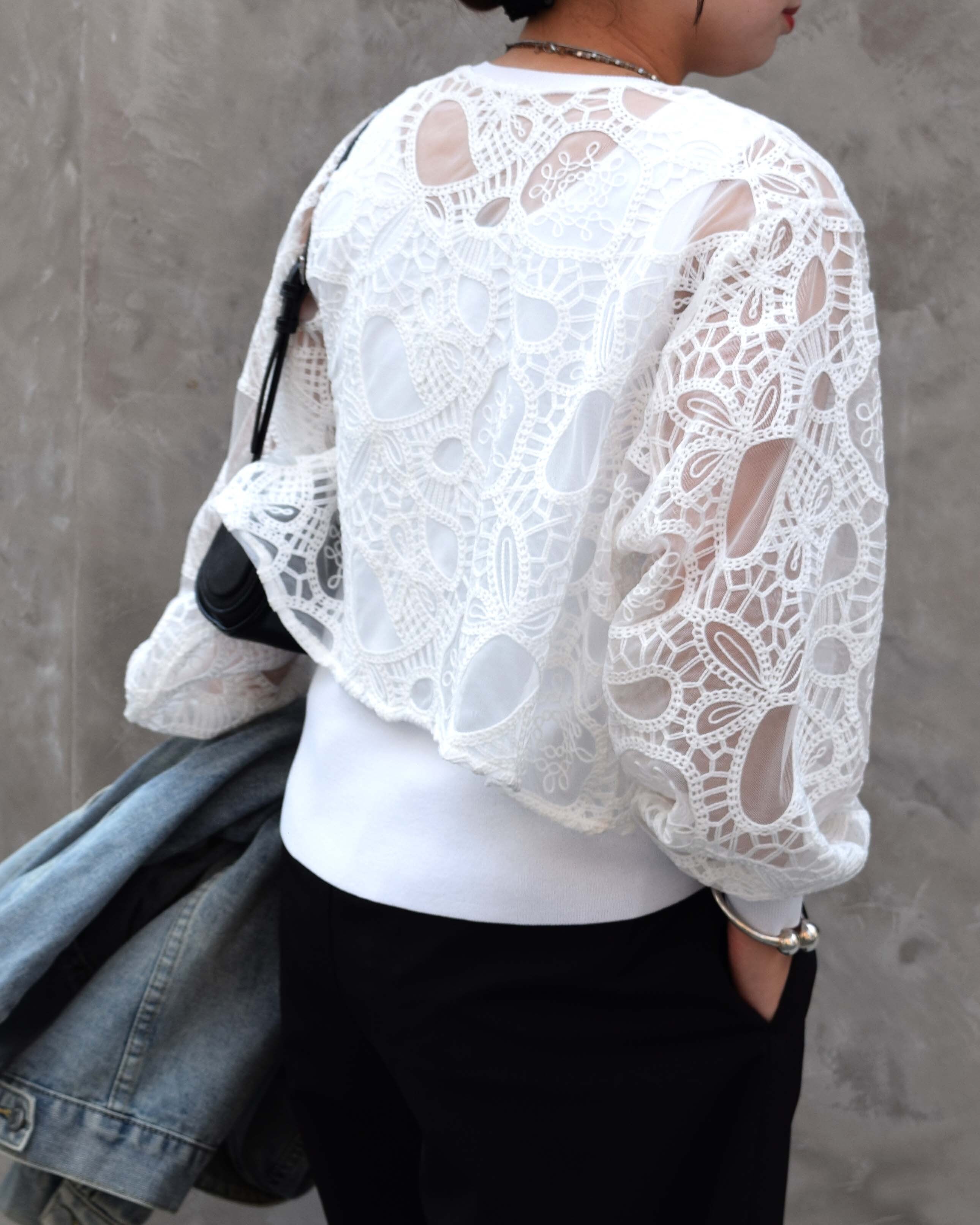 ほどよく上品な透け感のあるシアートップスは暑い時期からも着やすいデザインに。