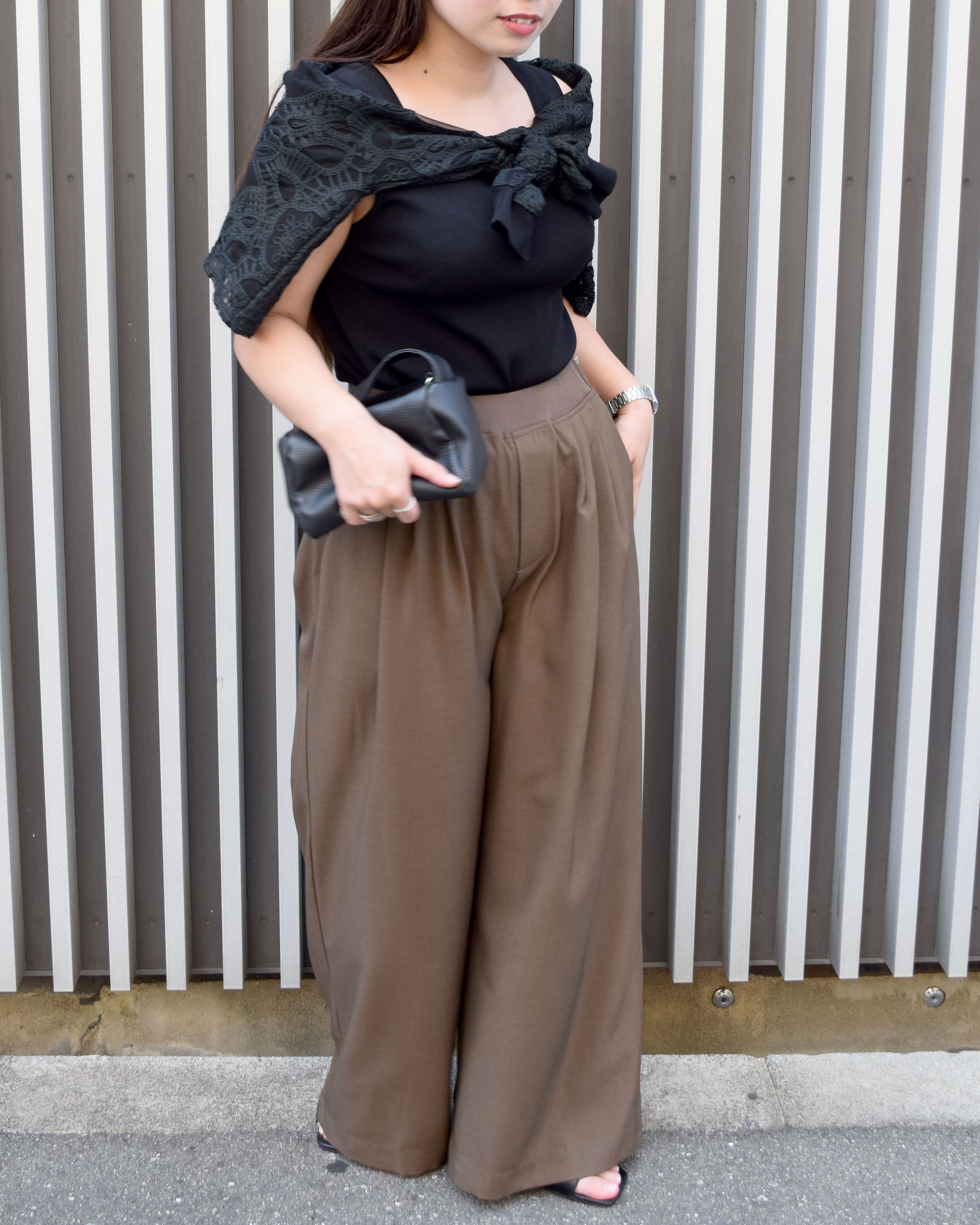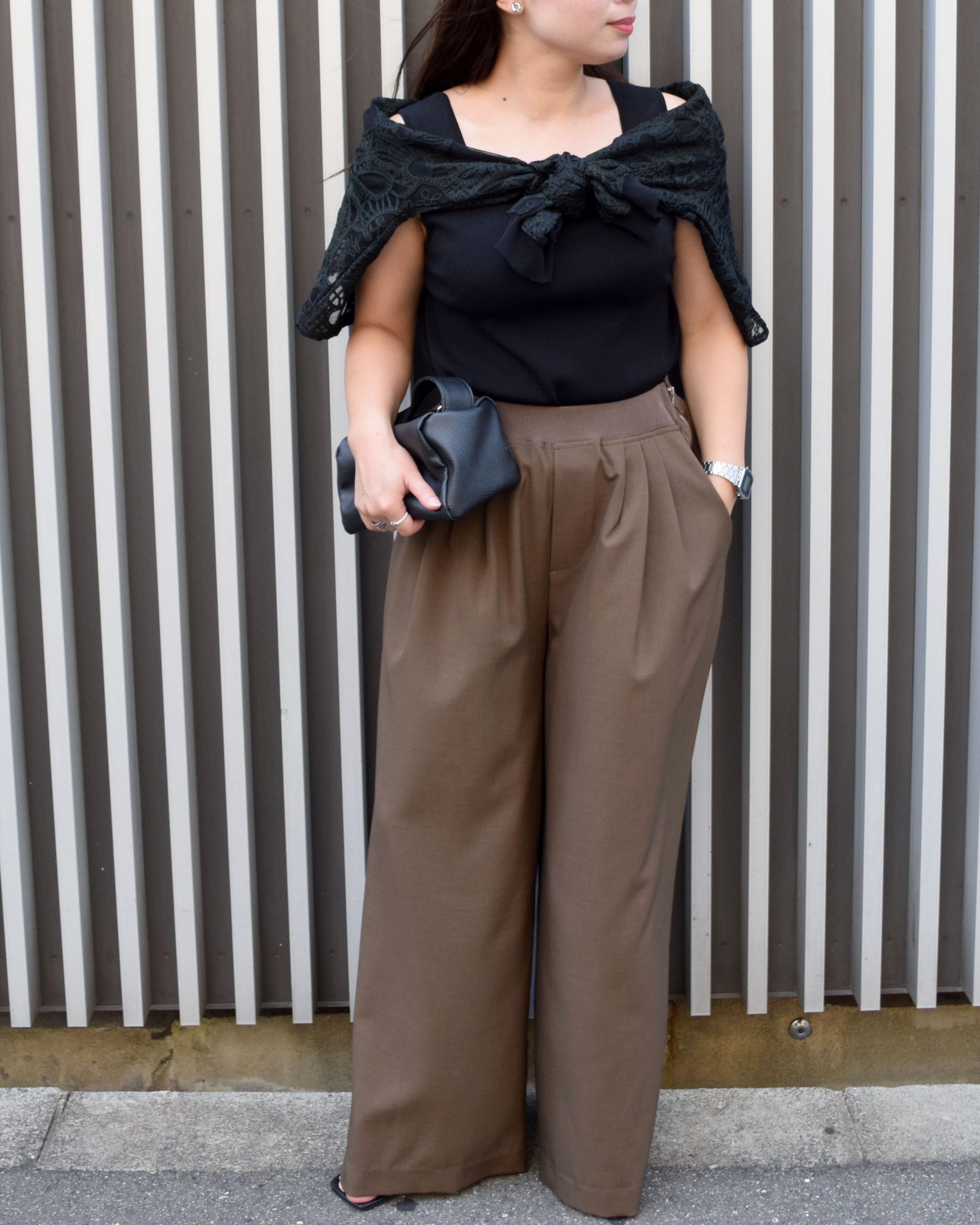 キレイ目にタックパンツで合わせたり、カジュアルMIXにデニムで合わせたりと