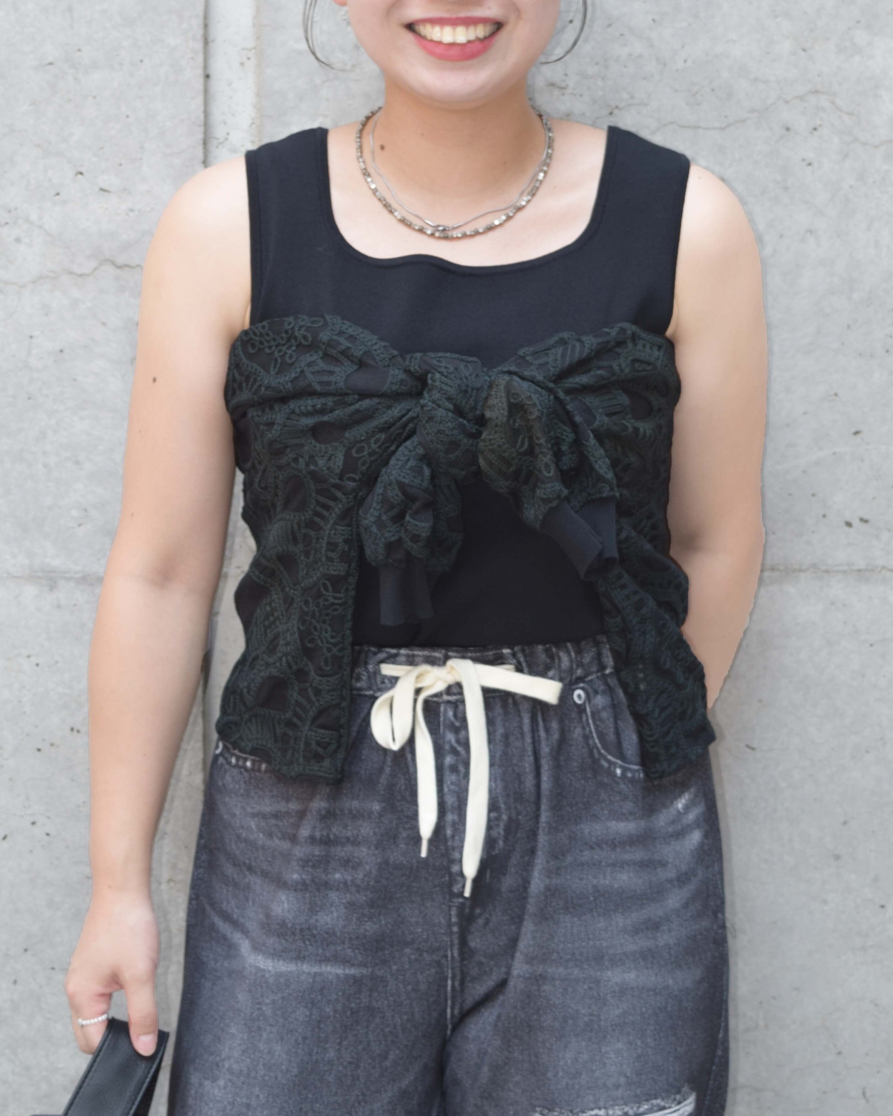 ニット部分・タンクトップ レーヨン 52%、ナイロン 30%、ポリエステル 18%