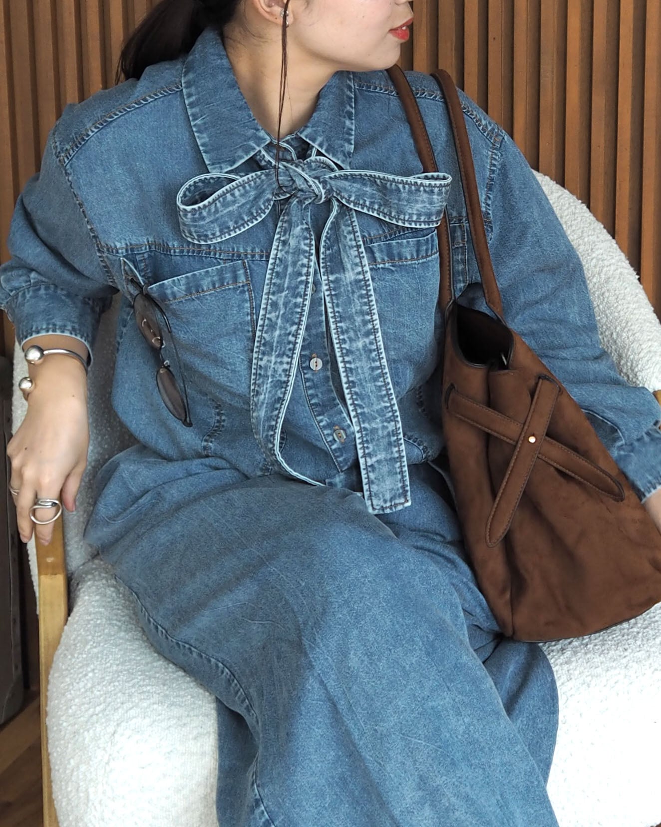 R772706 ボウタイ2WAYデニムテンセルシャツ