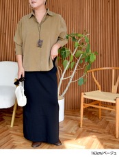 やわらかな光沢感とほんのり起毛した質感が魅力のピーチサテンシャツ。