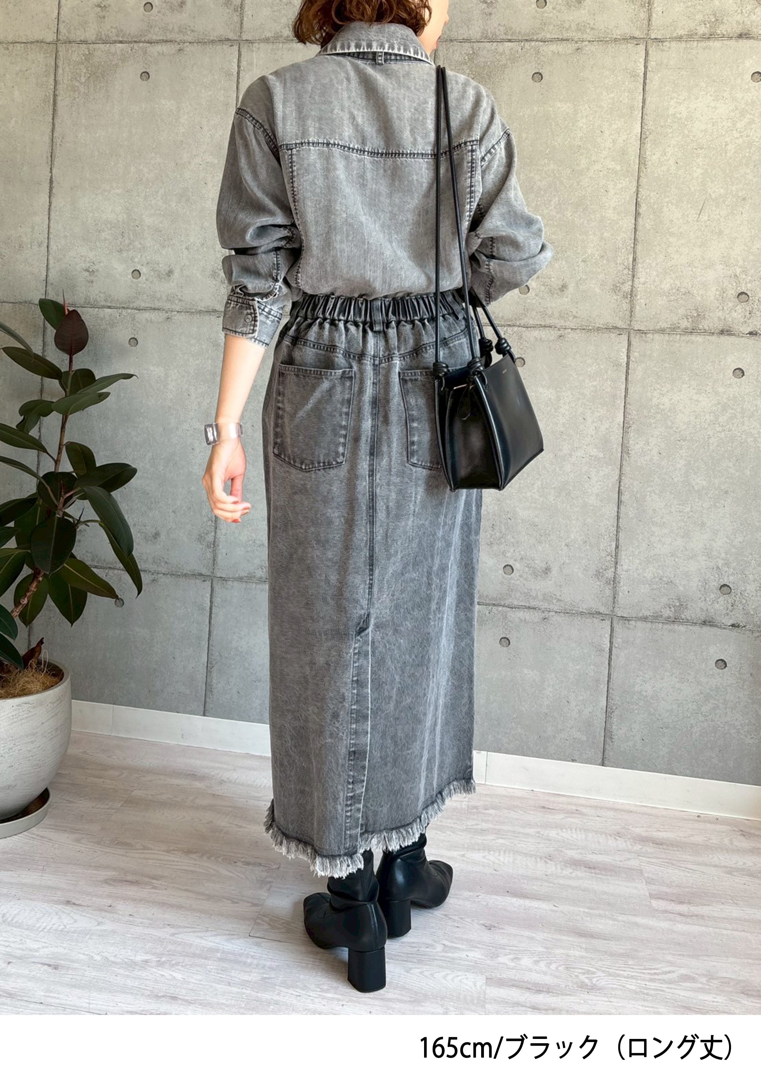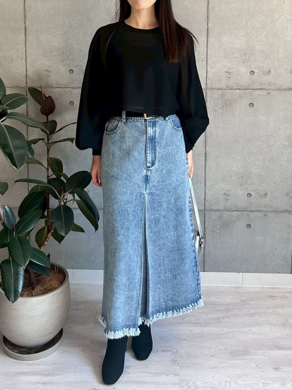テンセル混の柔らかい素材を使用したデニムスカート。