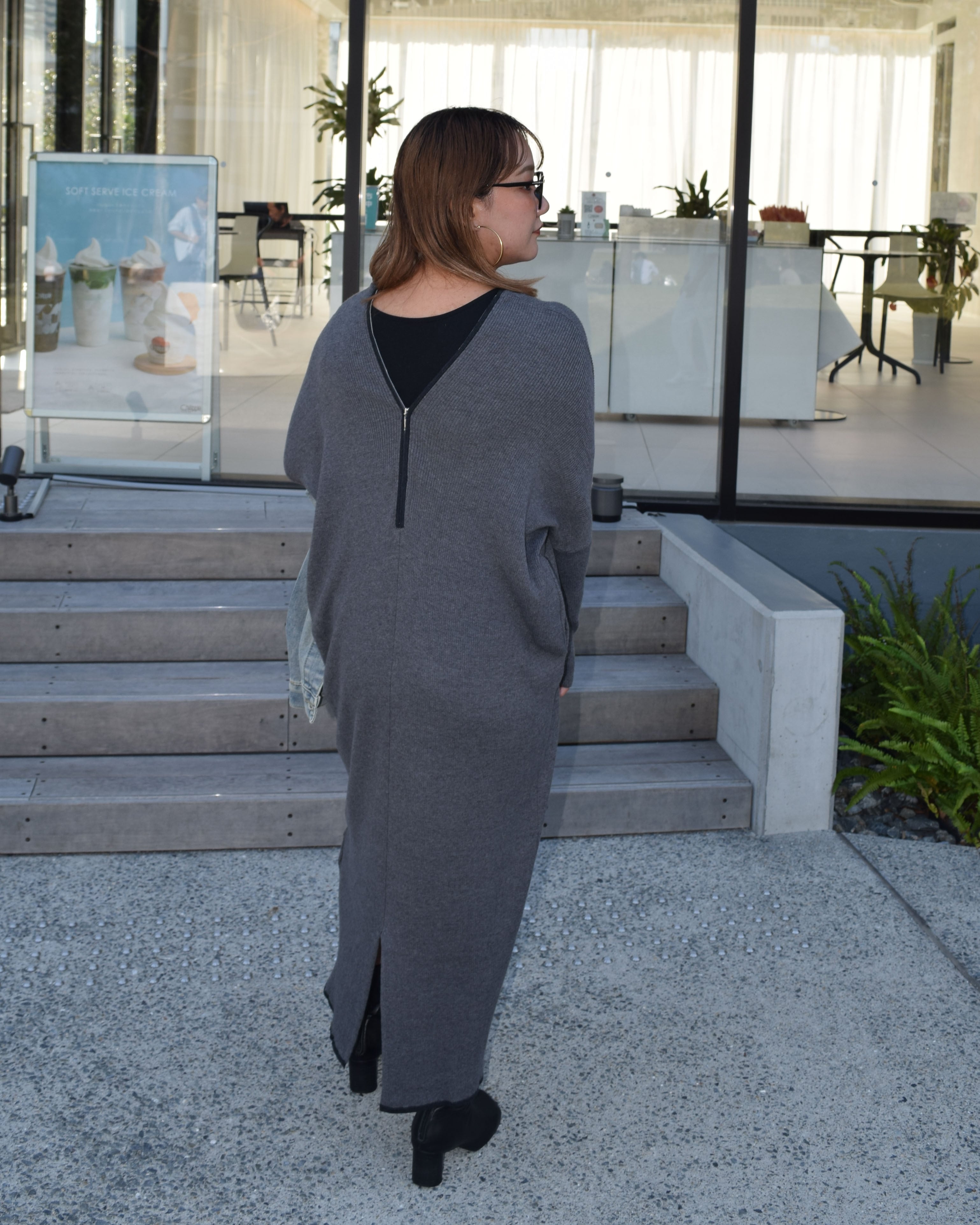 R771212 センターファスナーリブニットワンピース