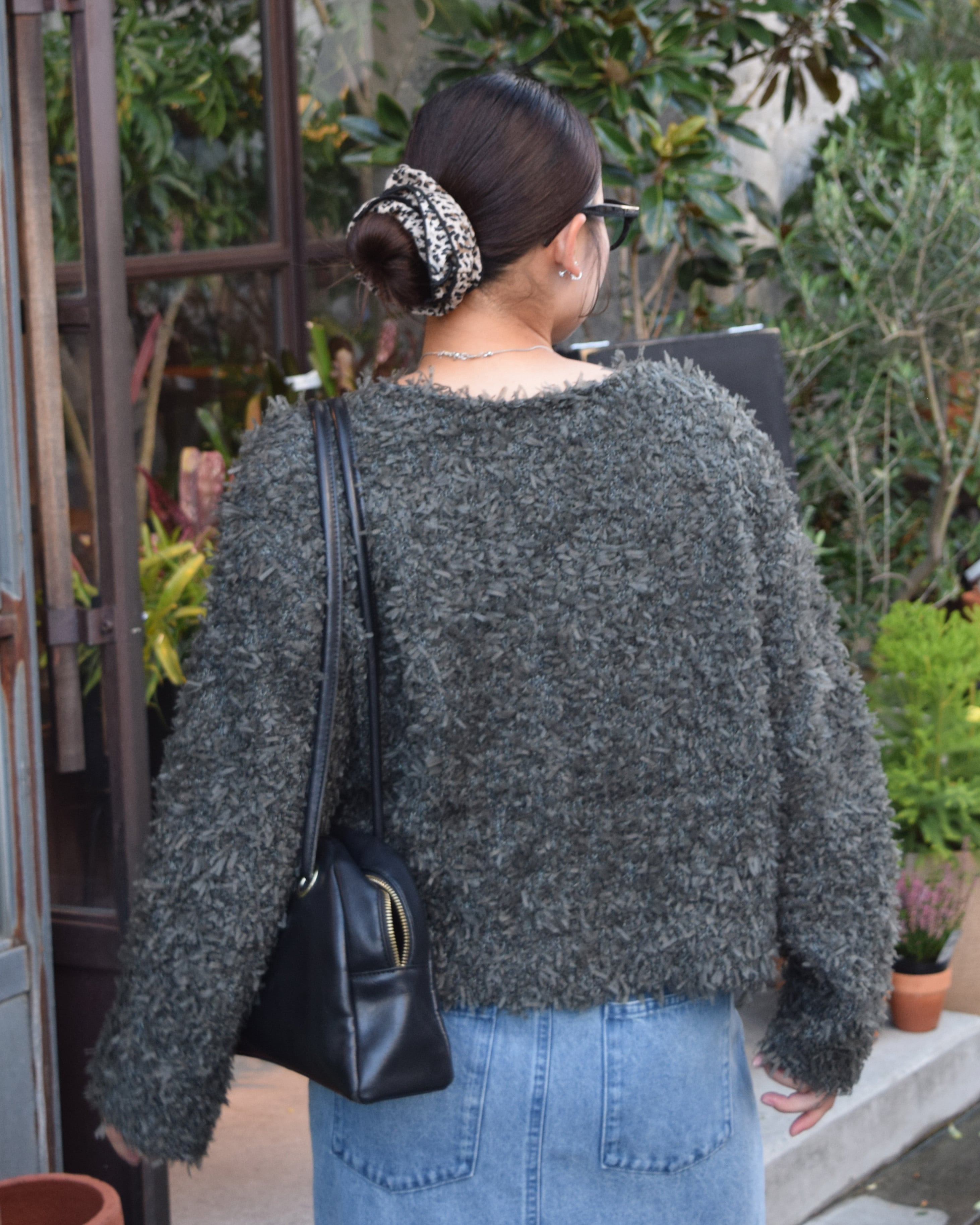 リボンヤーンならではのふんわりとした表情がポイントのニットプルオーバー。立体感のある素材で、1枚でも着映えするアイテムです。軽やかで肌触りが心地よく、デイリーに活躍してくれる1枚です。