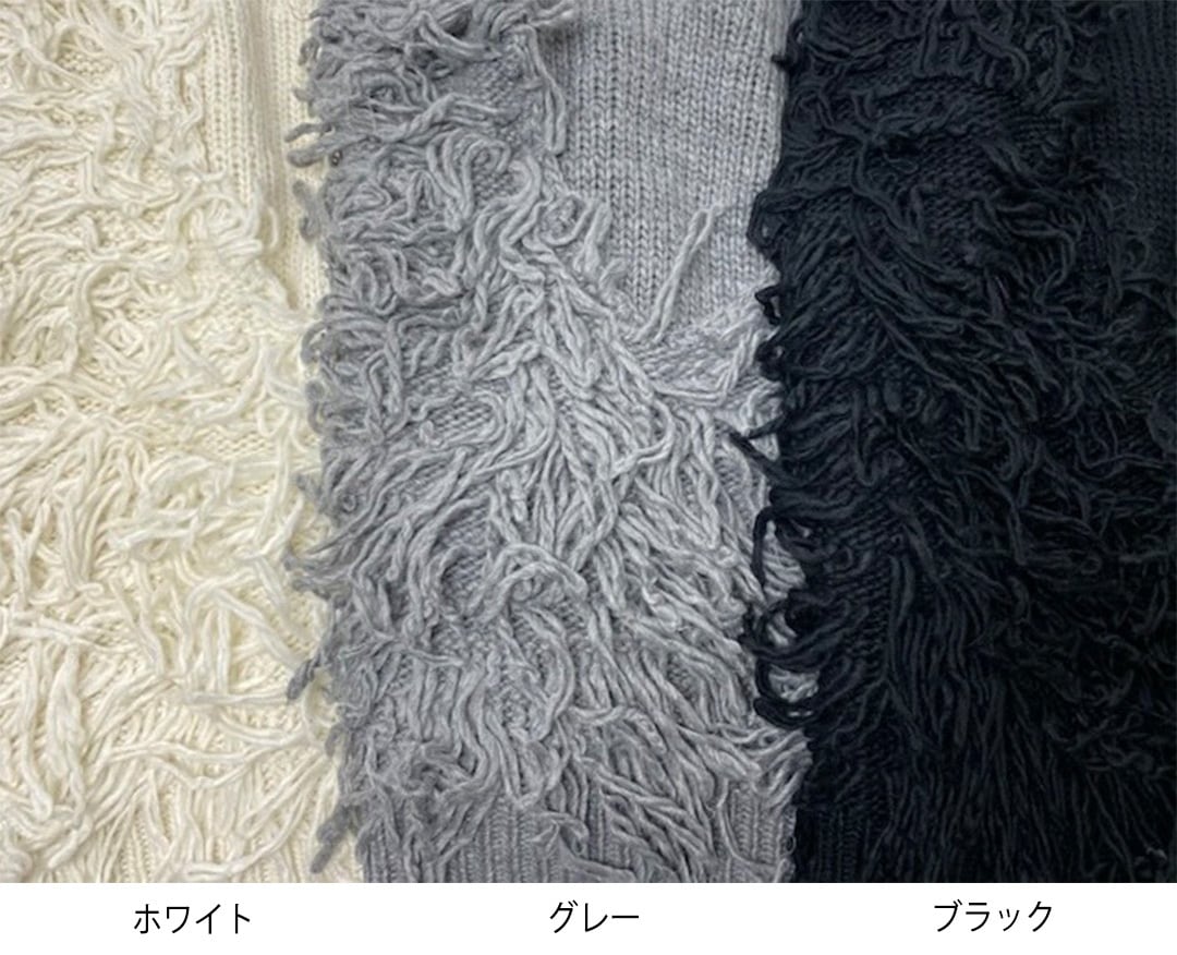 ふんわりとした柔らかなアクリル素材を使用し、動きのあるループ編みが特徴です。