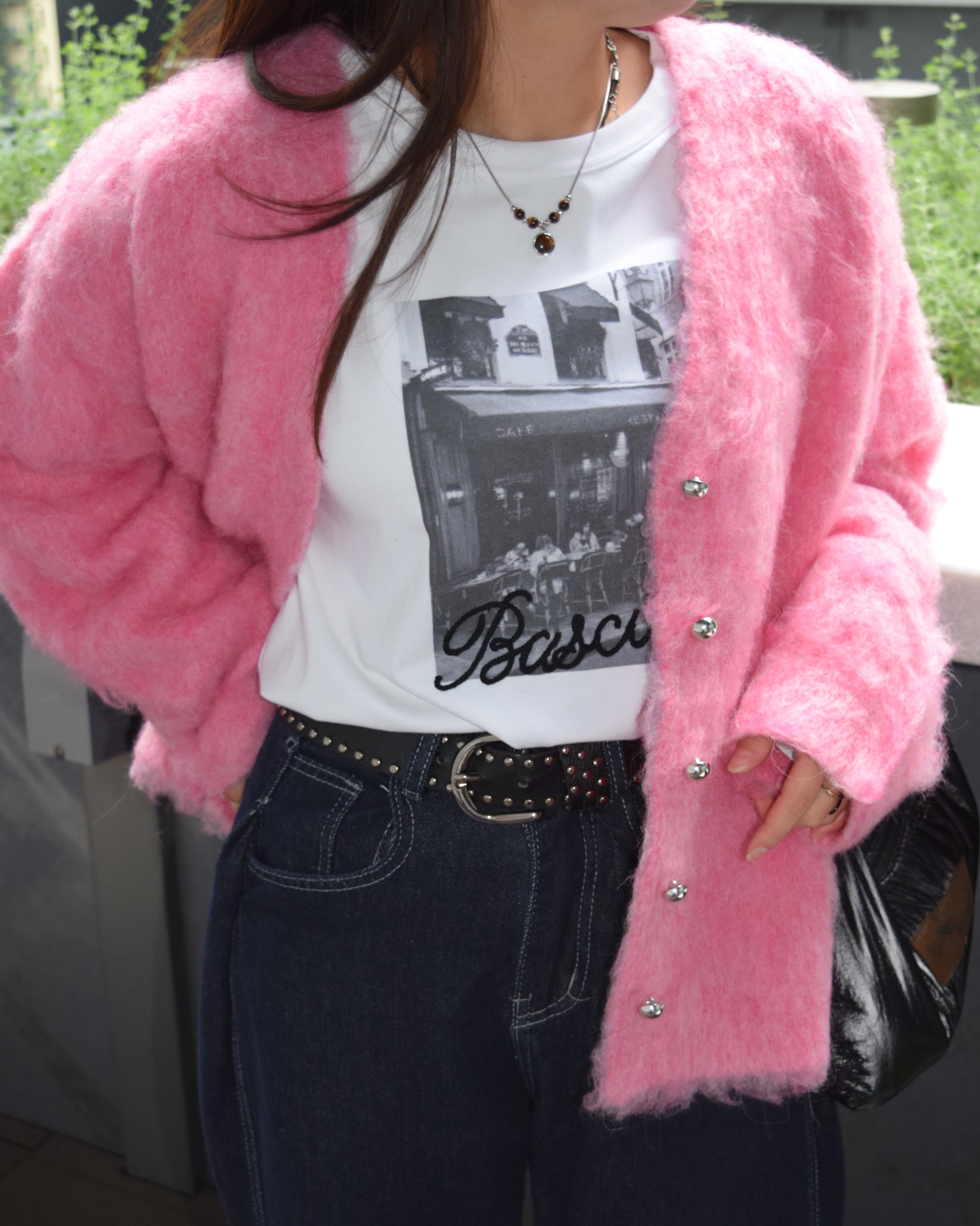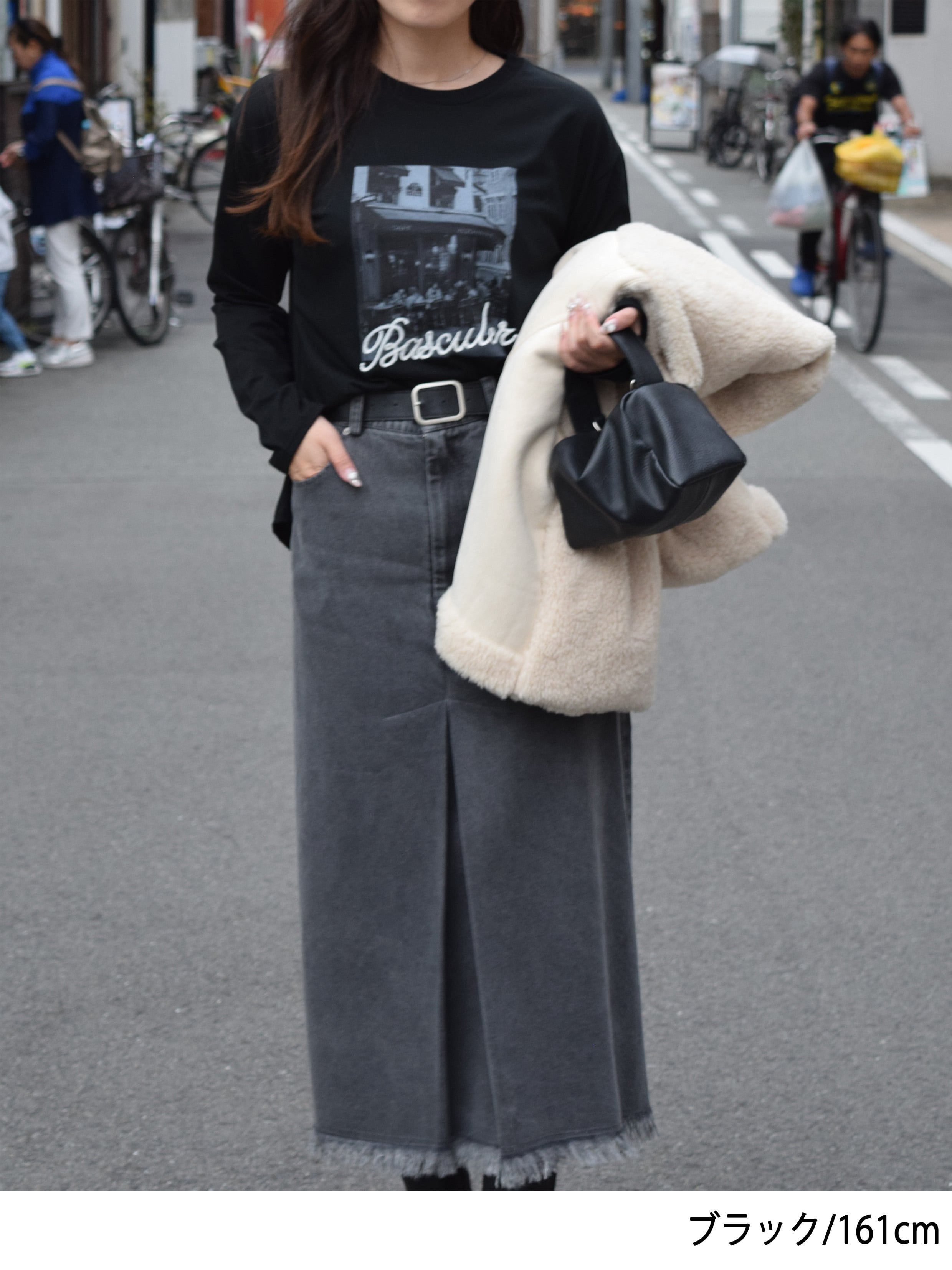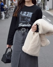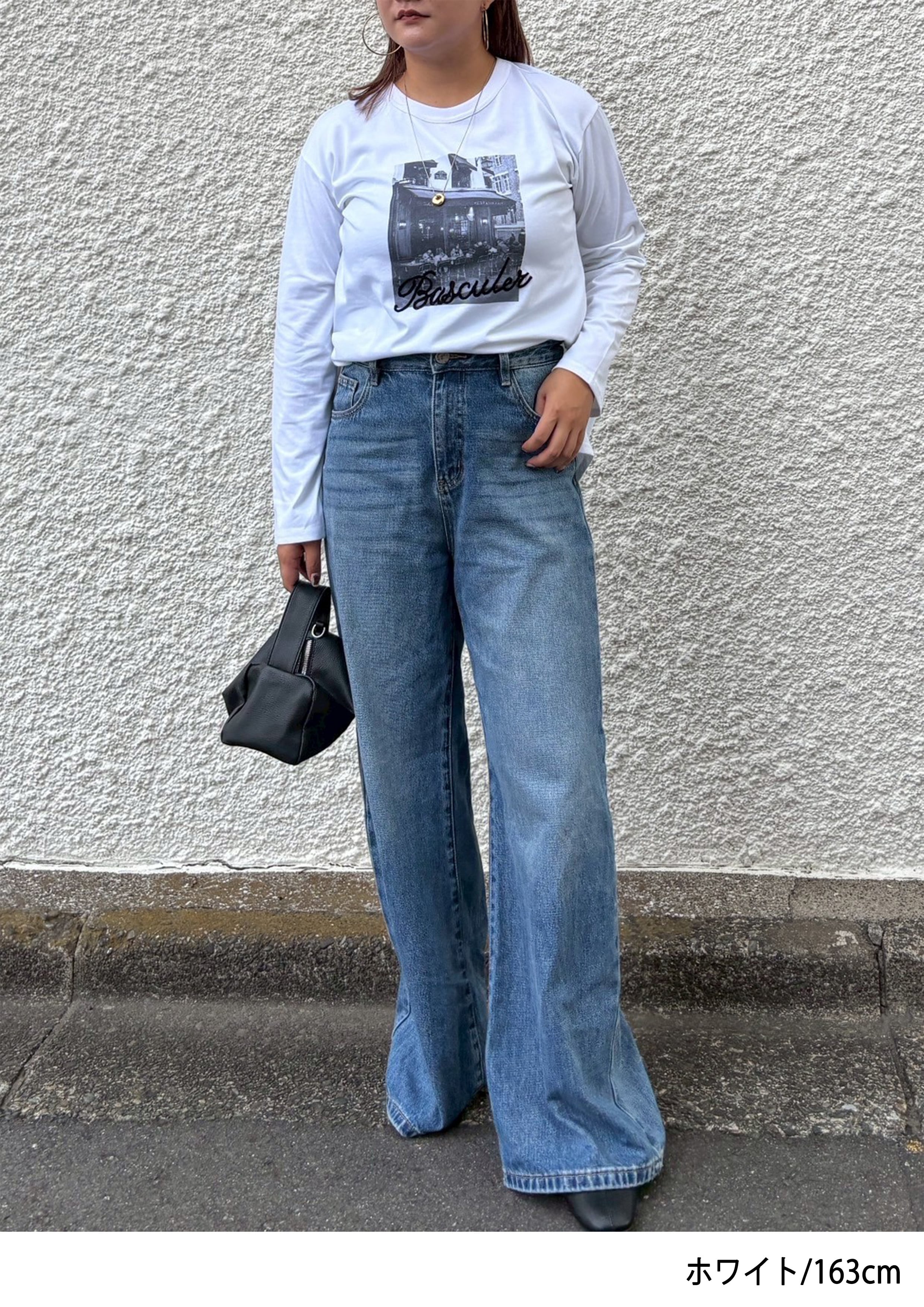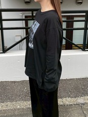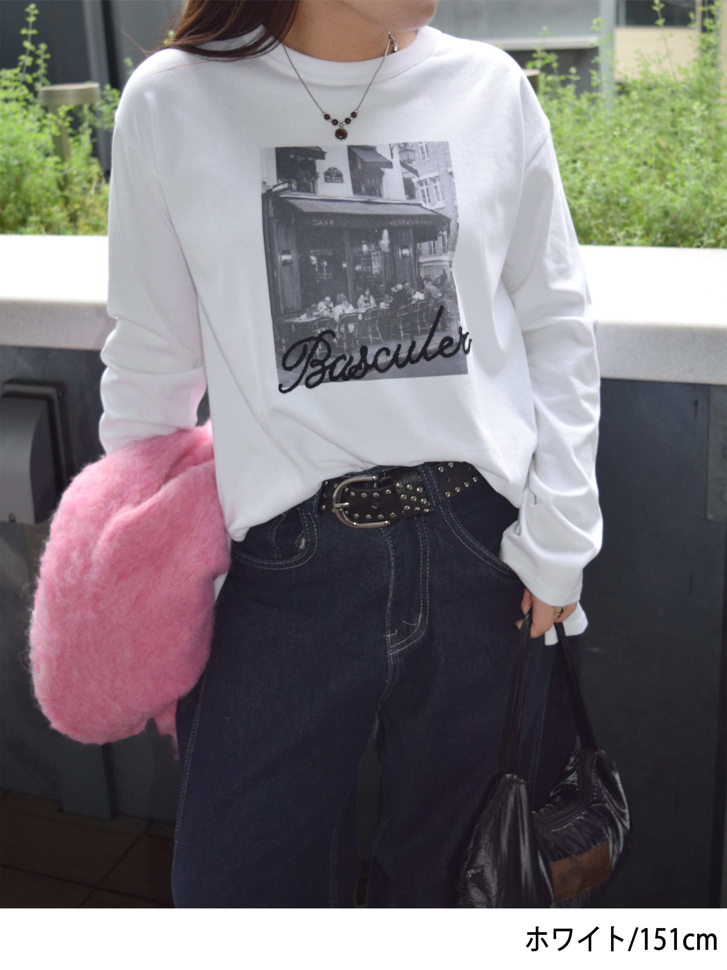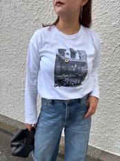 フォトプリントが映えるデザインなので、シンプルなボトムスを合わせるだけでバランスよく決まる1枚。季節の変わり目にはジャケットやトレンチコートのインナーとしても活躍。