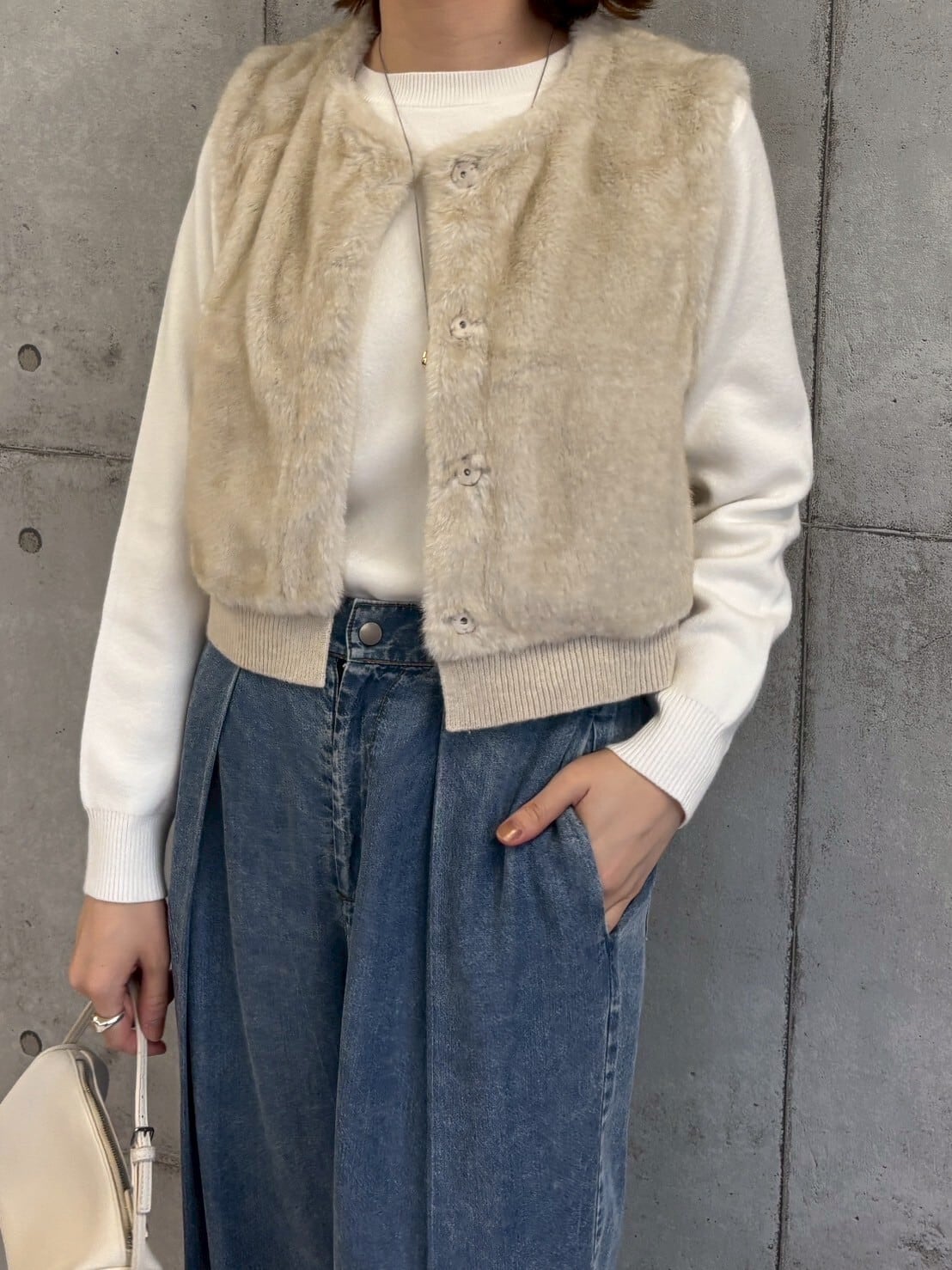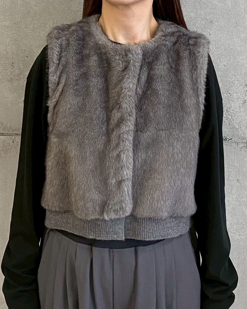 ふんわりとした質感が魅力のフェイクファーベスト。毛足の長すぎない上品なファーを使用し、ボリュームがありながらもすっきりとしたシルエットに仕上げました。
