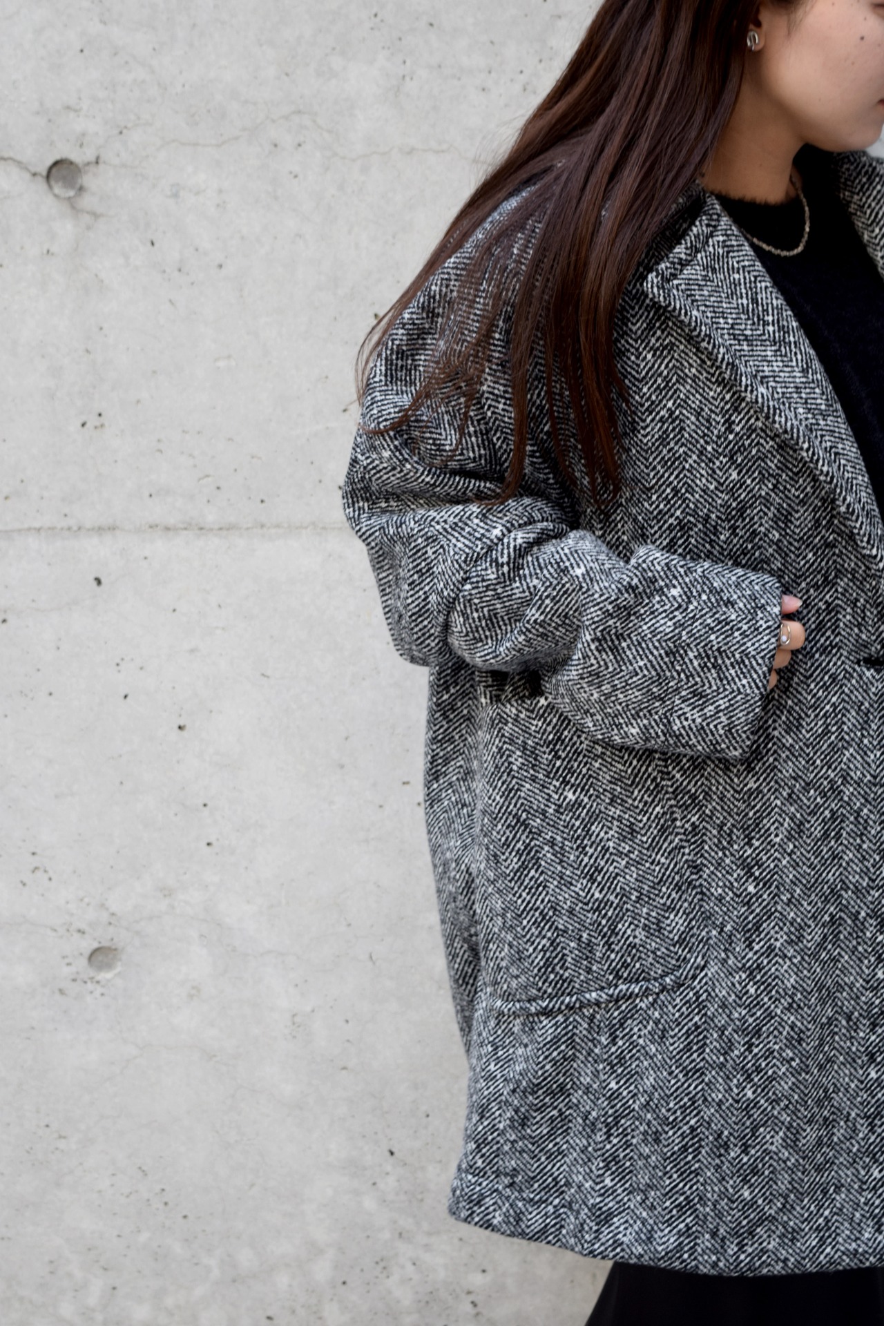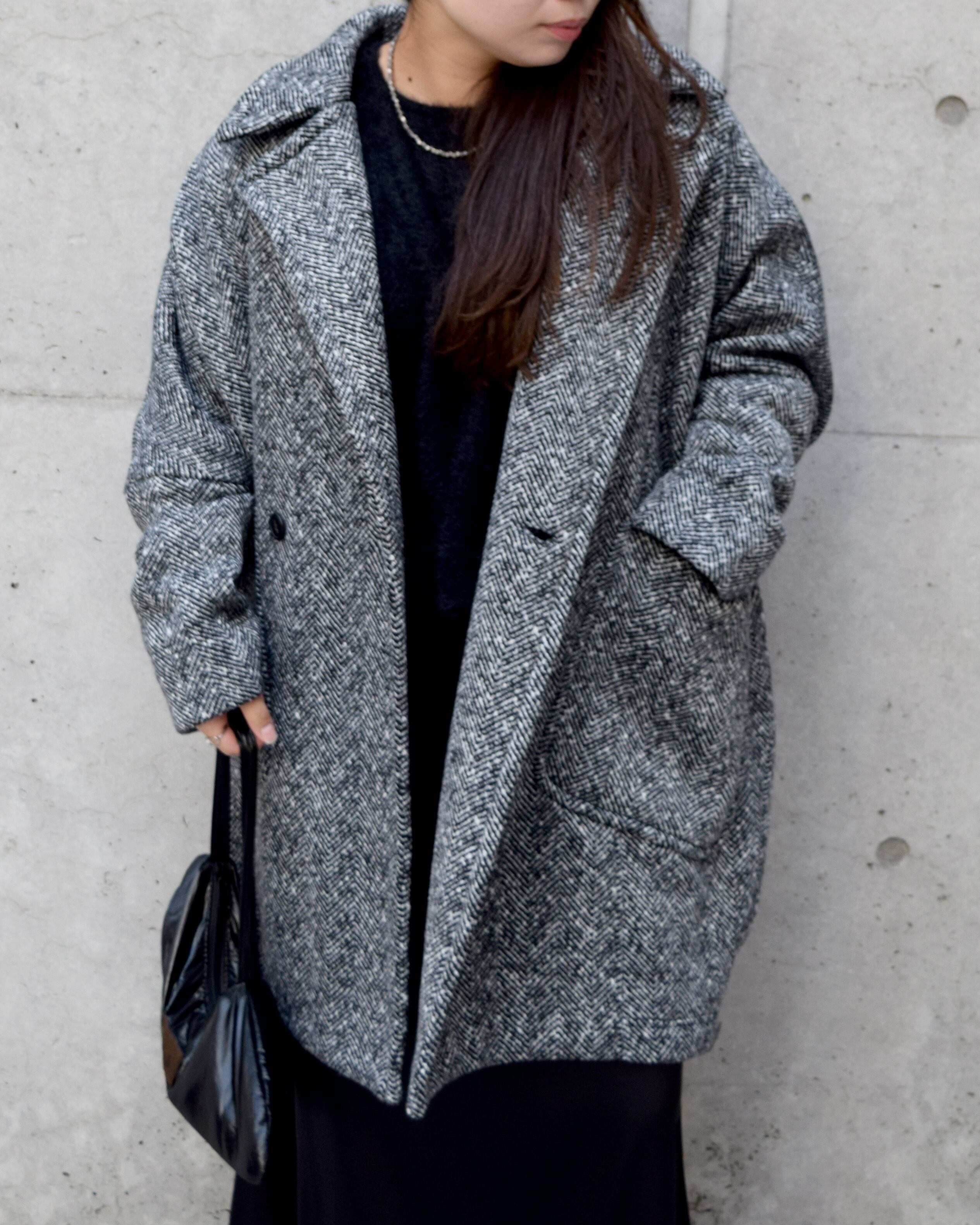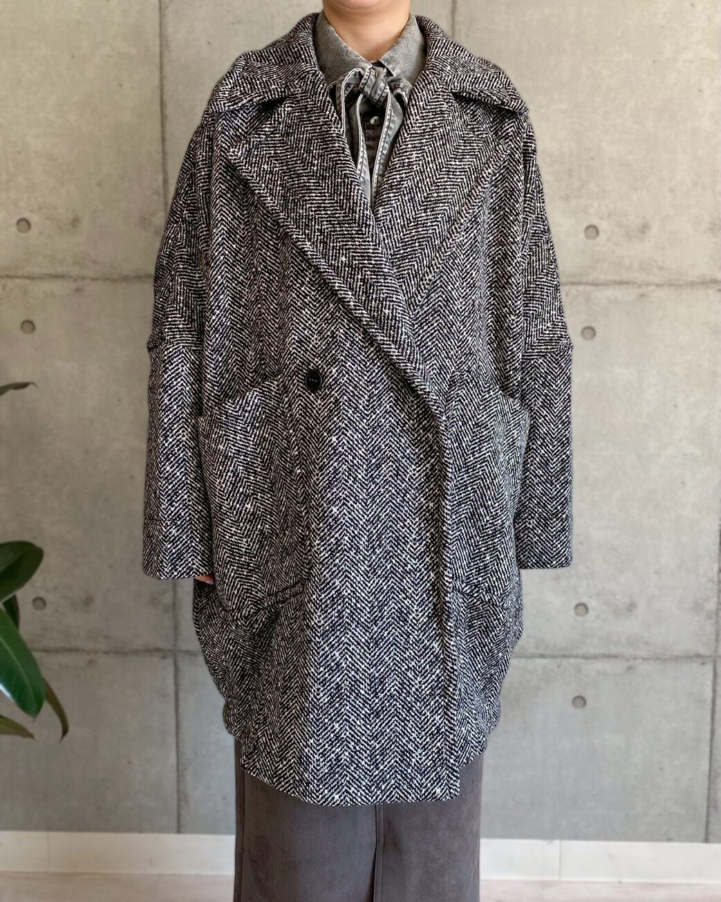 丸みのあるシルエットが女性らしく、身体を包み込むようなフォルムが魅力です。程よいボリューム感のラペルや大きめのポケットがアクセントになり、羽織るだけでこなれた印象に。軽量ながらも保温性が高く、寒い季節のデイリーアウターとして活躍します。
