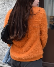 あたたかく優しい肌触りのシャギーが魅力です。ほんのり光を反射するラメが華やかさをプラスし、顔まわりを明るく見せてくれます。程よく開いたVネックが抜け感を演出し、ふわっとしたシルエットながらもすっきりとした印象に。