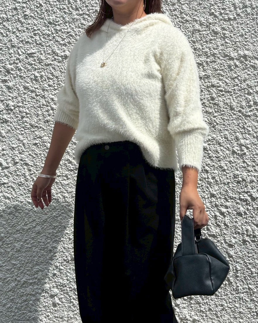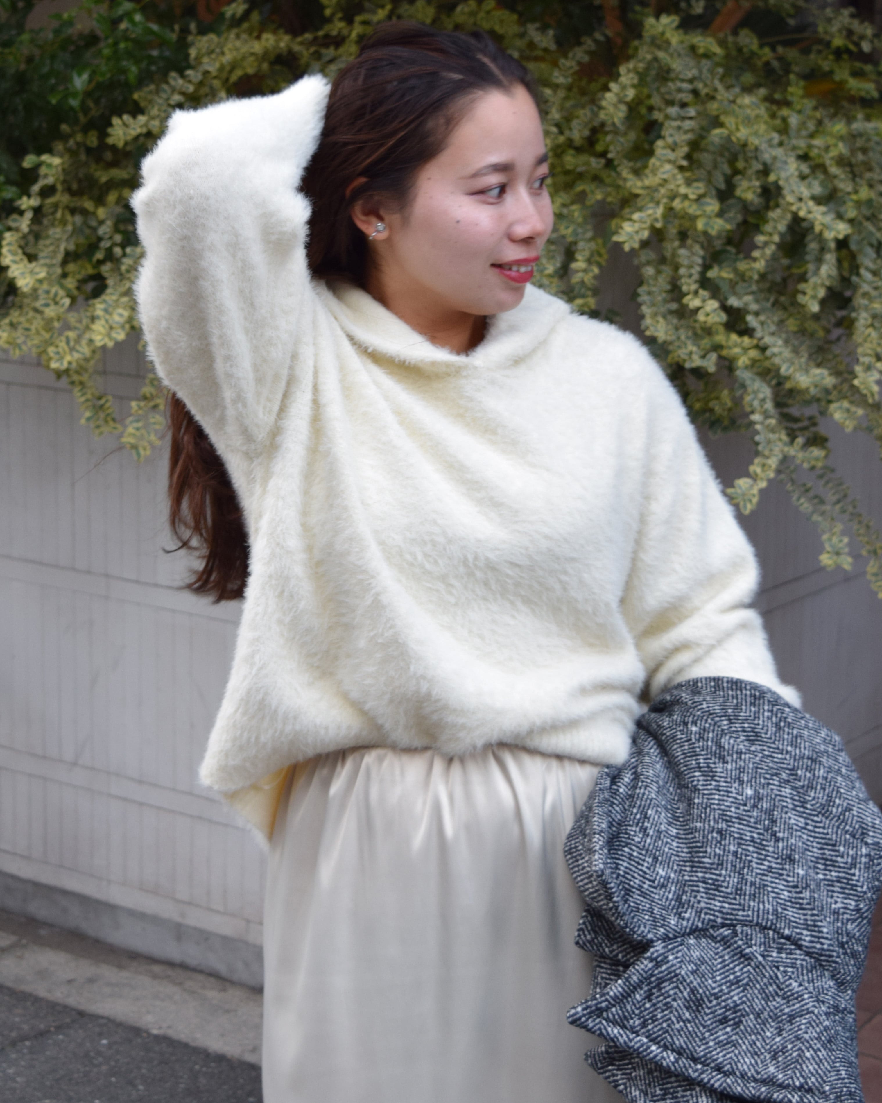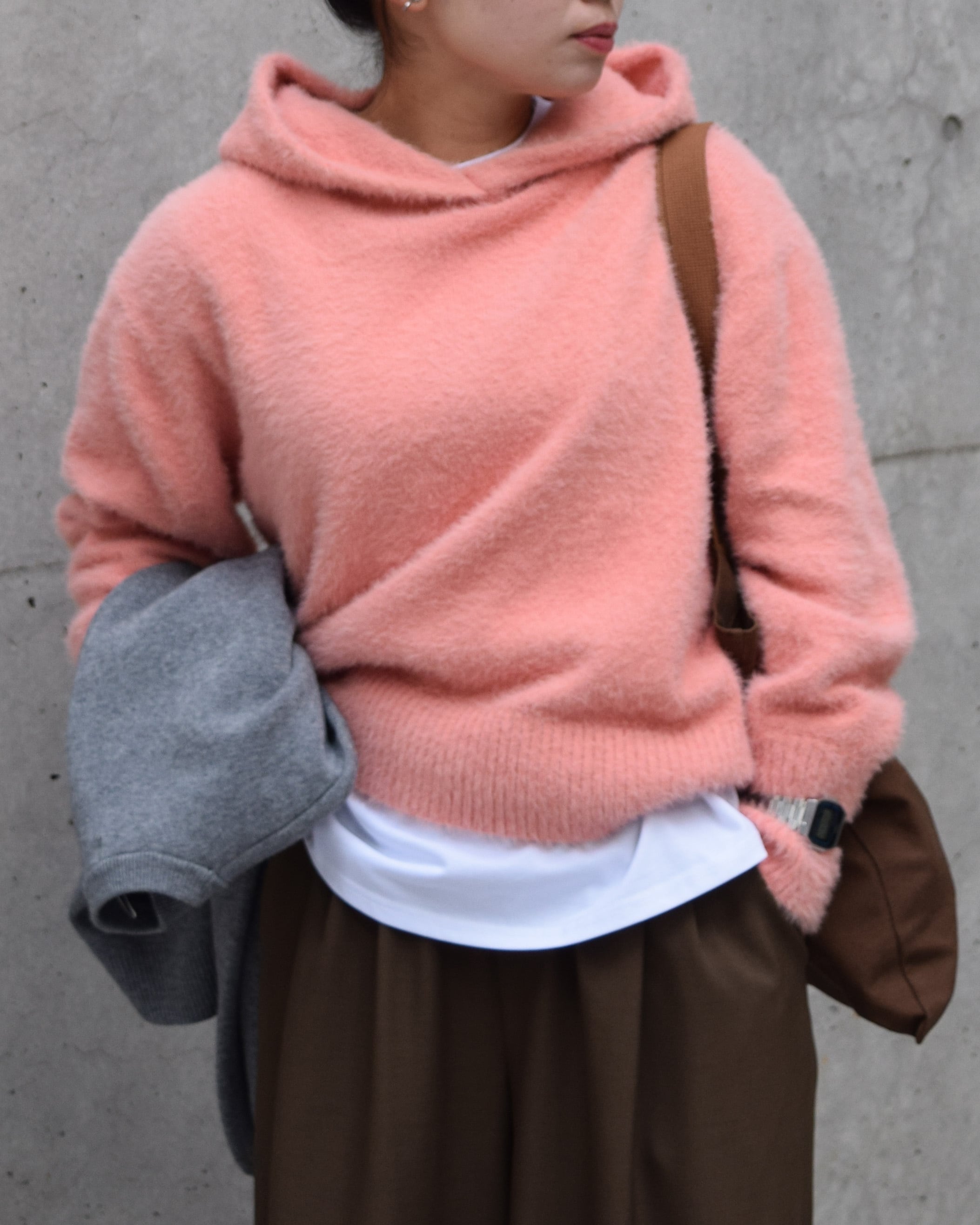 ゆるめのシルエットと丸みのあるフォルムが、カジュアルながらも女性らしい印象を演出します。
