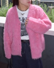 ブラッシュ加工による柔らかな毛足が、見た目にも季節感をプラス。Vネックのすっきりとしたシルエットと程よいゆとりのあるサイズ感が女性らしさを引き立ててくれます。