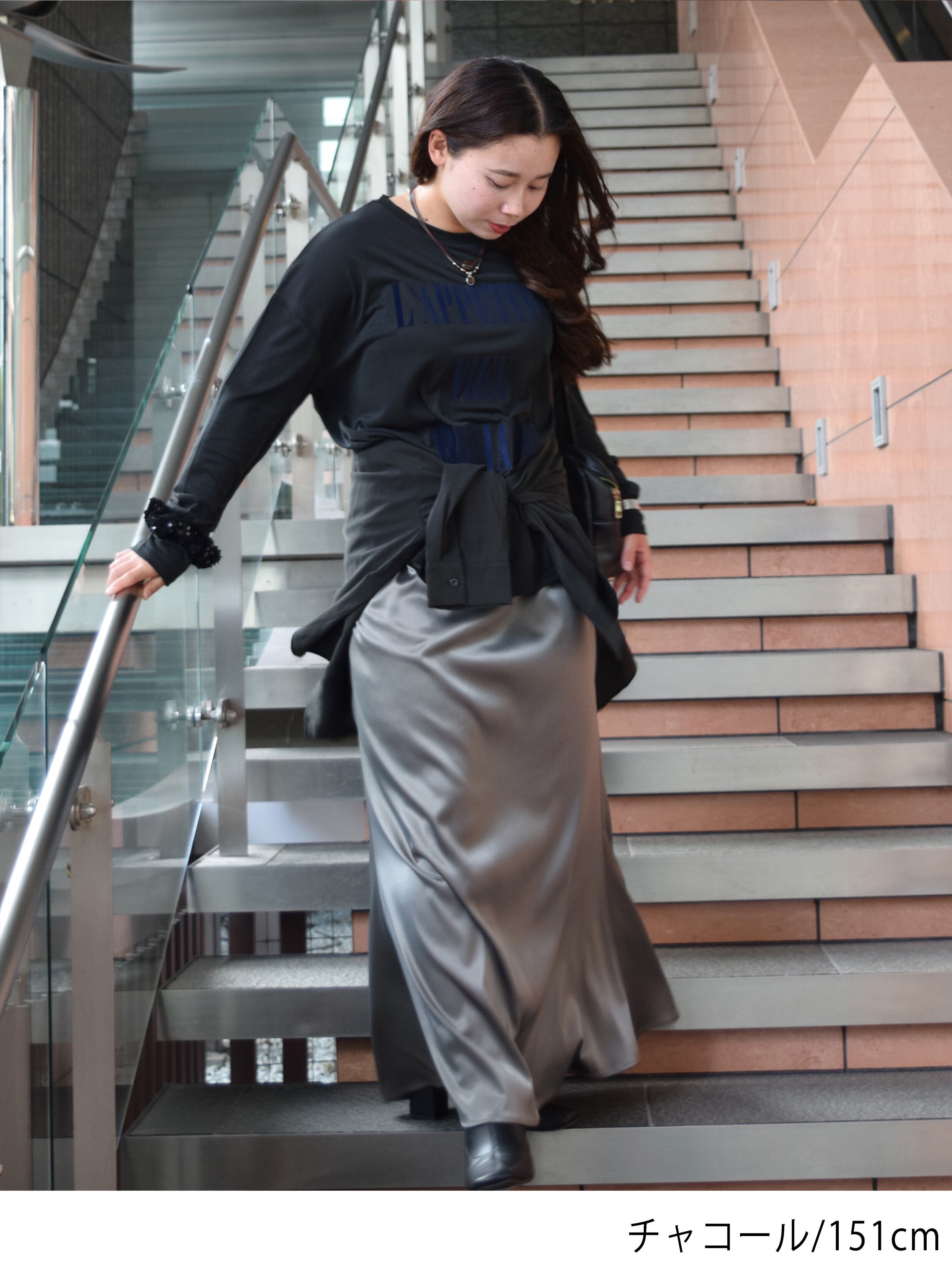 上品な光沢感が魅力のストレッチマットサテンを使用したロングスカート。