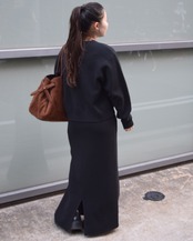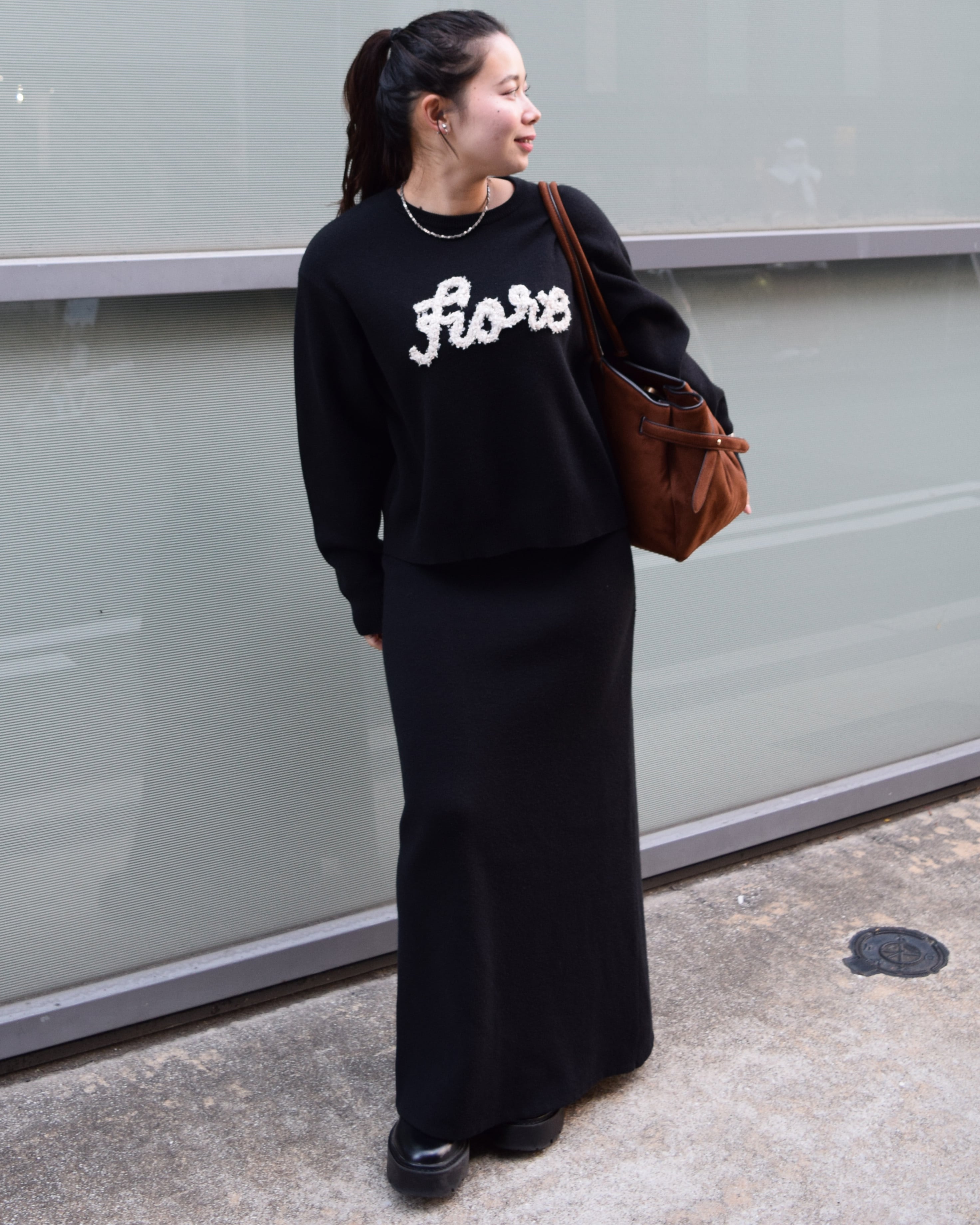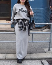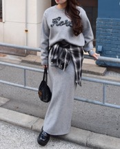 デニムを合わせたカジュアルスタイルはもちろん、同素材のニットIラインスカートとセットアップコーデで、こなれ感のある大人カジュアルスタイルもおすすめ。