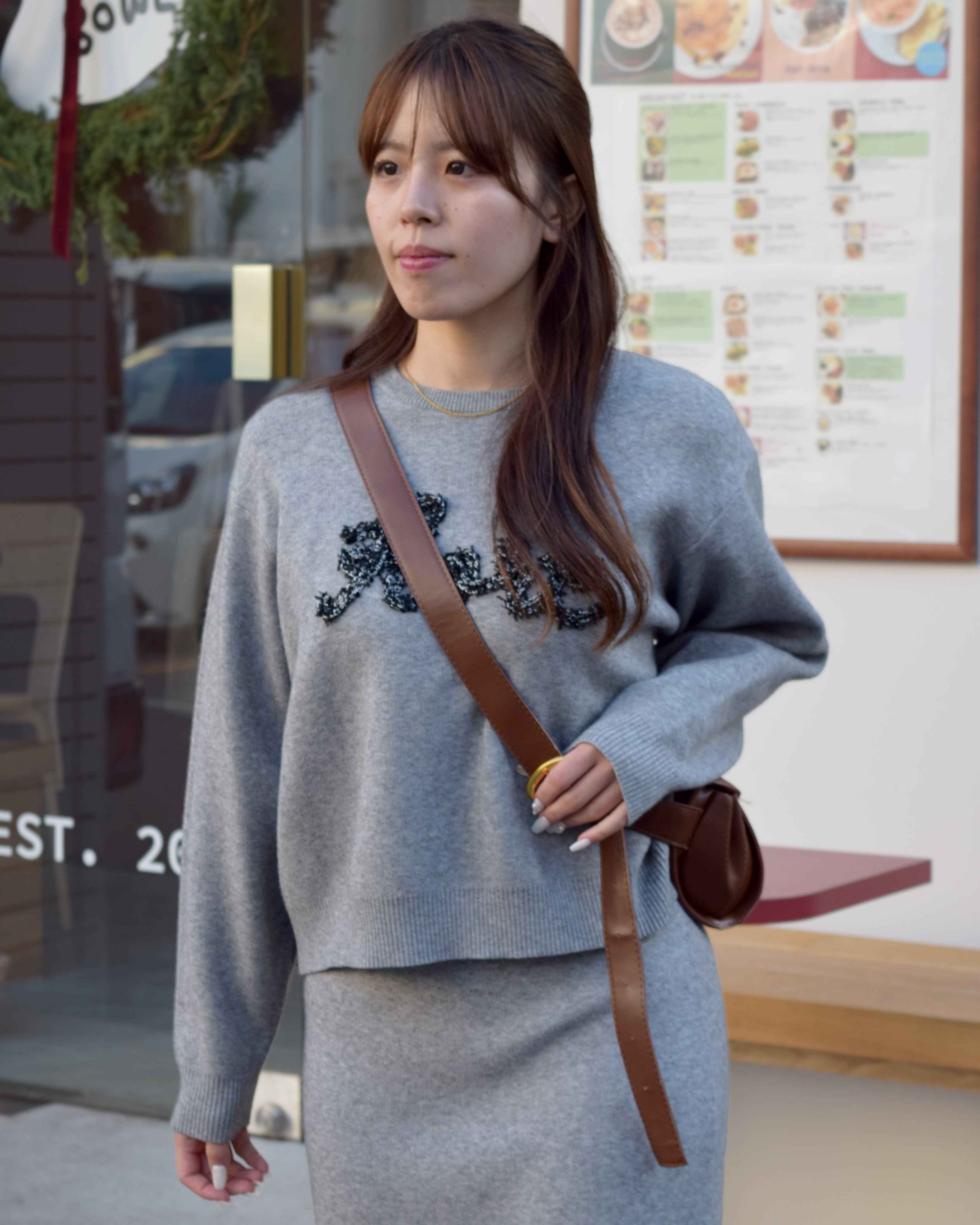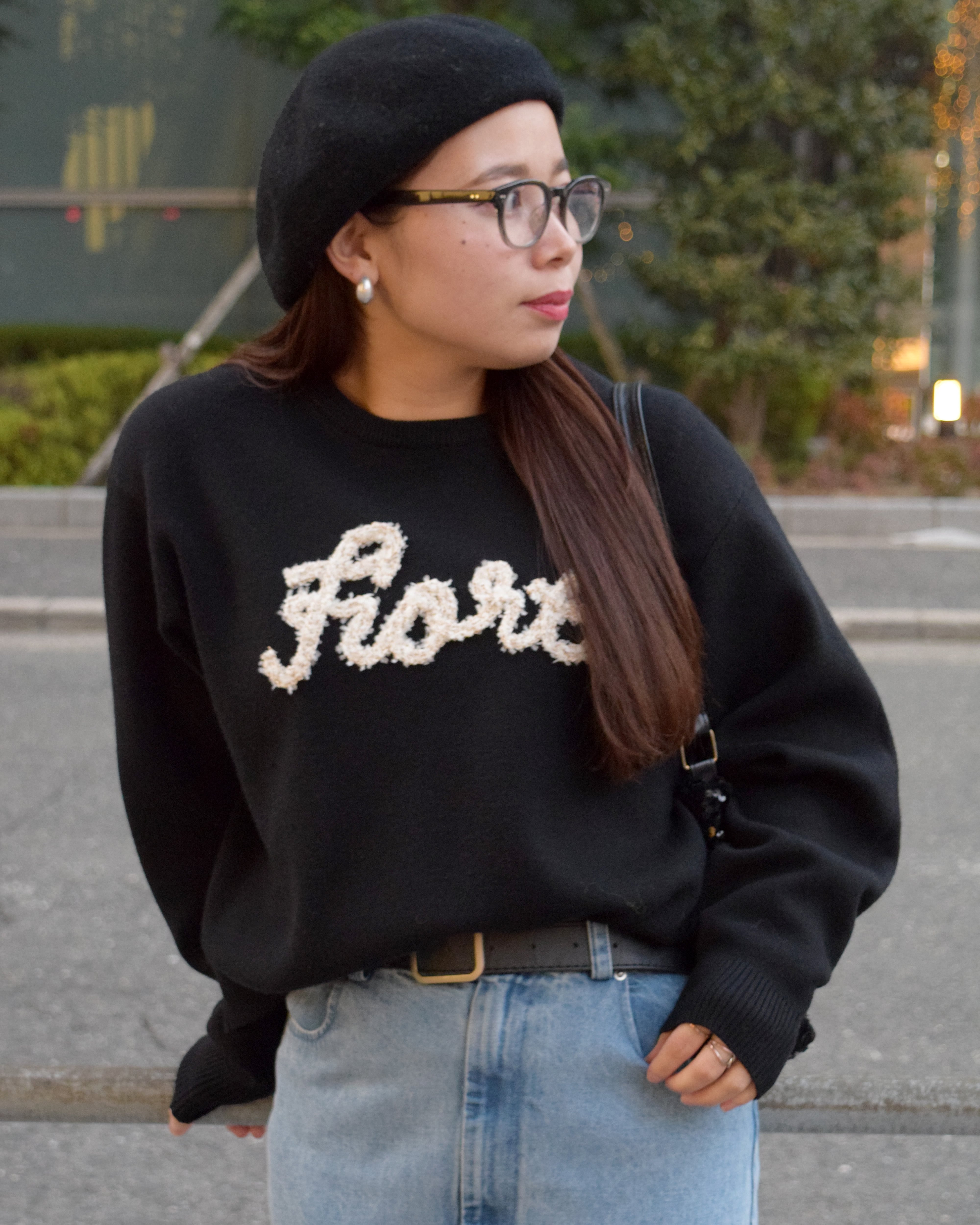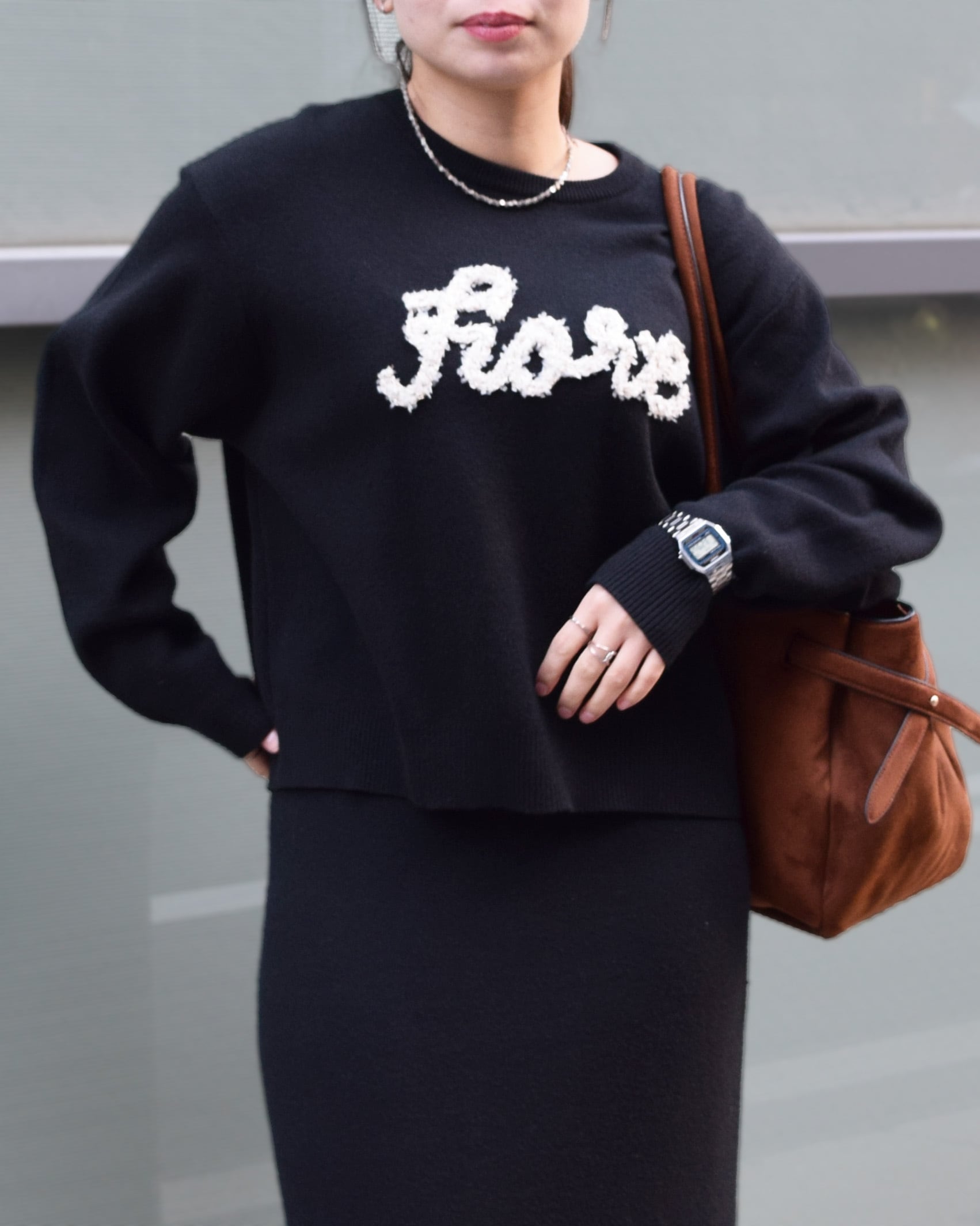 ロゴがポイントになるため、アウターのインナーとしても映え、春は1枚で長い季節着れるニットとなっております。