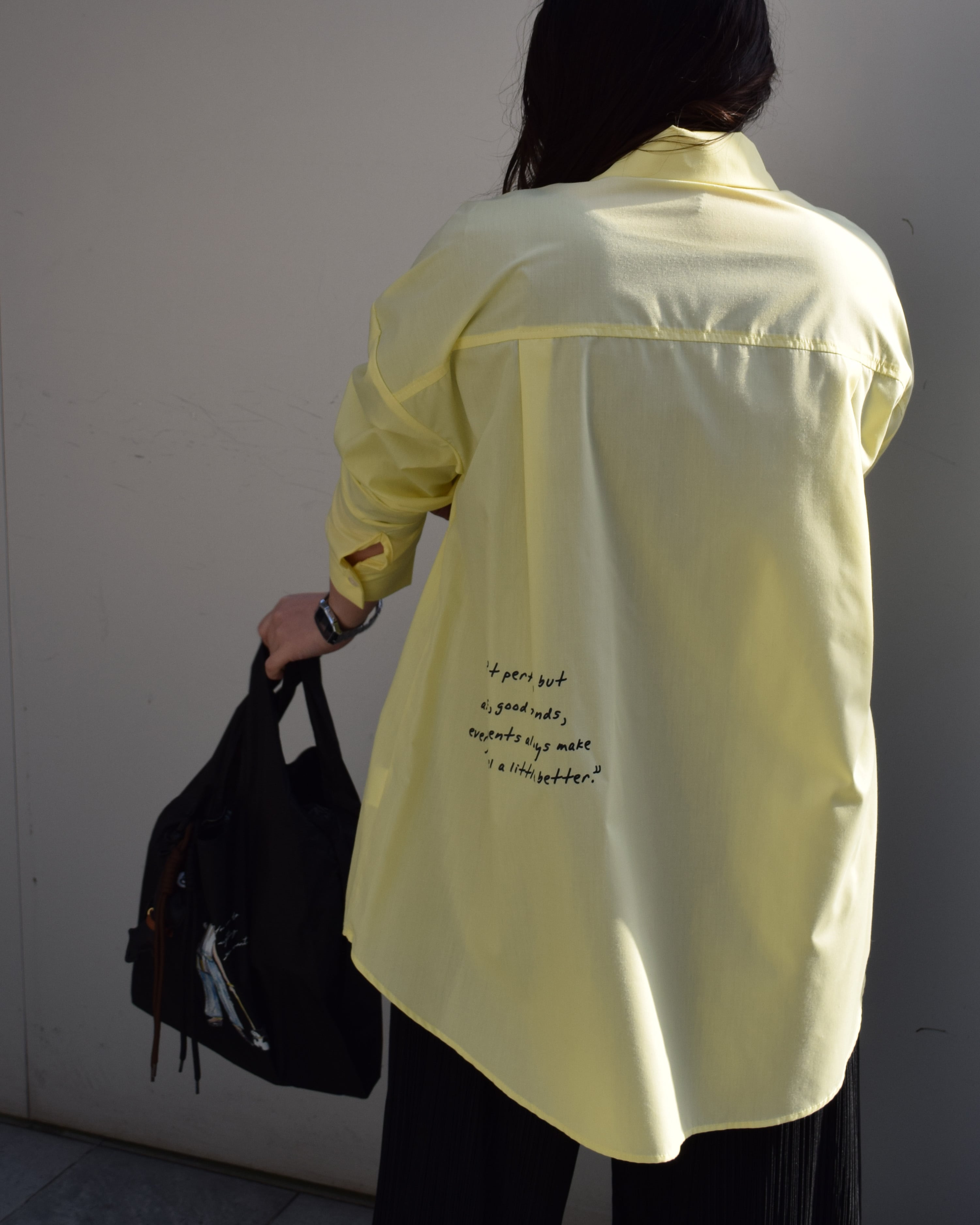 ROSIEE大人気のレタリングシリーズ!今回は春らしく程よくハリのある素材を使用したビッグシャツです。