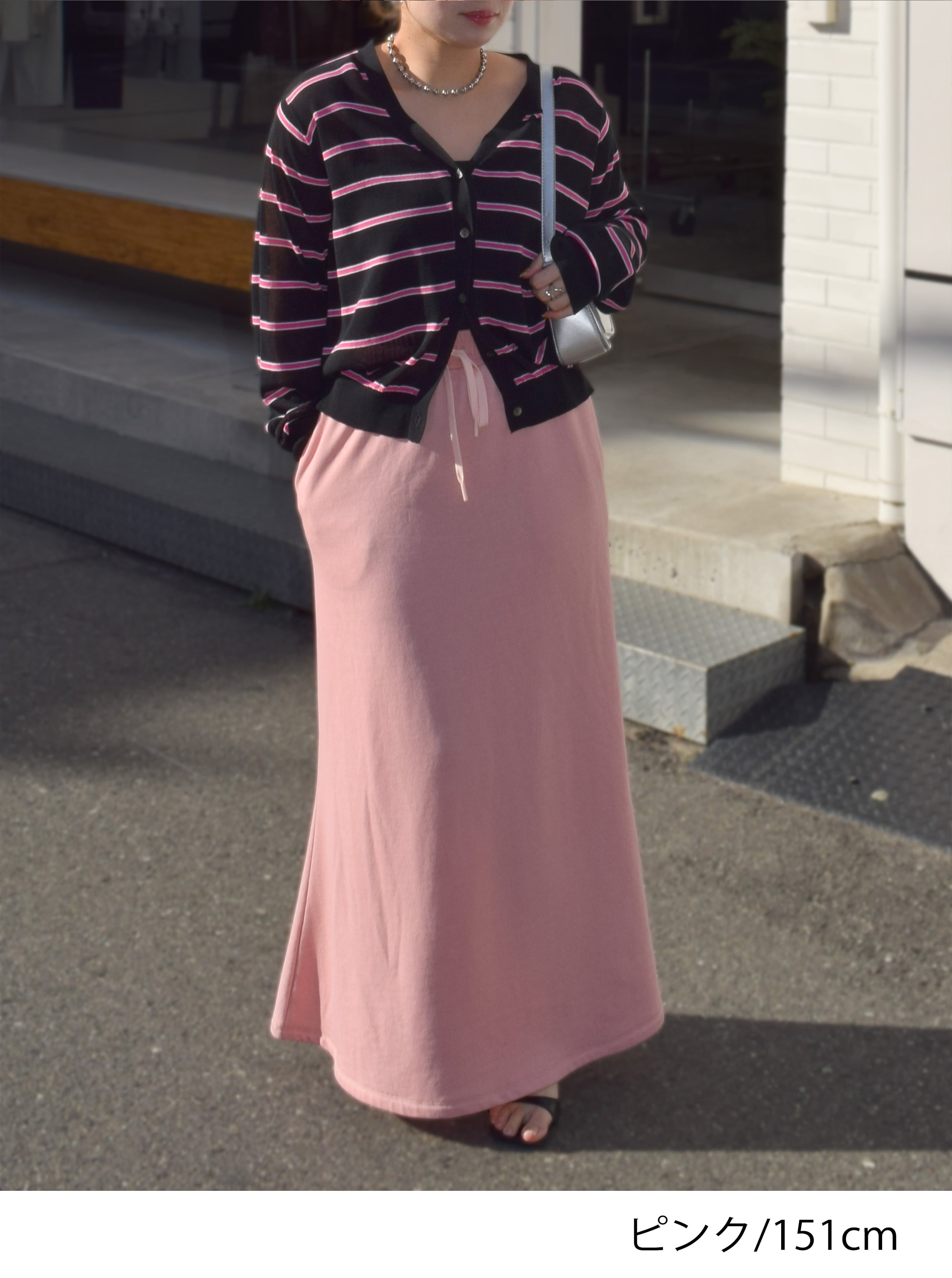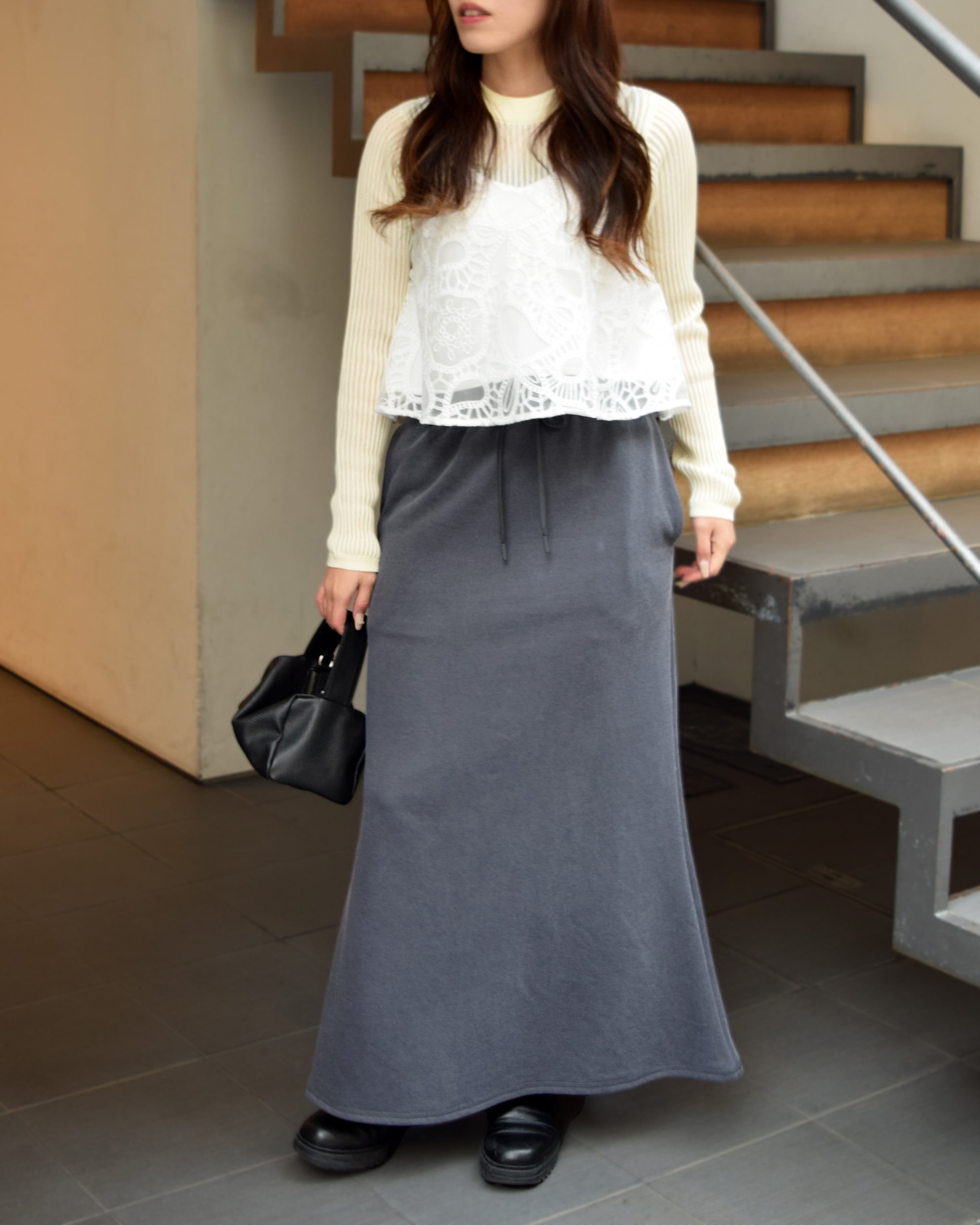 セットアップはもちろん、単品使いでは、シンプルなTシャツやニットと合わせて、スカートを主役にしたコーディネートもおすすめです◎