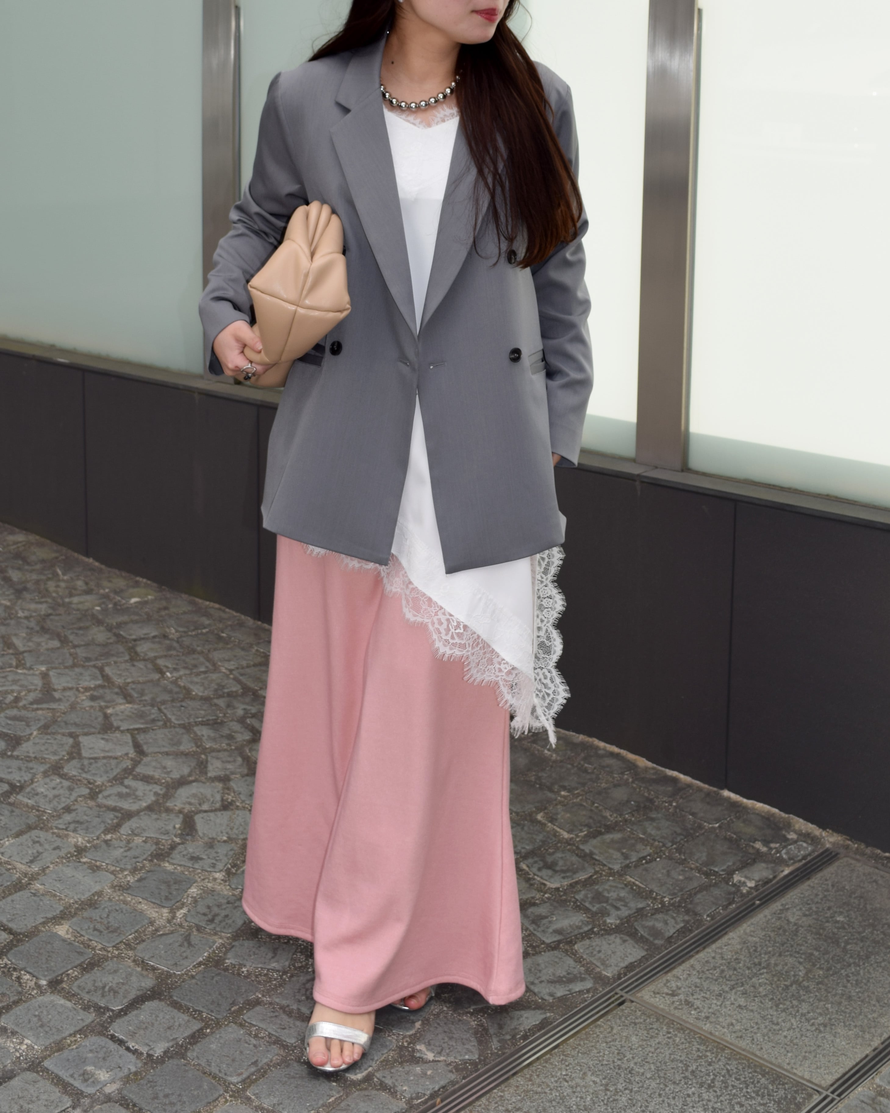 ストンと落ちるシルエットで、カジュアルすぎず大人っぽく仕上げています。