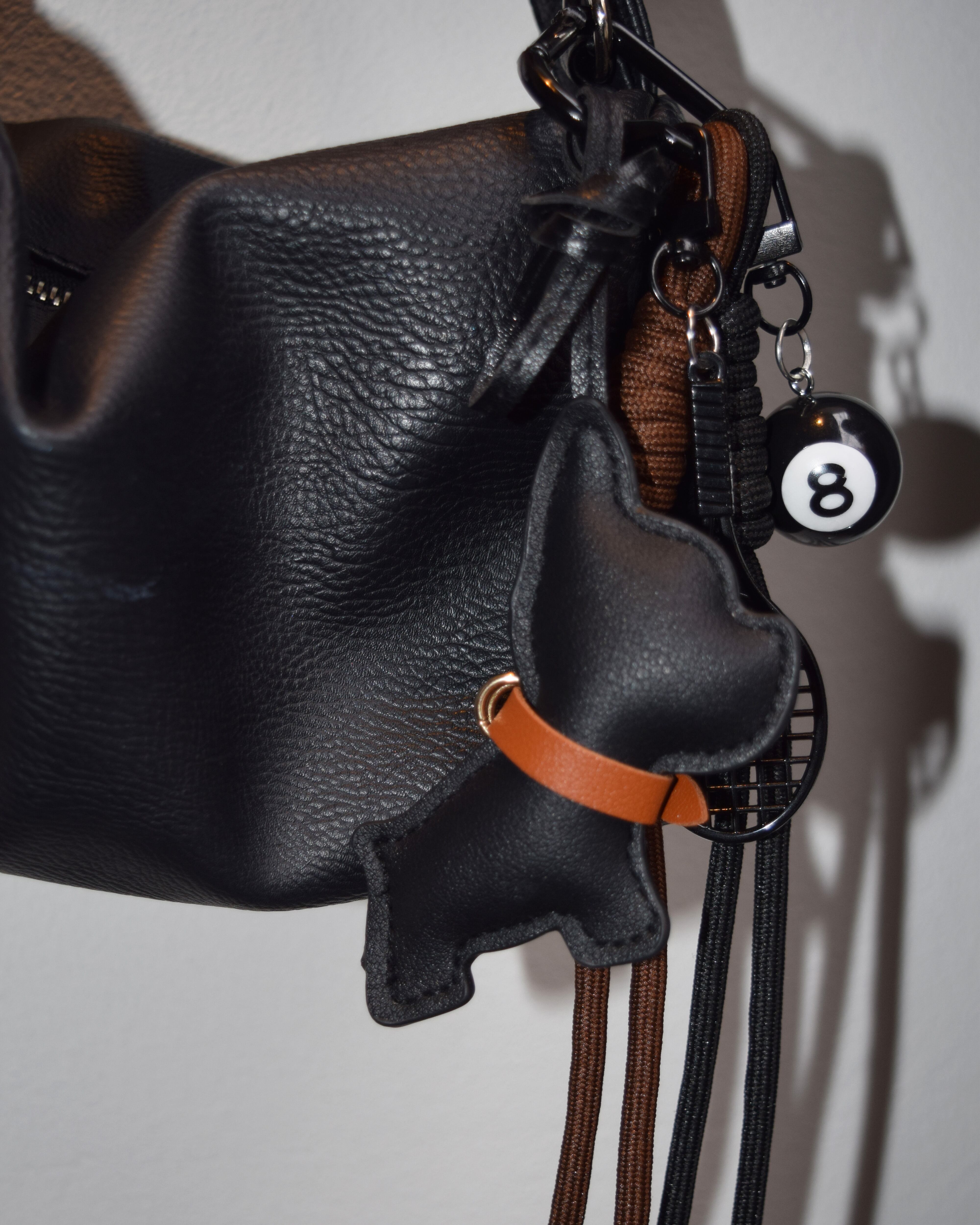 ポップで可愛いチャームもセットでついているのがポイント。カラーはブラックとブラウンなので可愛すぎず、大人らしさもあります!