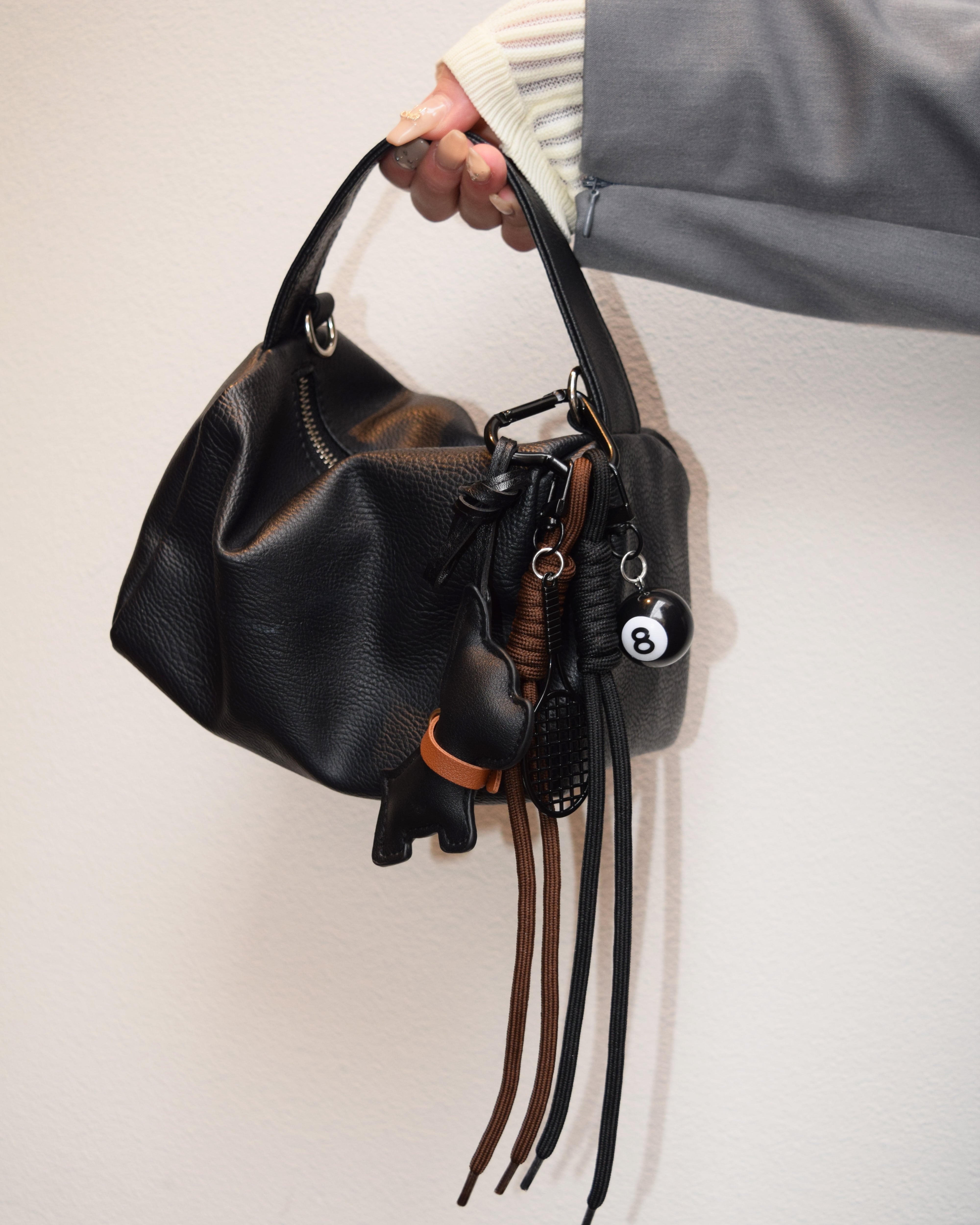 スタイリングの差し色として取り入れたいマルシェBAG。チャームは取り外し可能なので、お手持ちのBAGにつけていただくのも◎