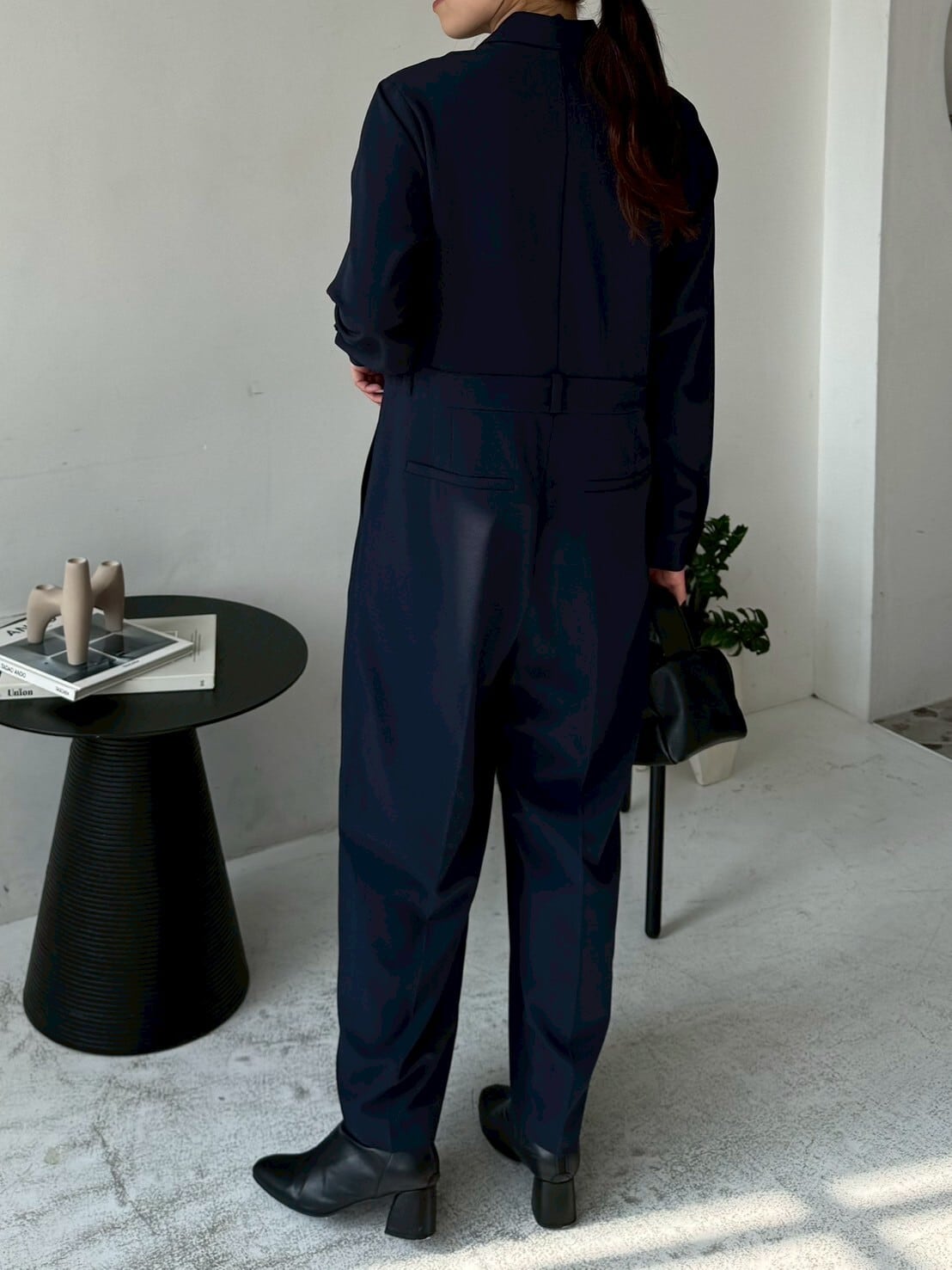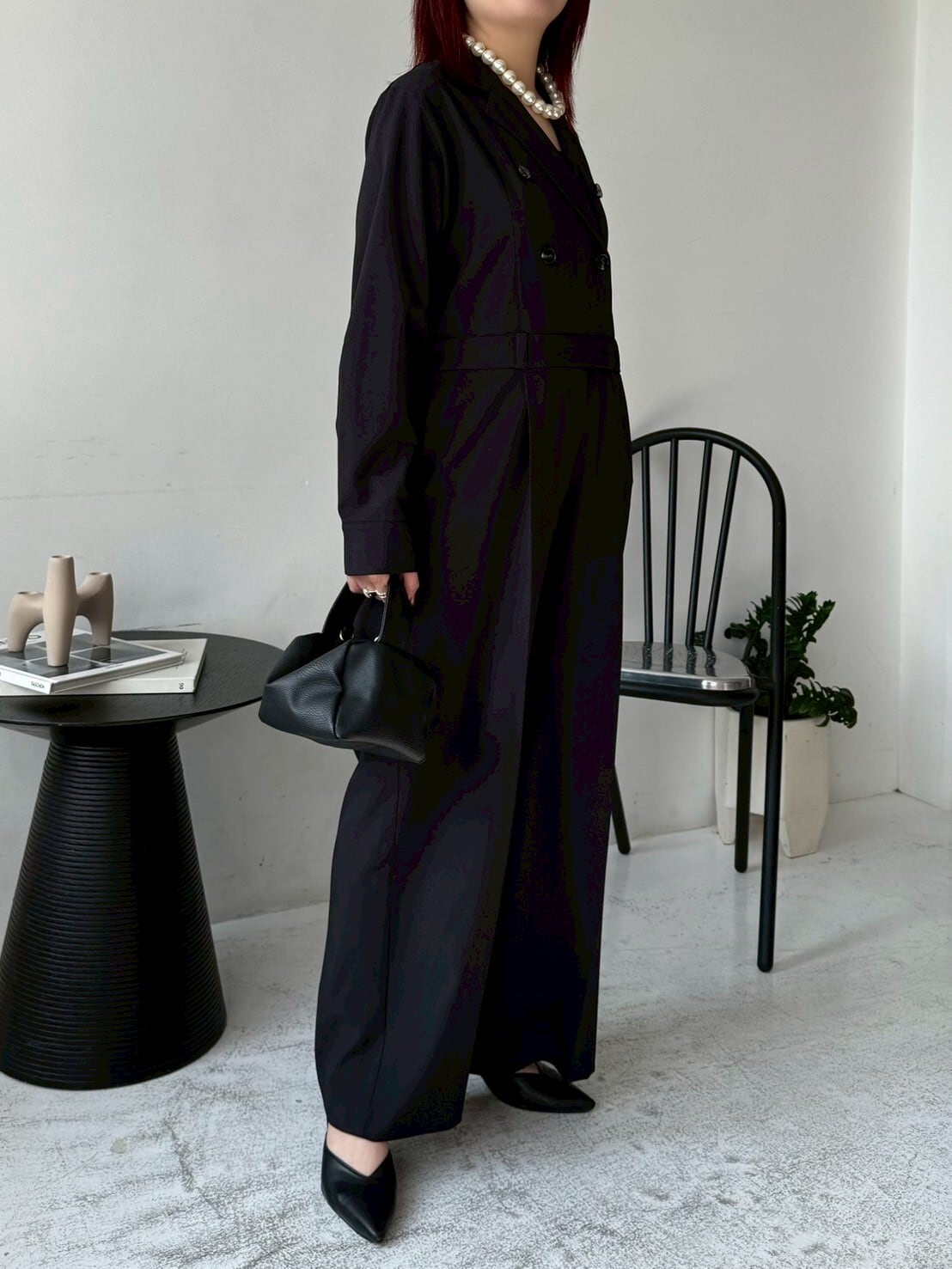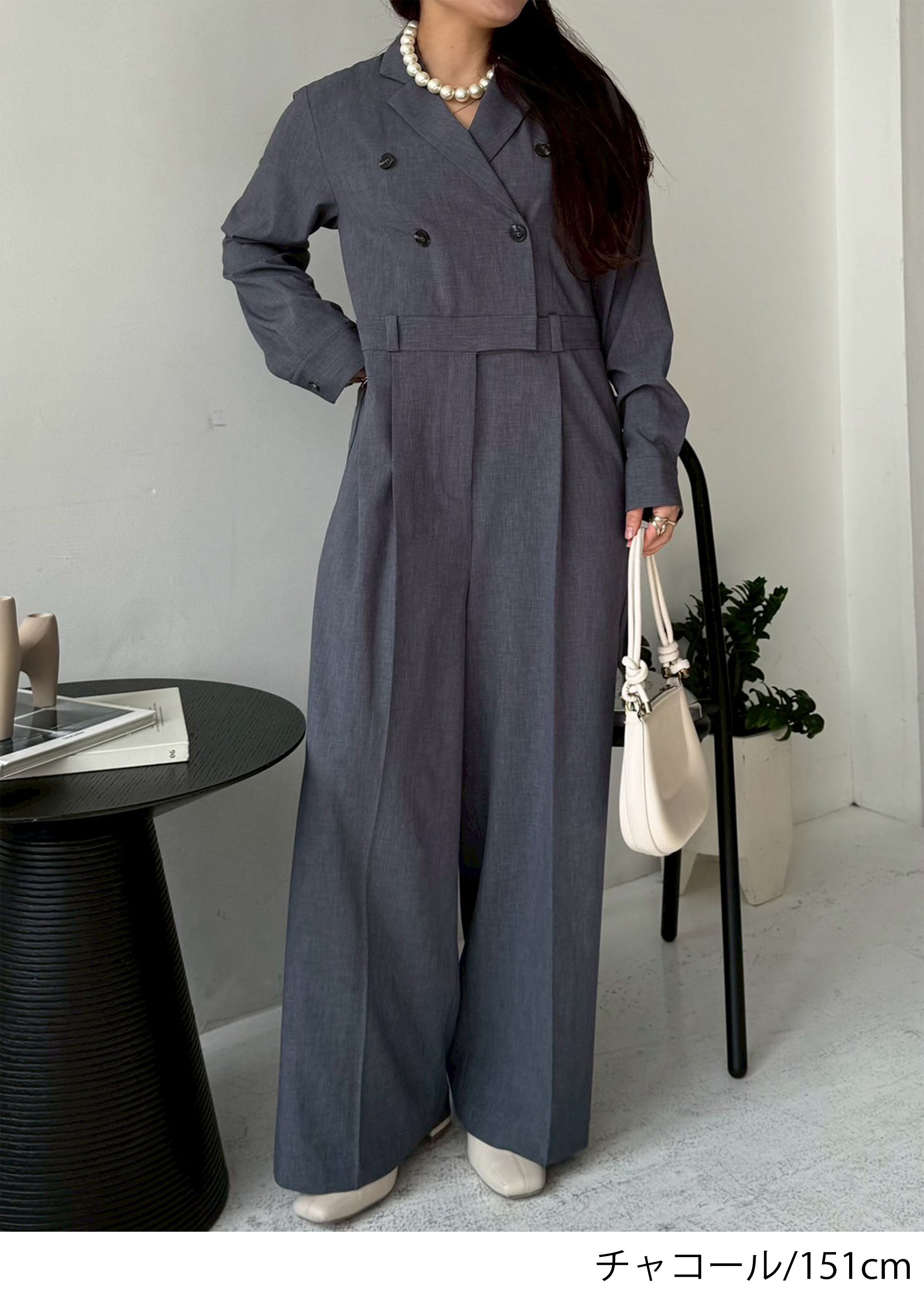 シワになりにくい素材で、すっきりとしたシルエットをキープしながら快適な着心地を叶えます。フロントがダブル使用でマニッシュな印象を与え、縦ラインを強調する洗練されたイメージに。