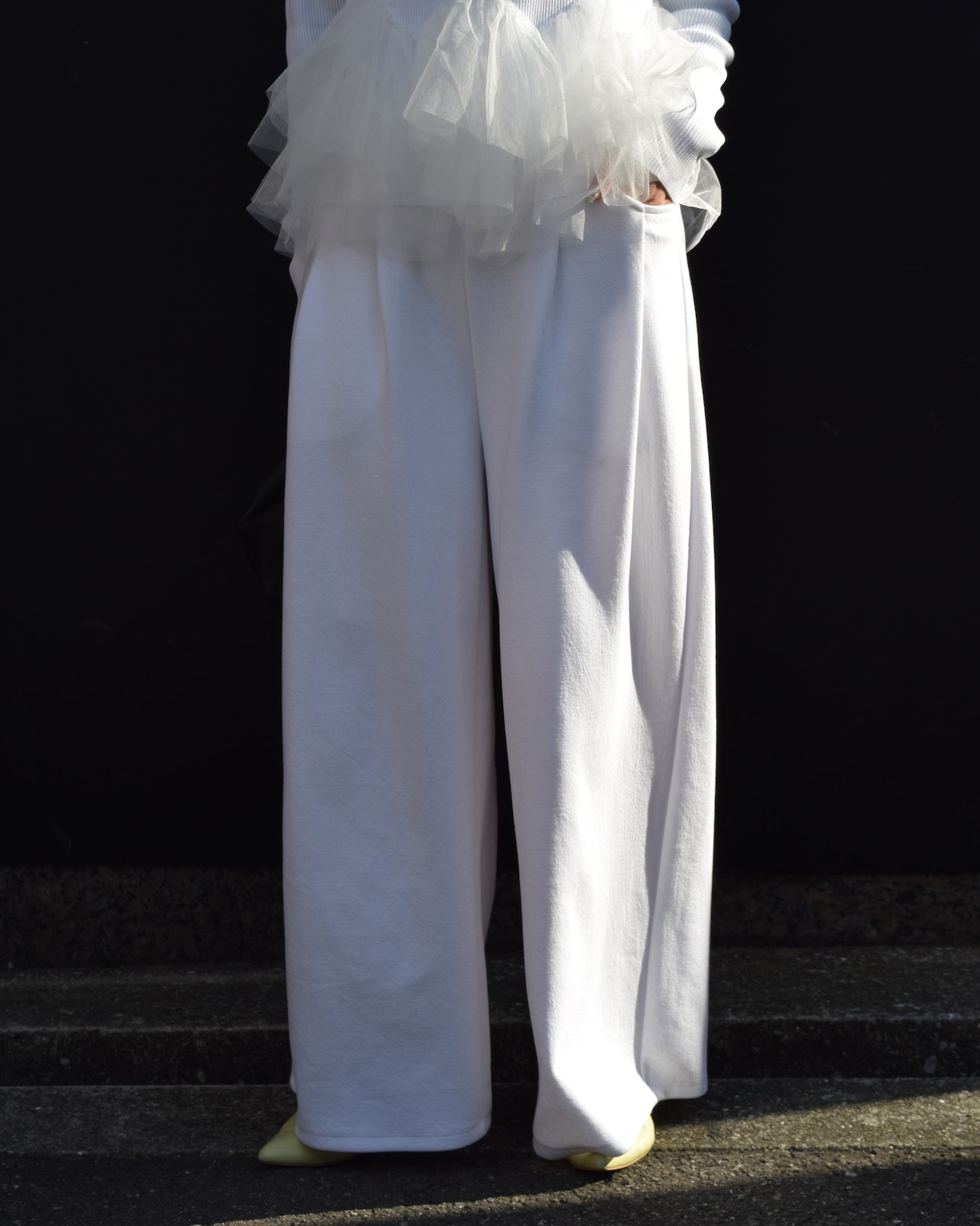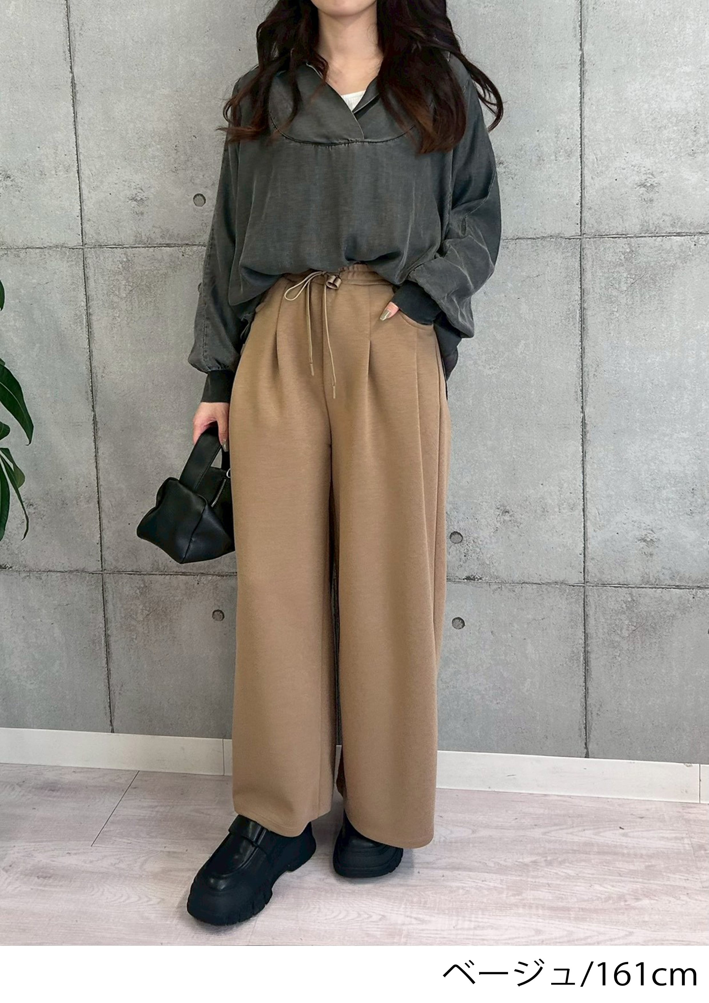 ウエスト部分はゴムになっているので、体型問わずリラックス感のある履き心地に。