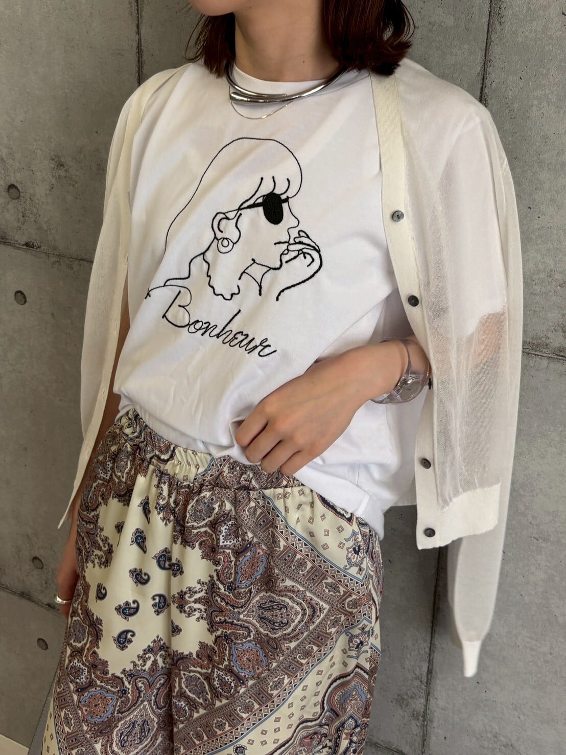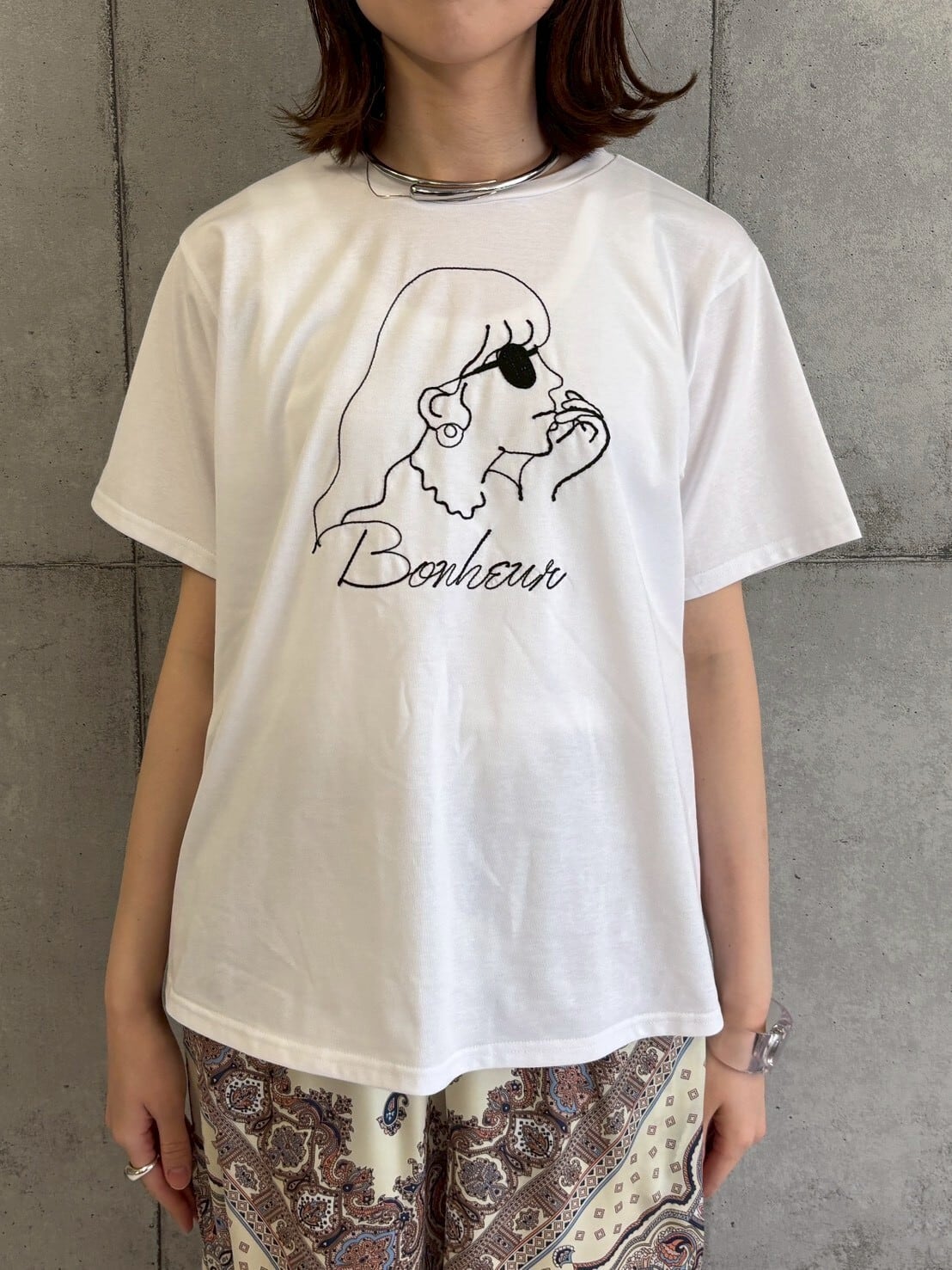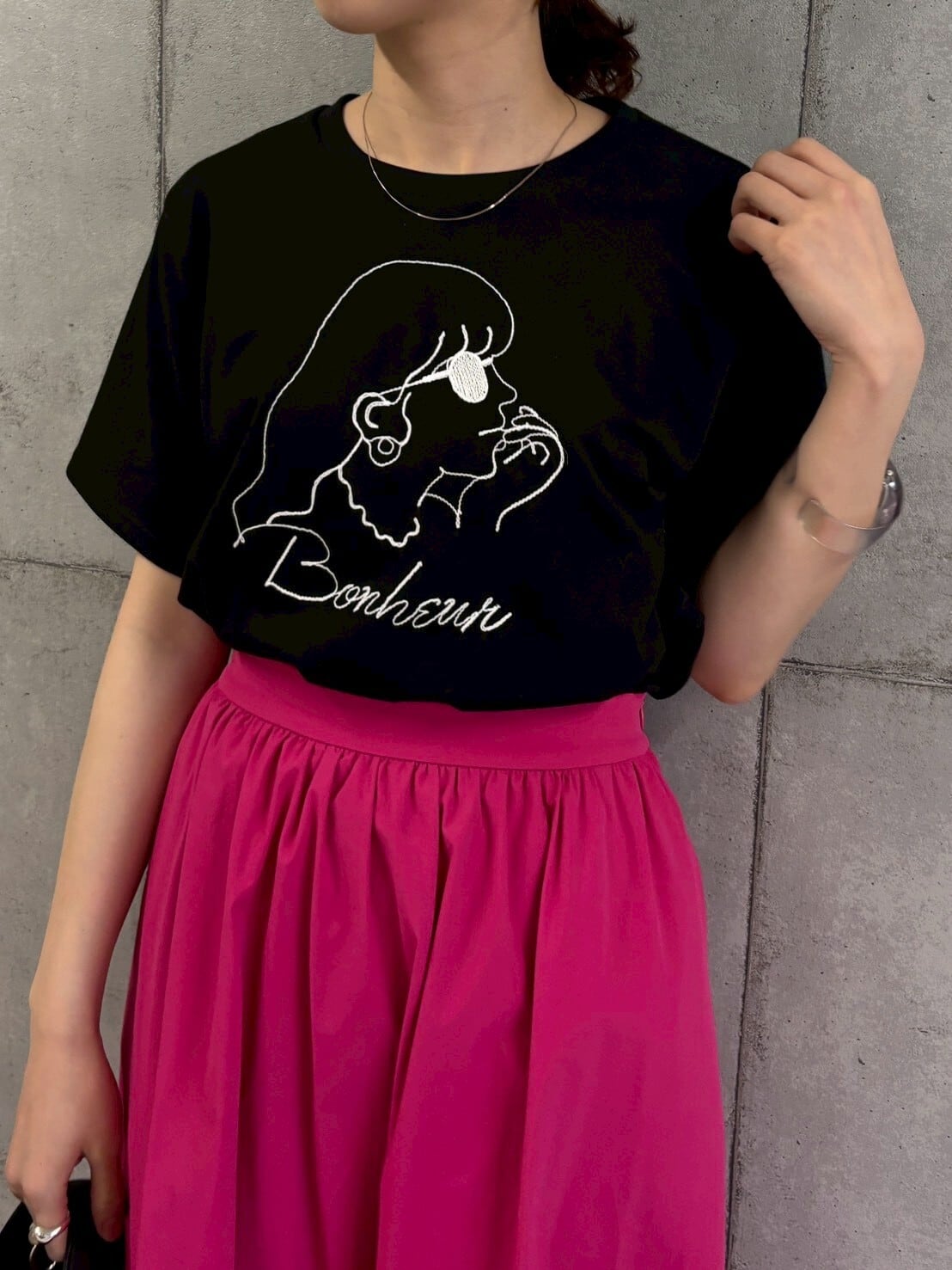 さらりとした着心地でデイリー使いに取り入れやすい素材を使用した1枚。フロントには女の子モチーフとロゴをコード刺繍で再現。立体感のある刺繍がシンプルなTシャツに上品なアクセントを添えます。甘くなりすぎない線画デザインが大人カジュアルにピッタリ!