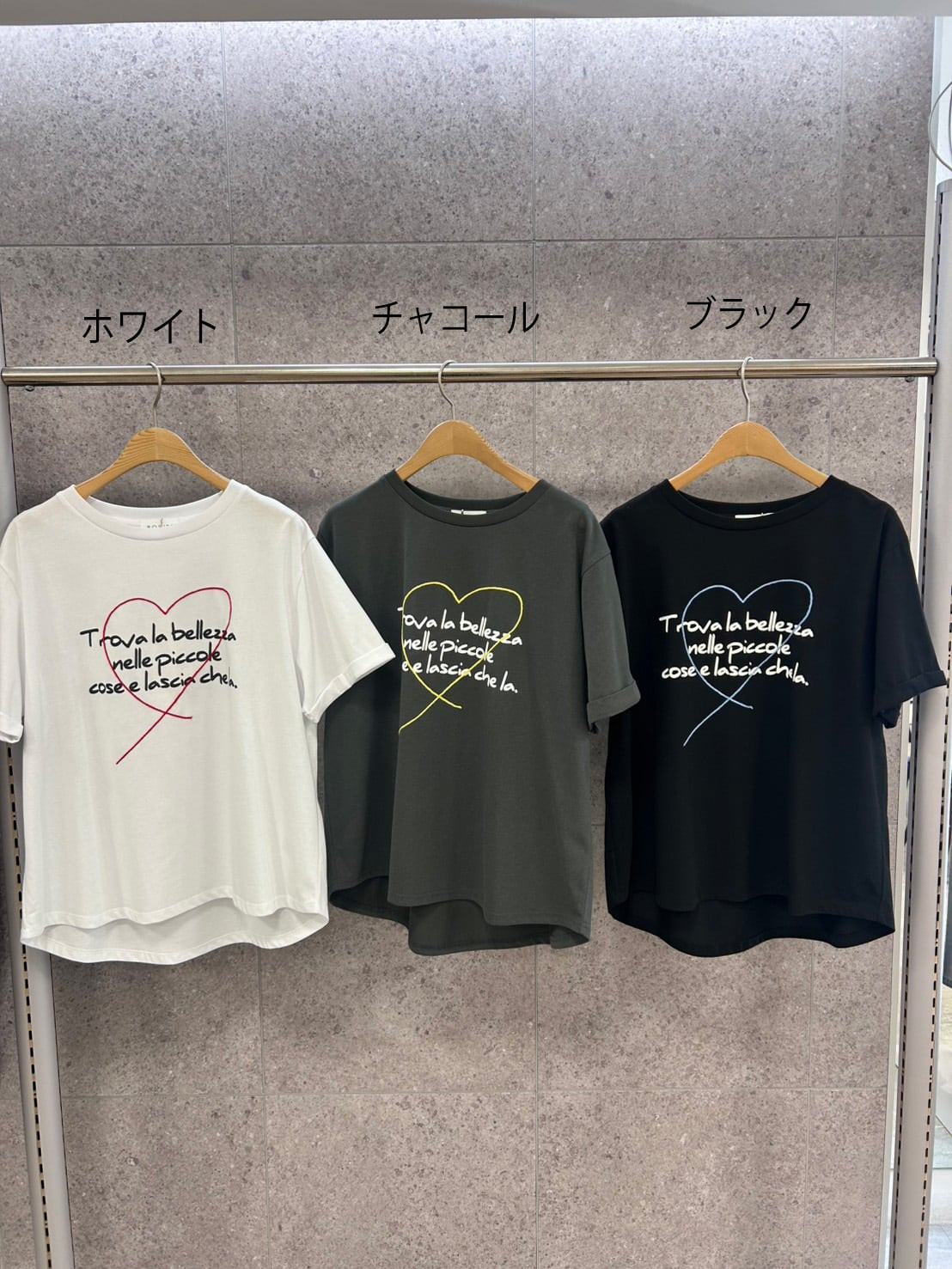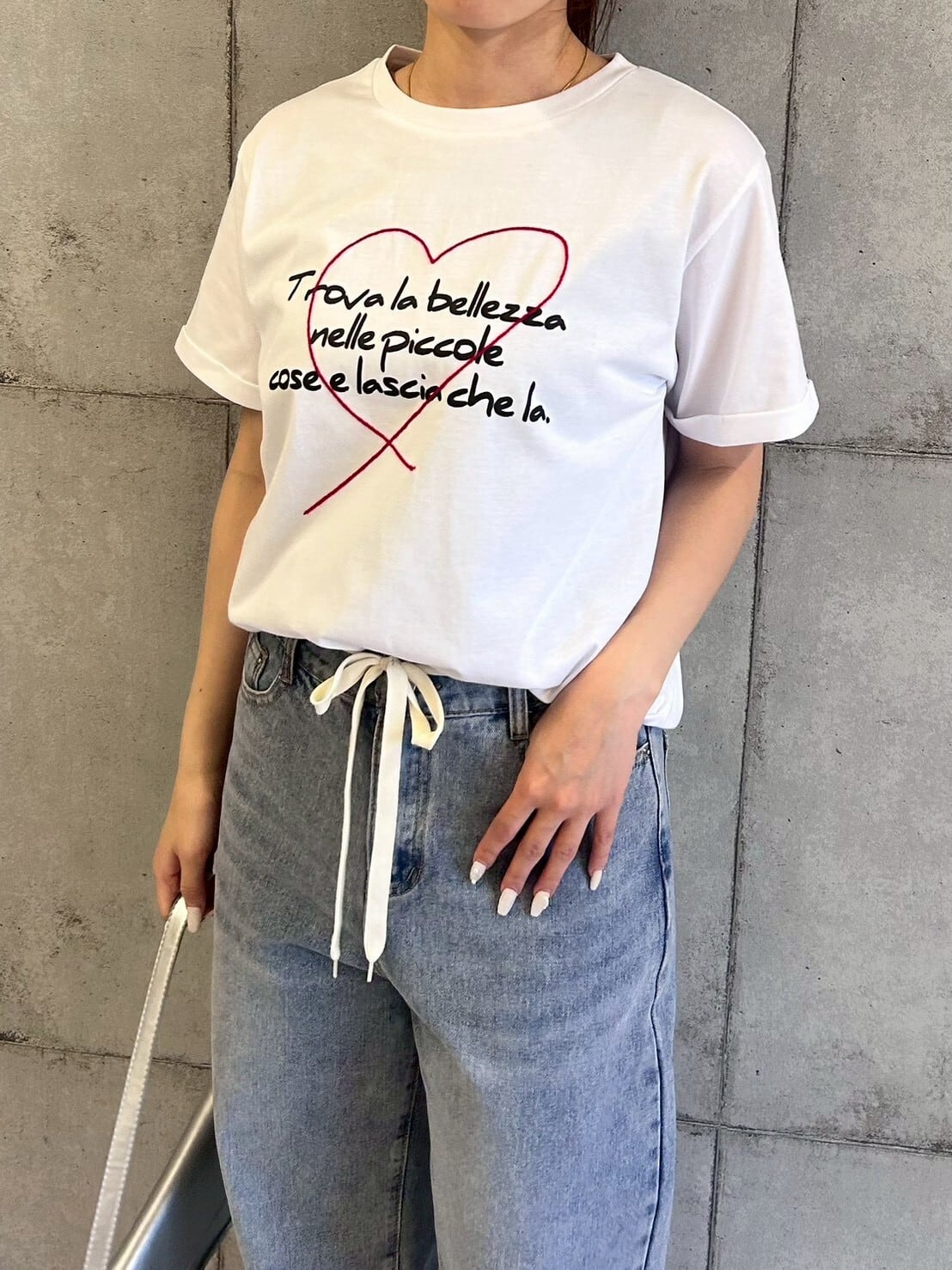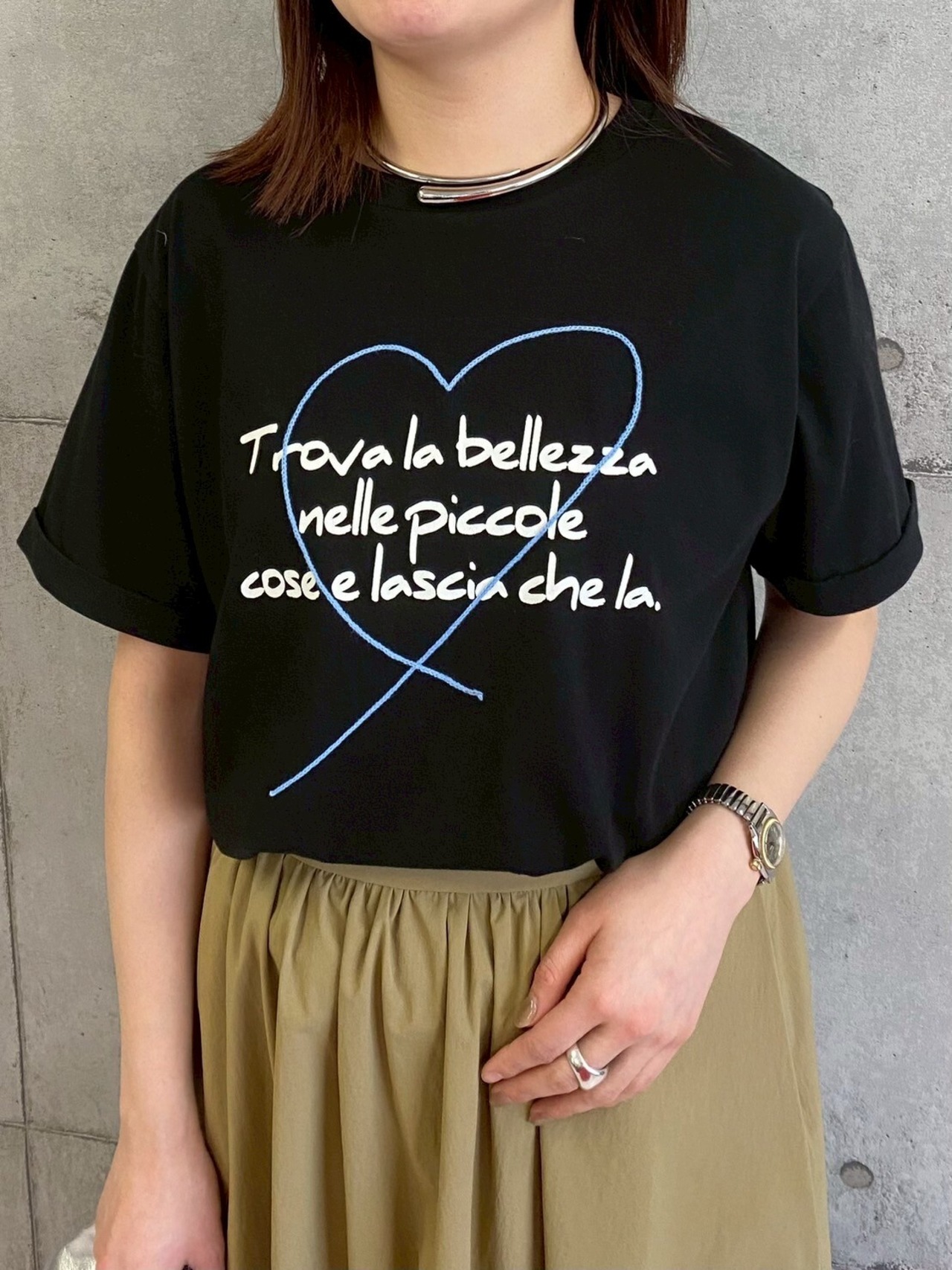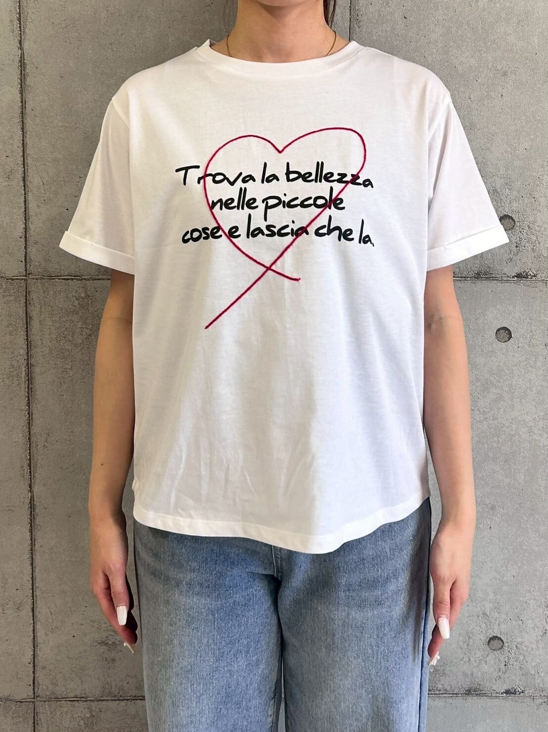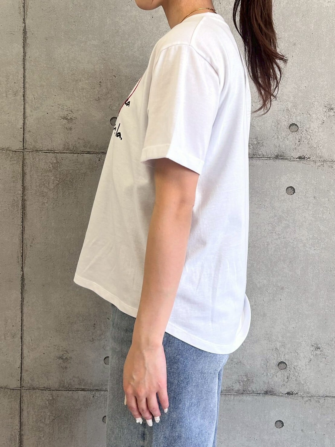 刺繍とプリントを施したベーシックTシャツ。ラフなロゴの抜け感と、繊細な刺繍の立体感が絶妙なバランスで、大人カジュアルに仕上げています。