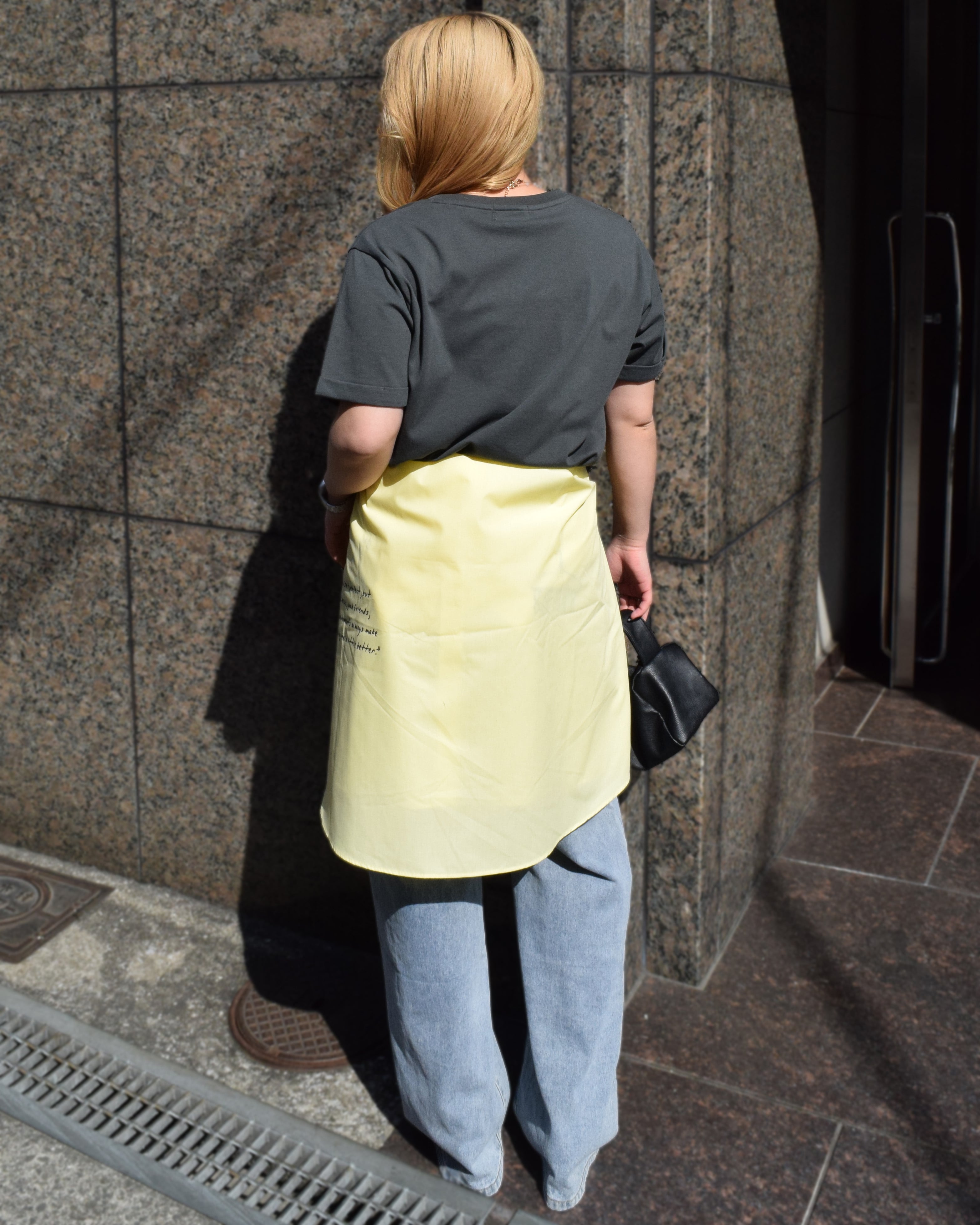 前後差のあるシルエットでパンツにもスカートにも合わせやすい形になっています。
