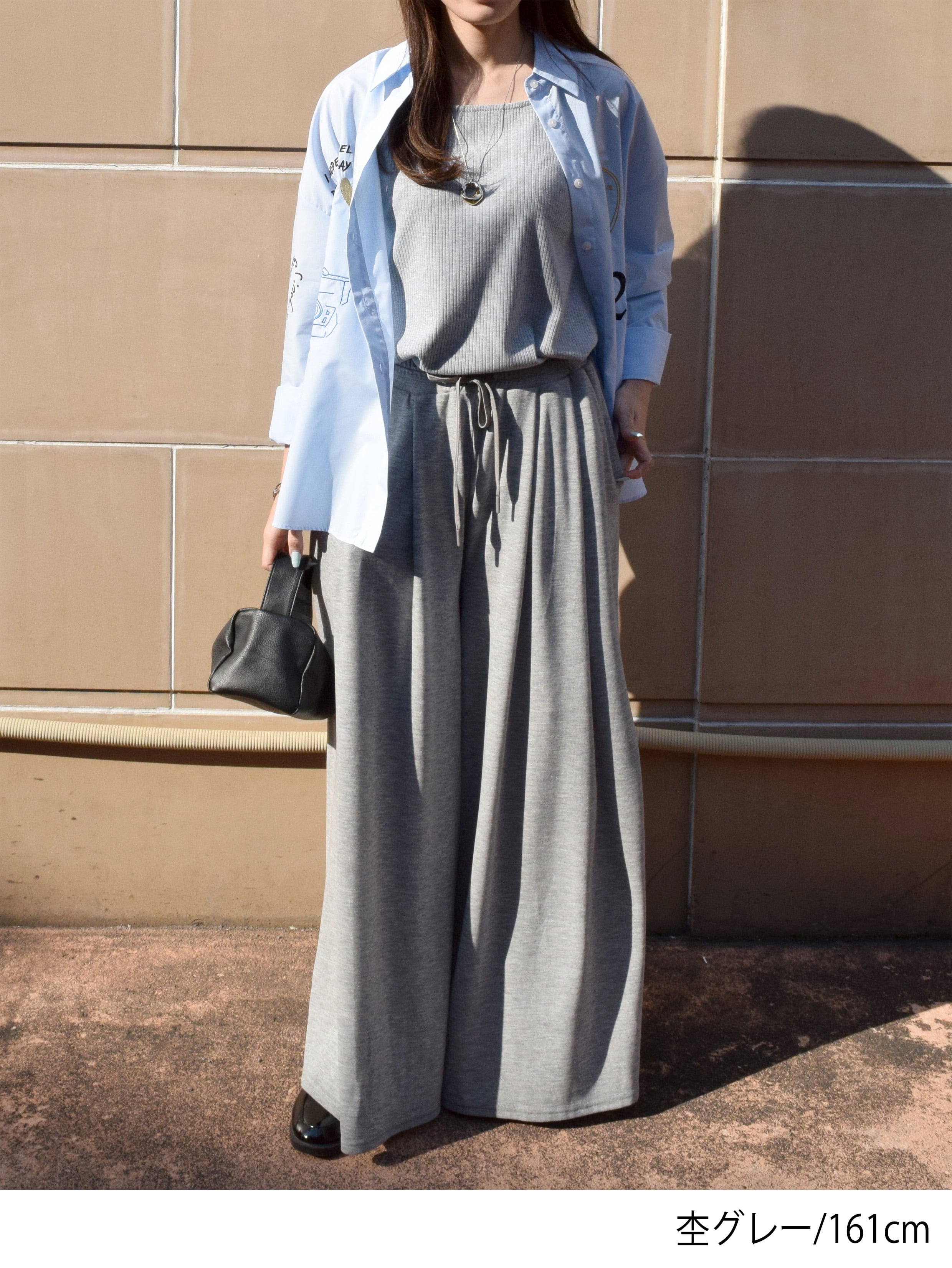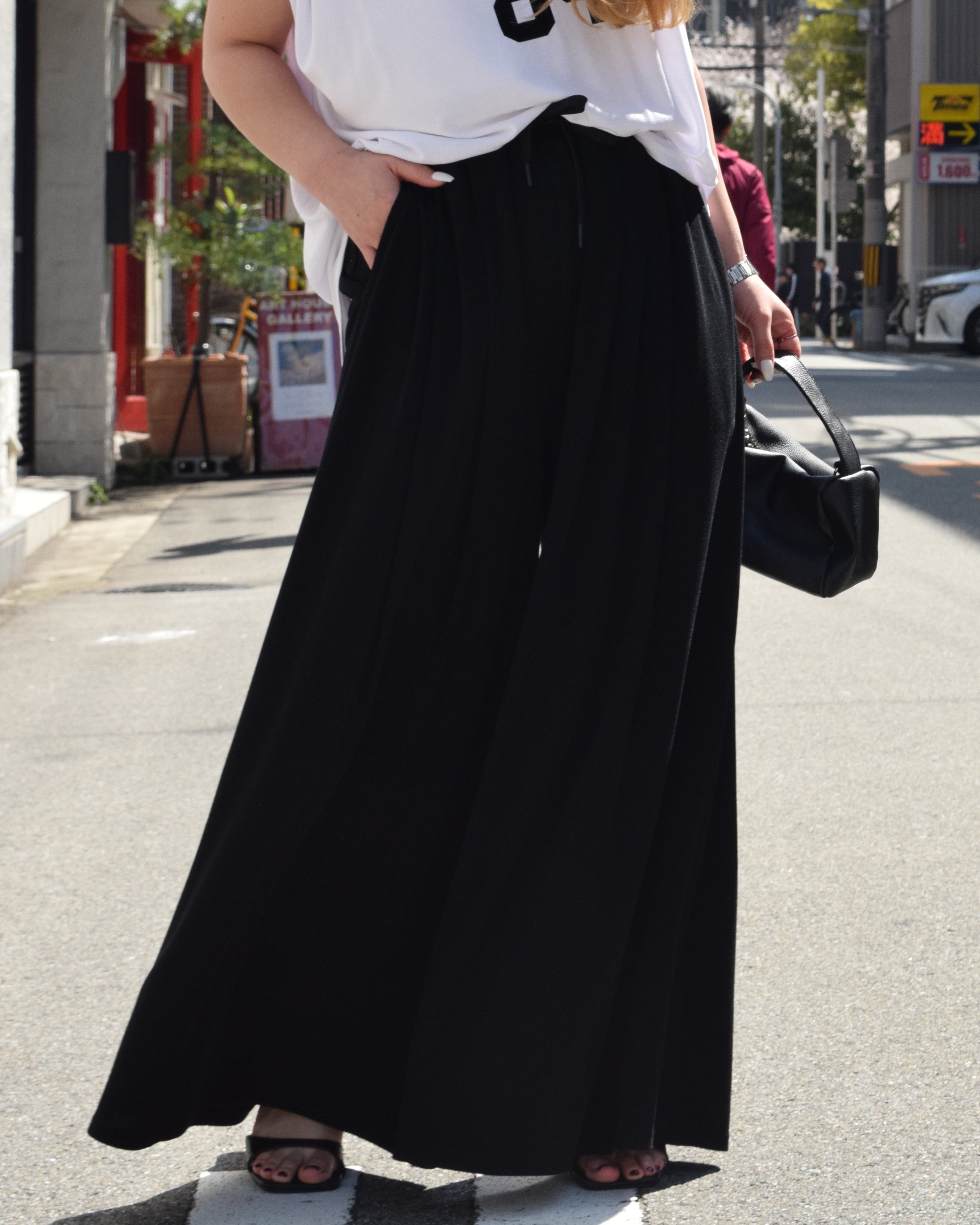裾巾を広めに取ったワイドシルエットで、歩くたびに揺れるスカートライクなシルエットが魅力の一本!!