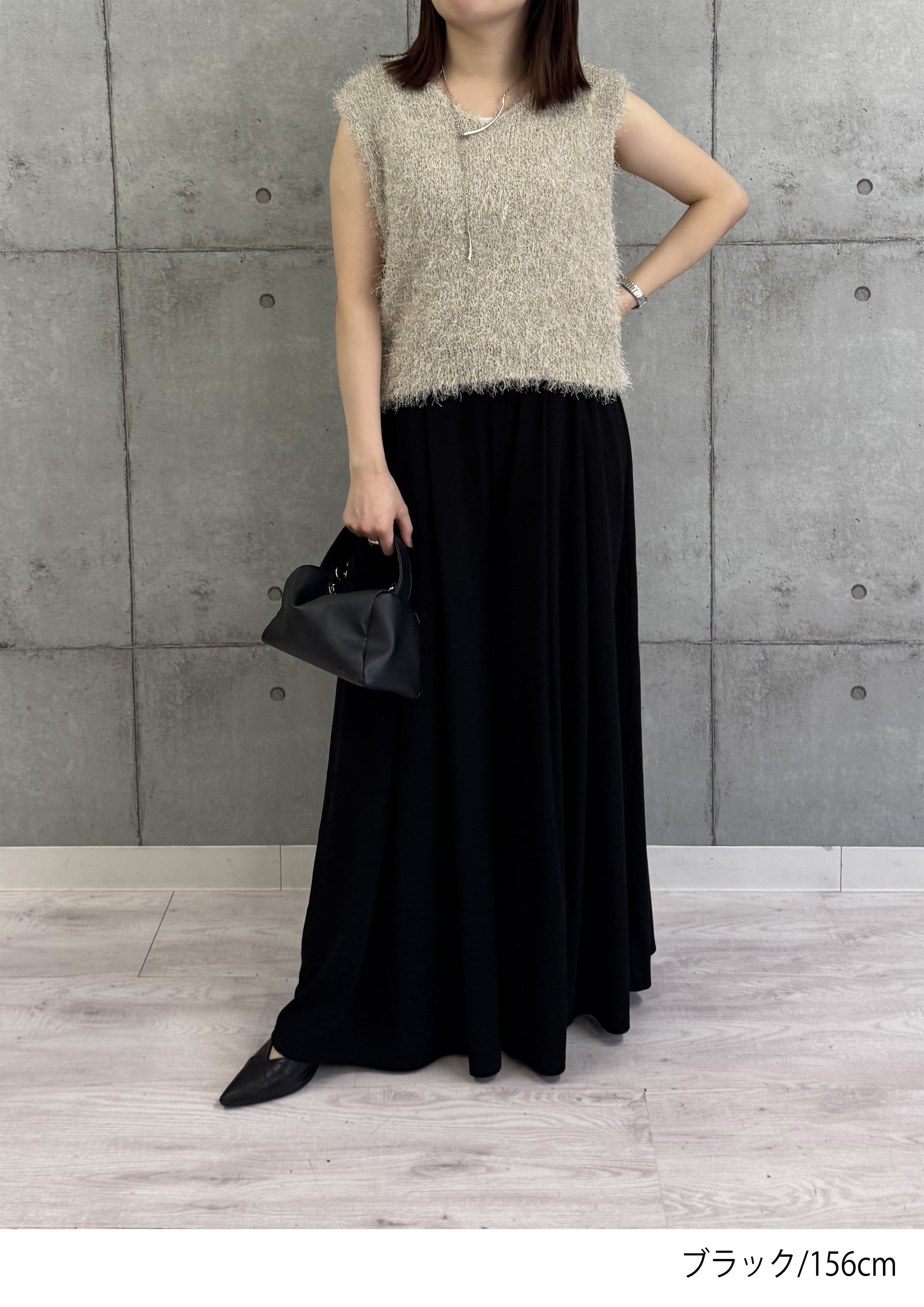 コンパクトなサマーニットやショート丈トップスを合わせることで、タックから広がるシルエットが引き立ちバランスの良い着こなしに◎