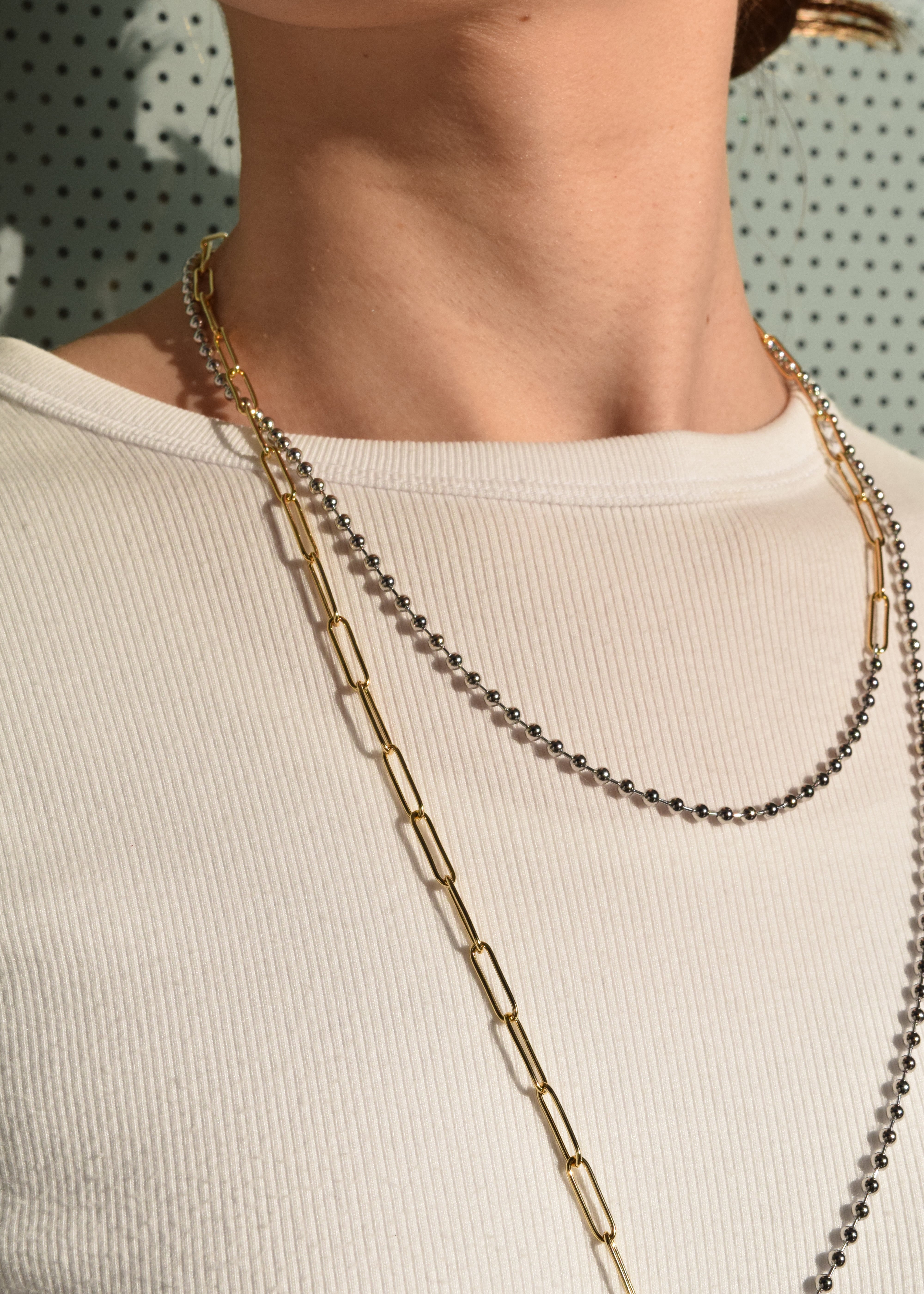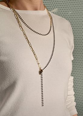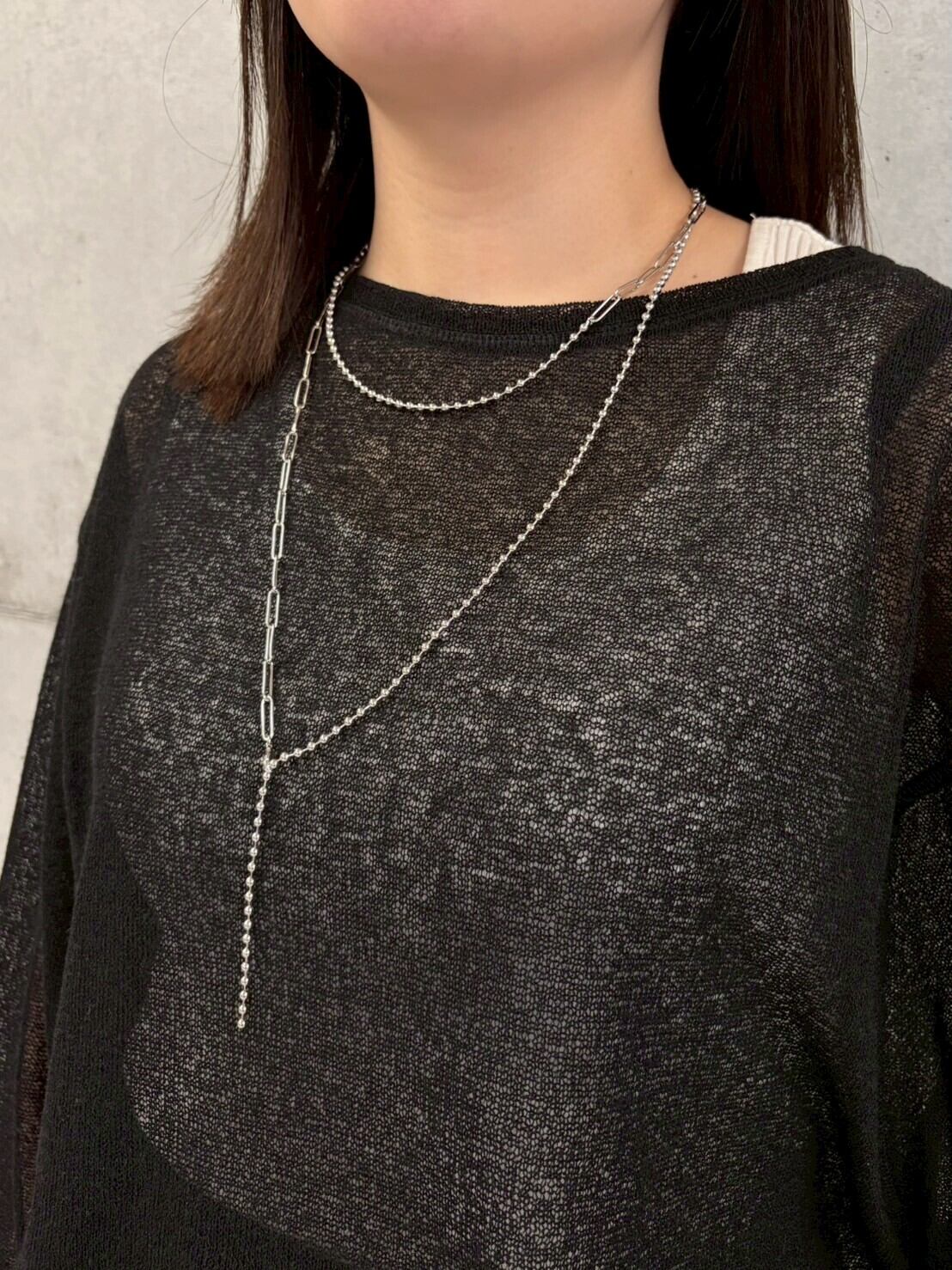 異なるチェーンを組み合わせた、3wayロングネックレス。