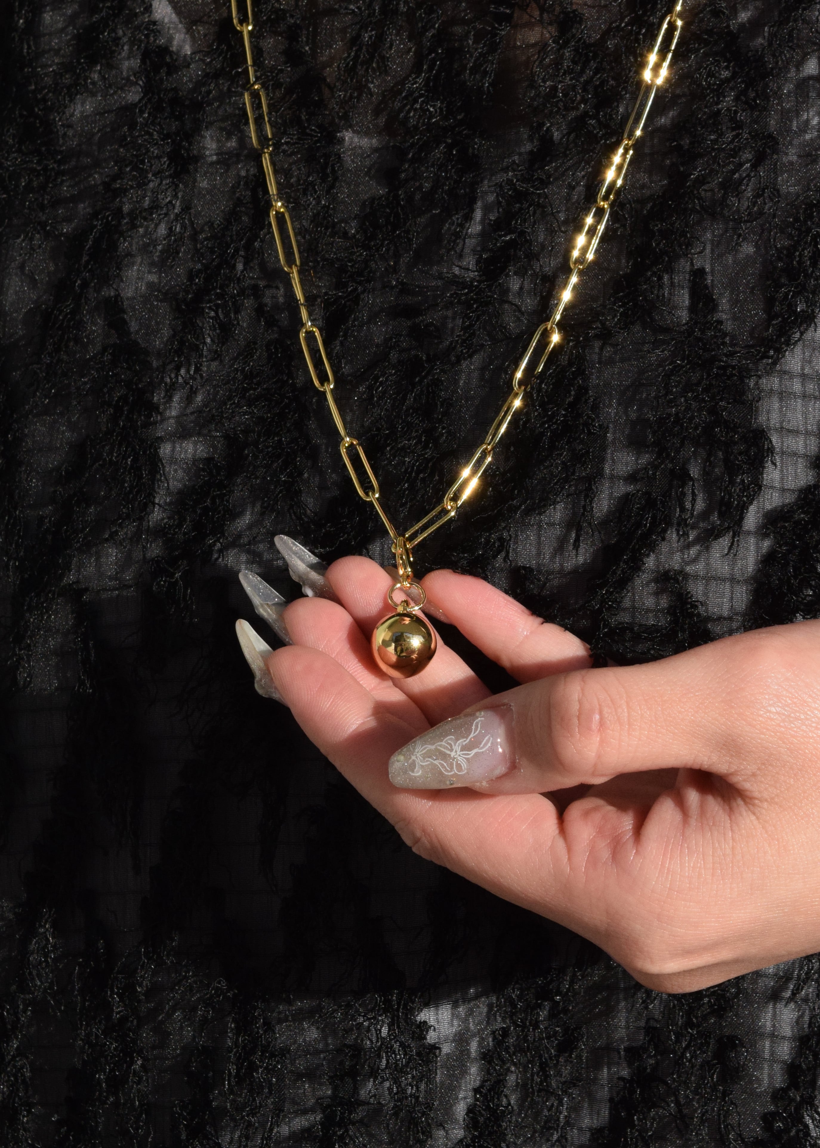 ミニマルなチェーンにあしらったボールTOPは、自由に位置を動かせるデザイン。