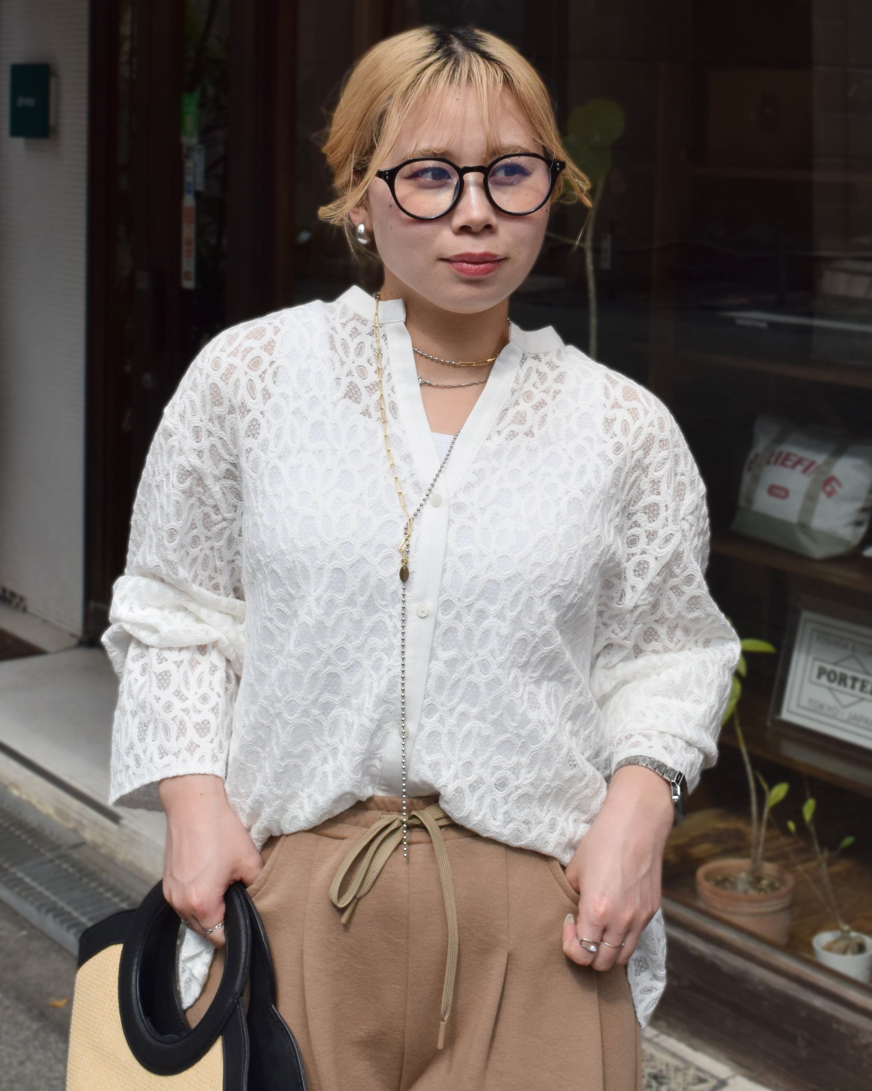 インナーにキャミやタンクを仕込んで、レースの透け感を活かしたレイヤードスタイルもおすすめです。