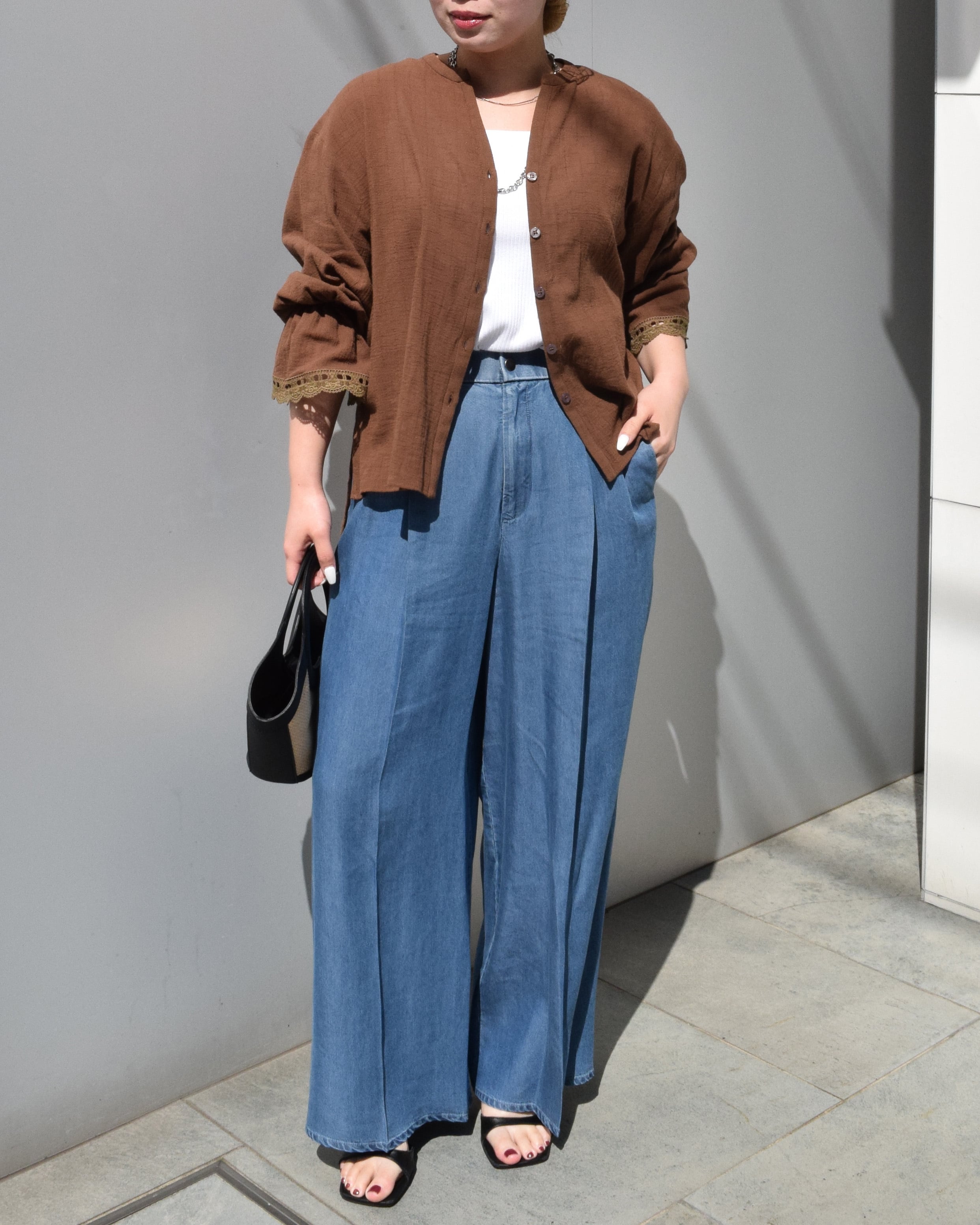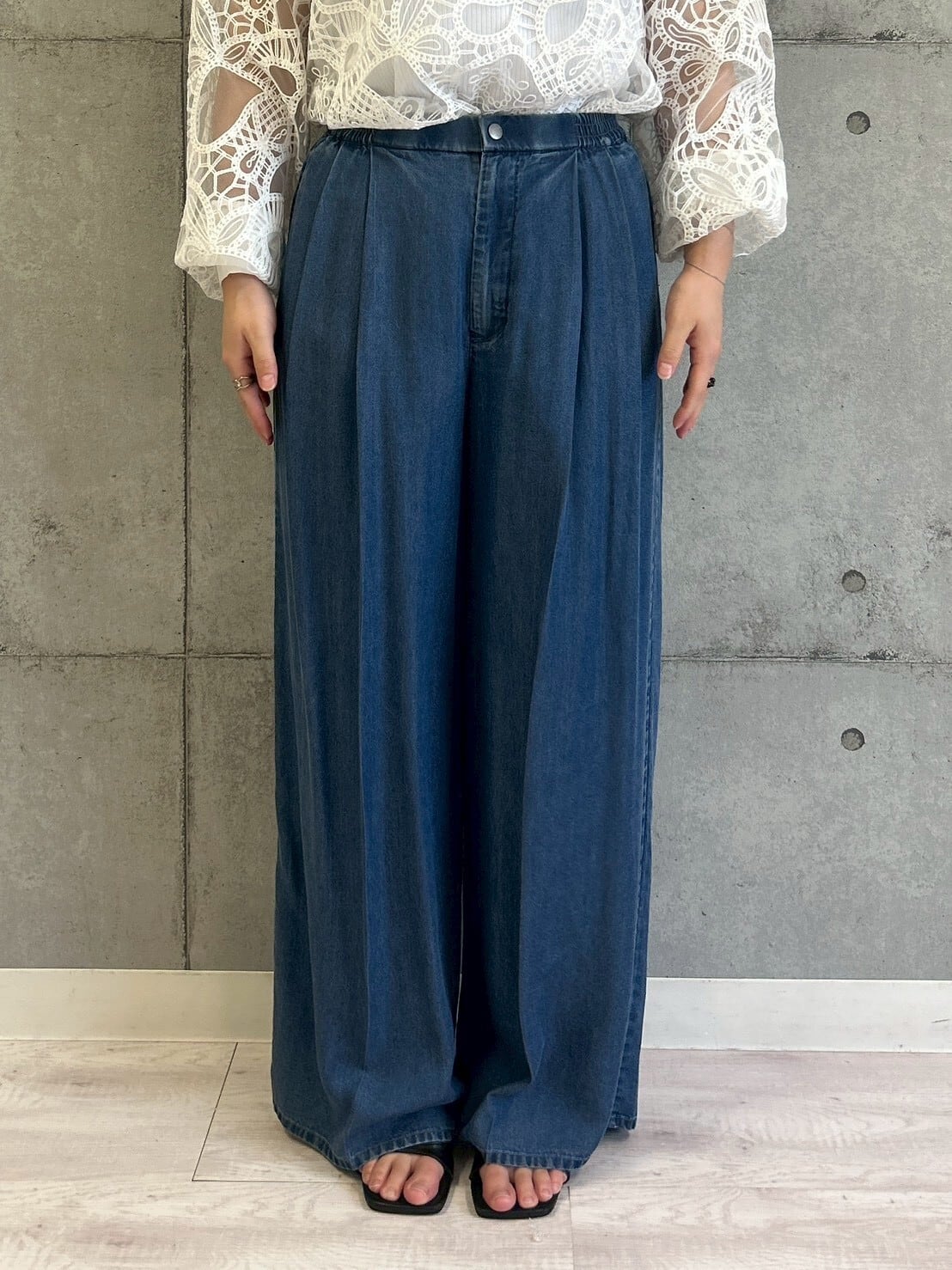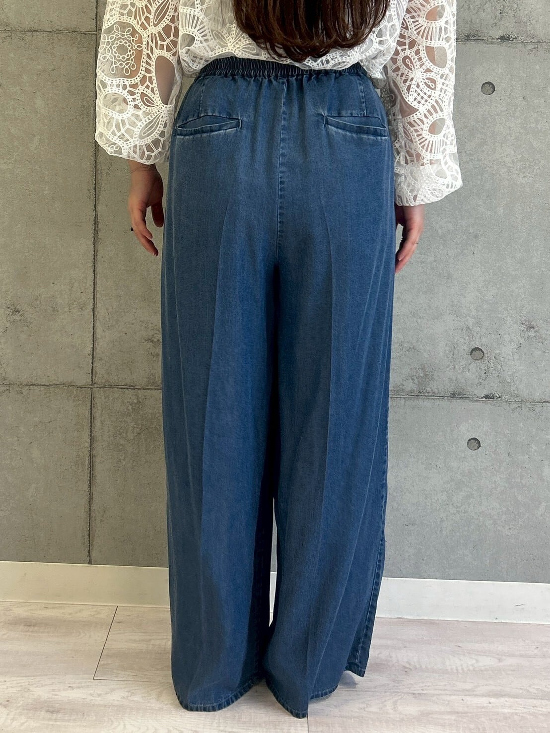 落ち感のあるテンセル混デニム素材を使用し、軽やかでなめらかな肌触りが魅力の一本。
